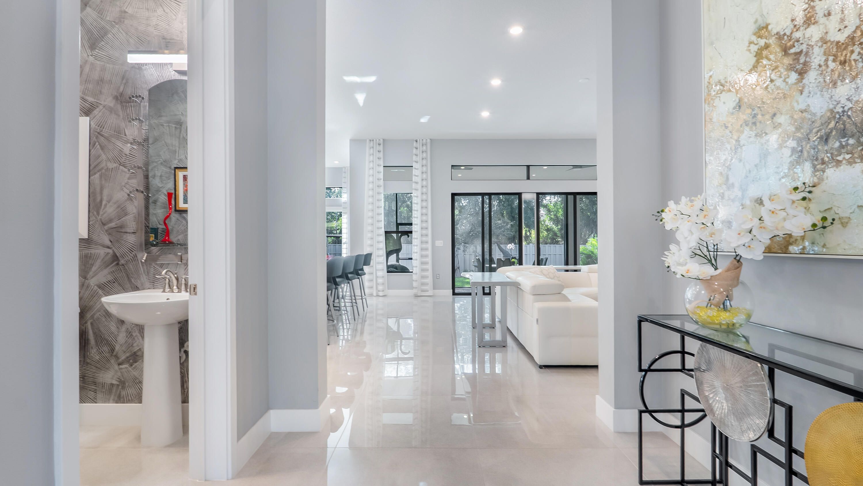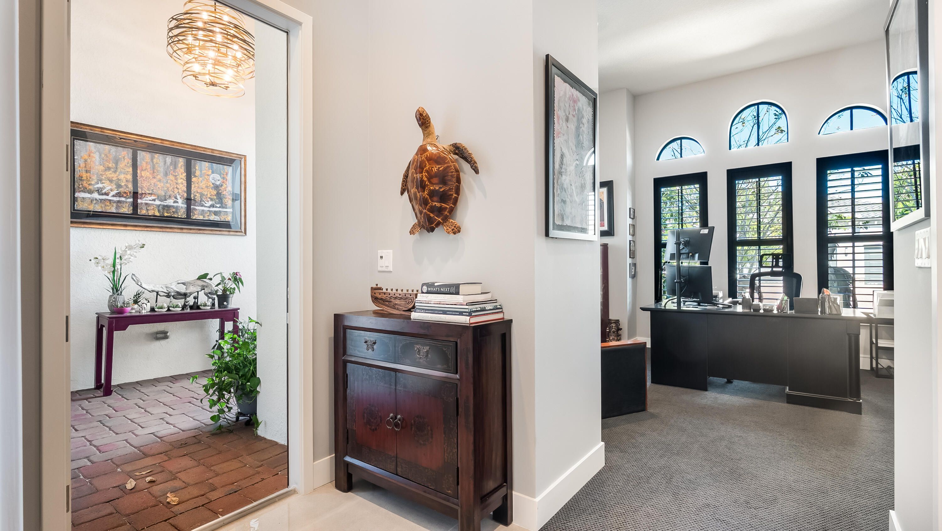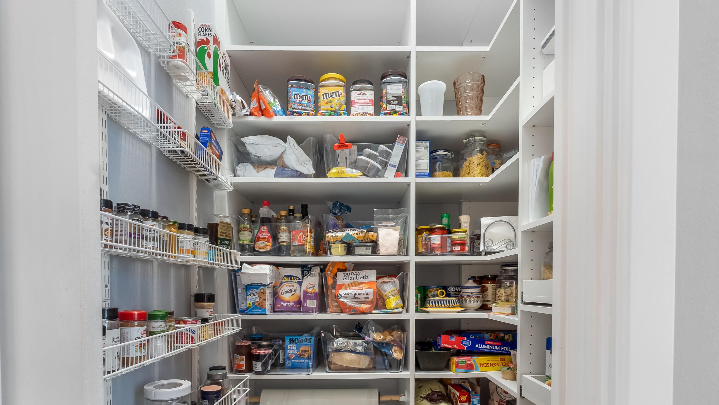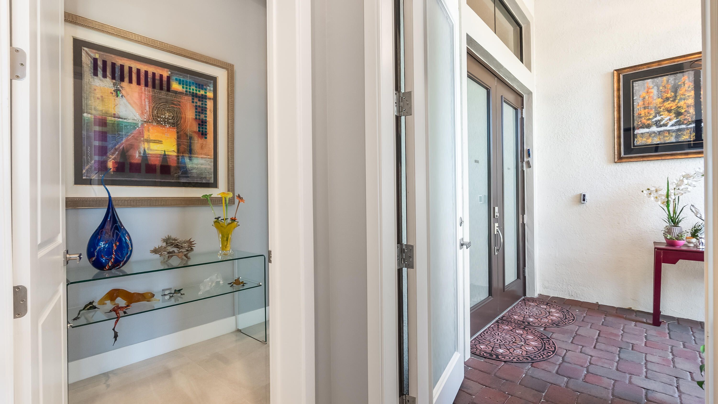 - Entrance Foyer, Pantry, Walk-In Closet(s), Split Bedrooms, Closet Cabinetry, Impact Glass, Eat-in Kitchen, Dual Sinks, Main Level Primary, Separate Shower