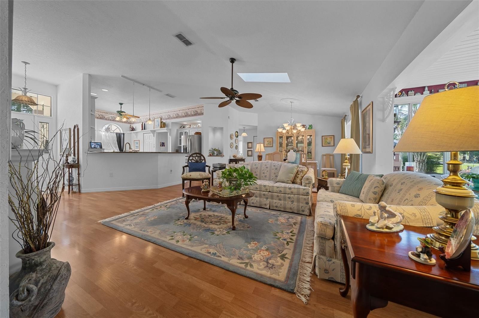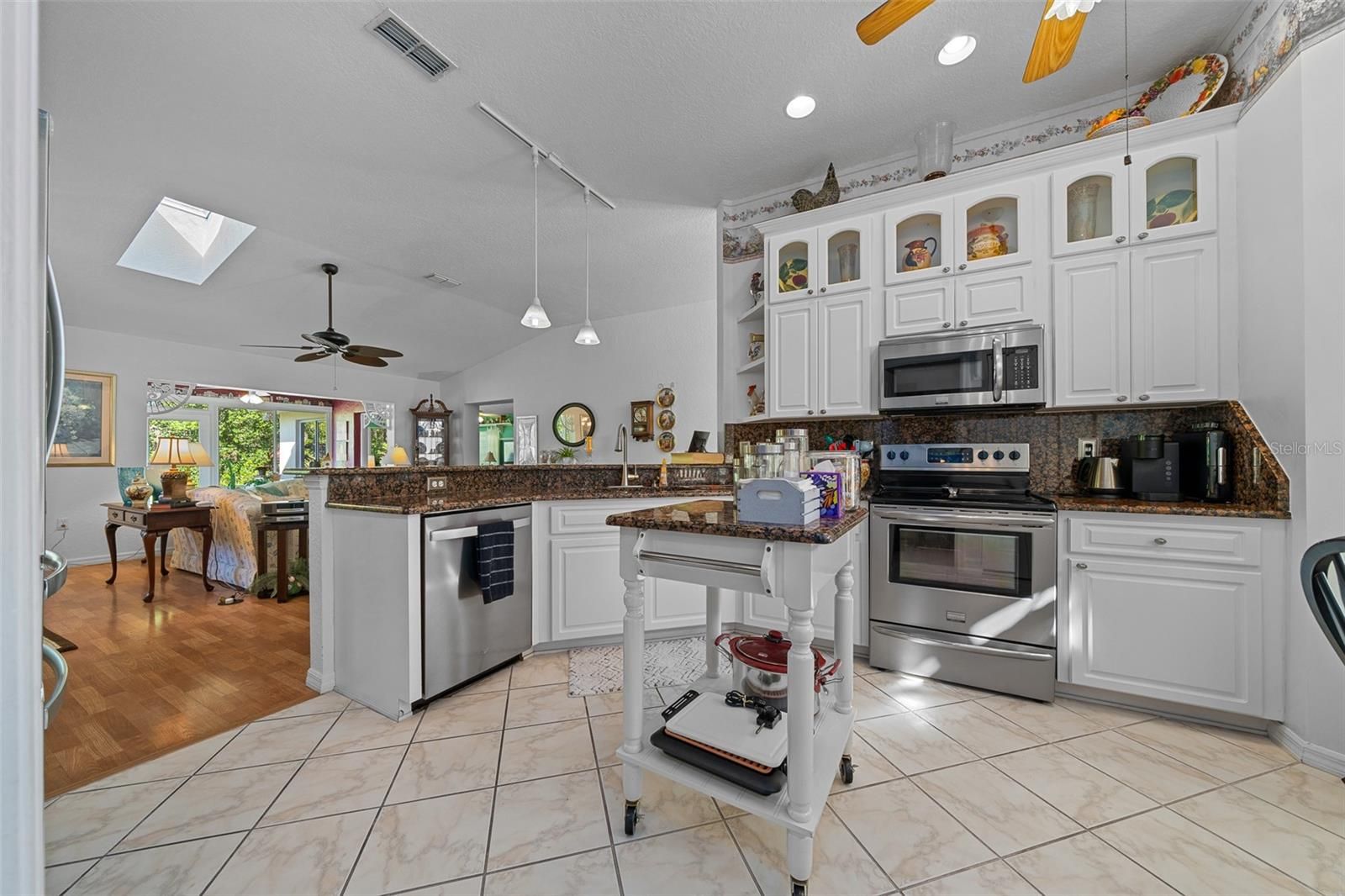 - Ceiling Fan(s), Eat-in Kitchen, High Ceilings, Split Bedrooms
