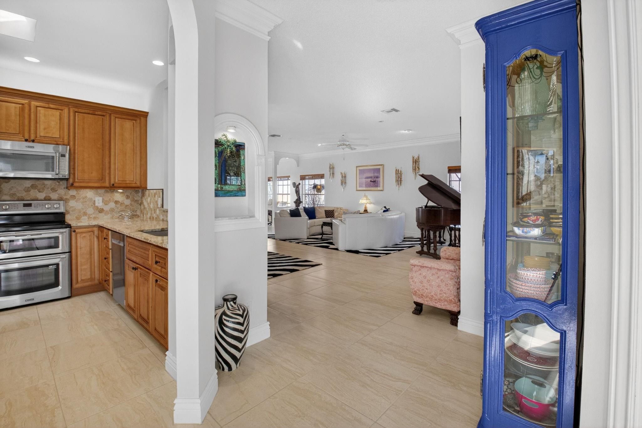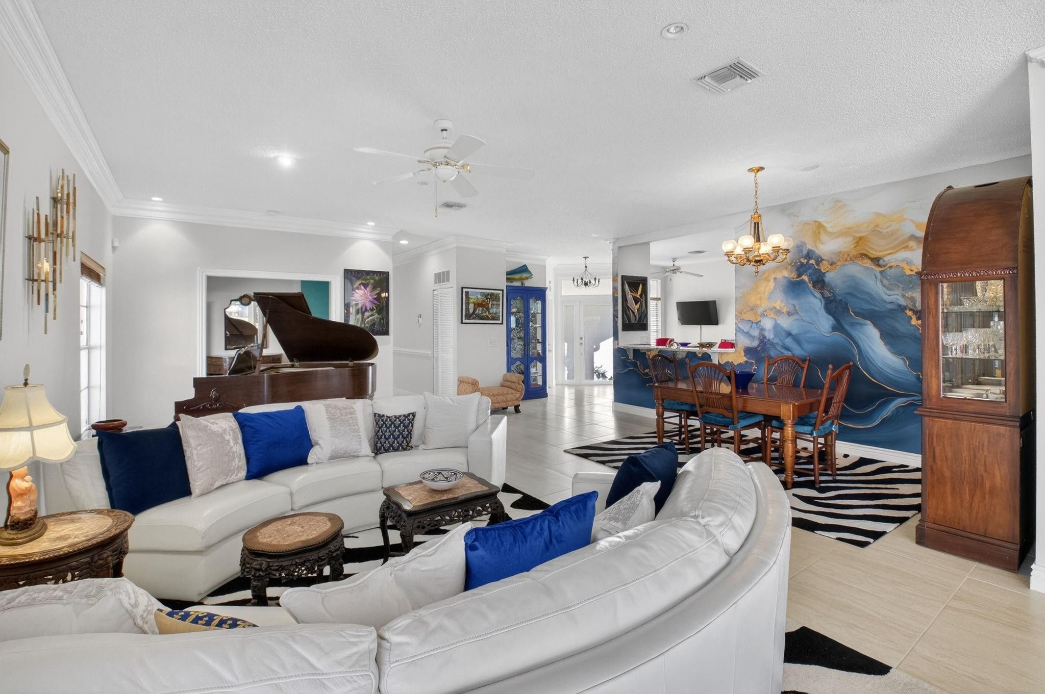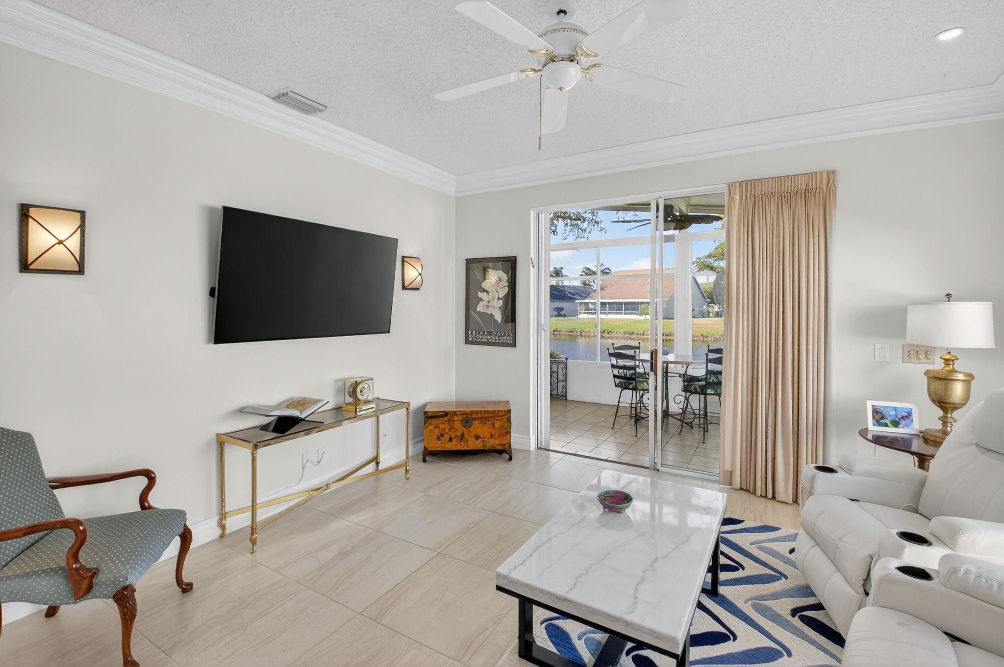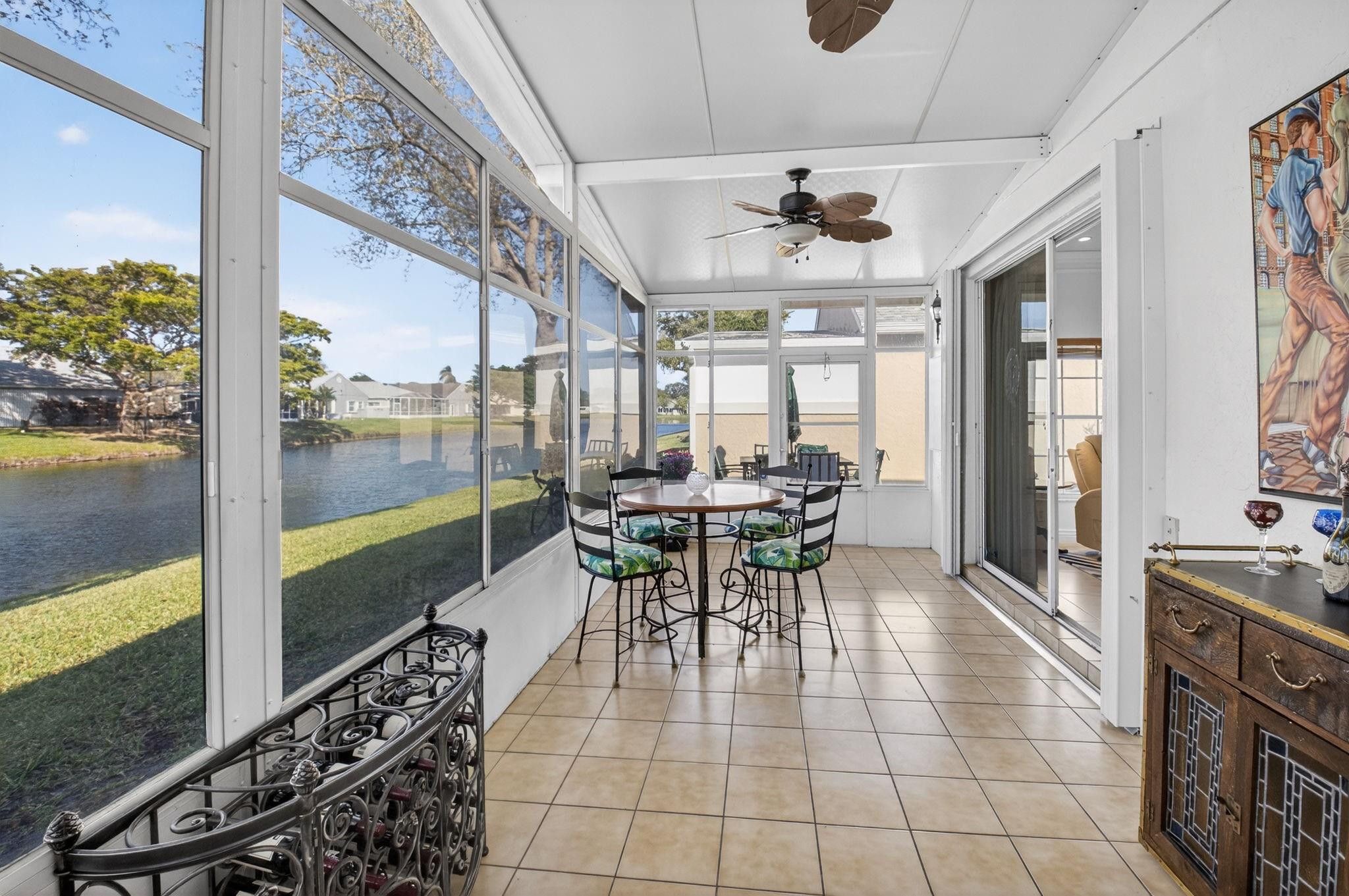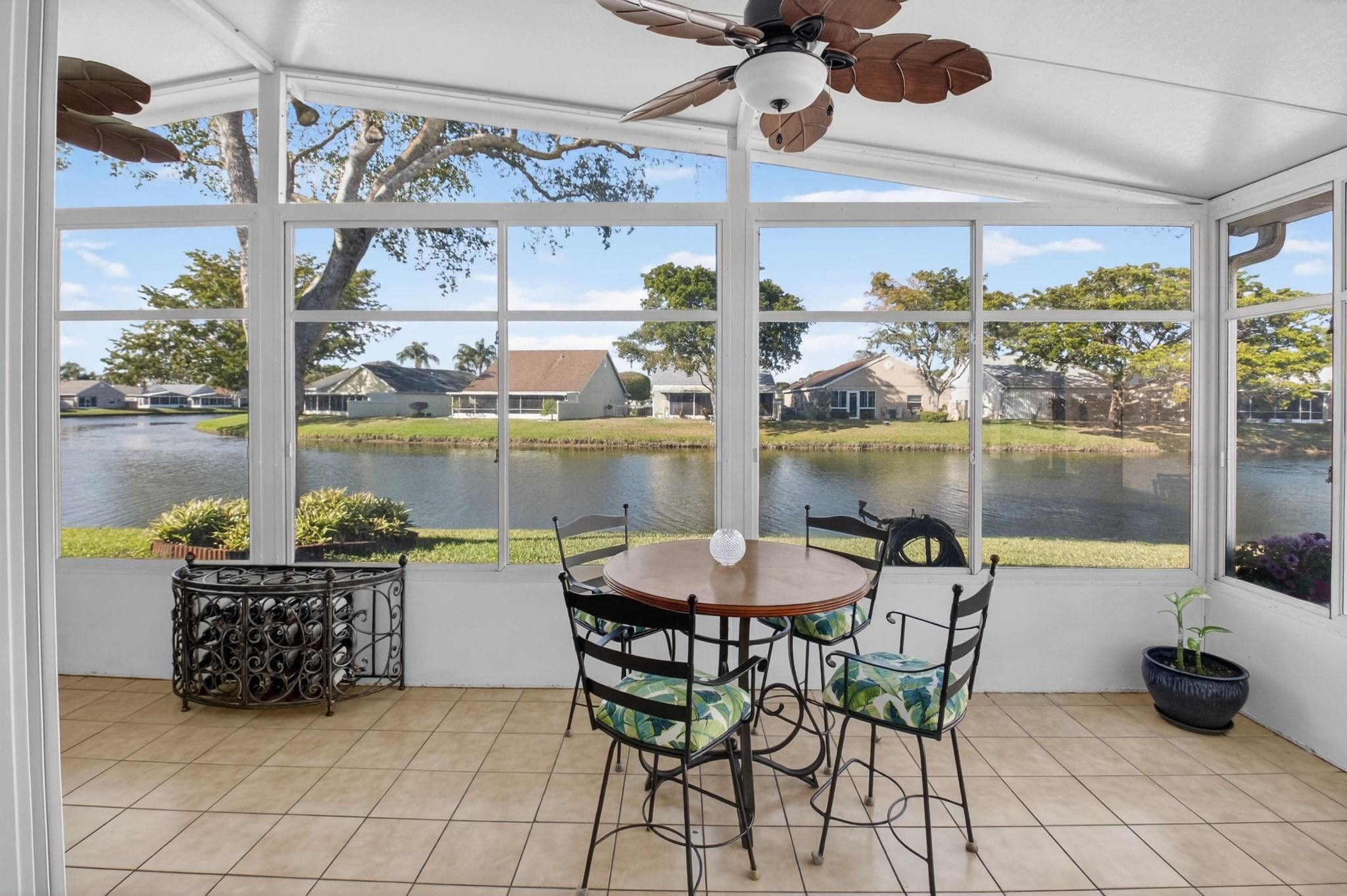 Experience panoramic lake views from an expansive 30' Florida room with vaulted ceilings. This turnkey home features a perfect split floorplan, 9'4" ceilings, custom moldings, and new contemporary baths. The gourmet kitchen shines with granite tops, breakfast bar, and skylight.Major 2025 upgrades include a new roof, reinsulated attic, fresh interior paint, and premium laminate flooring. Step into an "enchanted garden" with brick walkways, flowered arbors, and a courtyard sanctuary for hummingbirds and cardinals. Enjoy resort-style amenities: 2 pools, tennis, and pickleball with low HOA fees. From the new hurricane-impact front door to the custom garage workbench and cabinets, this home is designed to entertain and enjoy. Sunrise and sunset views included! What We Love About Our HomeBeyond the architecture and the expansive views, this home has provided us with a front-row seat to the very best of Florida’s nature. It is more than a residence; it is a living sanctuary.Our Private Arboretum:The grounds are a gardener's delight, featuring five mature, cherry-blossom-style trees and a gorgeous, deep-raspberry Crape Myrtle that provides a stunning explosion of color when in bloom.A Sanctuary for Nature Lovers:Living here feels like residing in a private nature preserve. We are just minutes from the world-class Green Cay Nature Center and Wetlands, but you don’t even have to leave the patio to experience the wildlife. We have spent years watching mother ducks and geese lead their babies across the lawn and along the lake's edge.We’ve even developed "friendships" with our regular visitors, who have become part of the family:"Whitey": Our local good-luck charm—a beautiful white dove who flew in and chose to stay with us for six months, a true testament to the peace found here."Hummer": Our loyal, returning yearly hummingbird."Woody": A magnificent red-headed woodpecker."DH": Our spirited resident Morning Glory bird who keeps everyone in line!The Best of Both Worlds:Because of our unique position on the lake, we are treated to both breathtaking sunrises and vibrant sunsets. Our favorite daily ritual is a quiet morning coffee in the sunroom as the light hits the water, followed by a relaxed "Happy Hour" in the courtyard as the sun dips below the horizon. The courtyard and sunroom have truly been our private retreats, offering a sense of serenity that is rare to find.