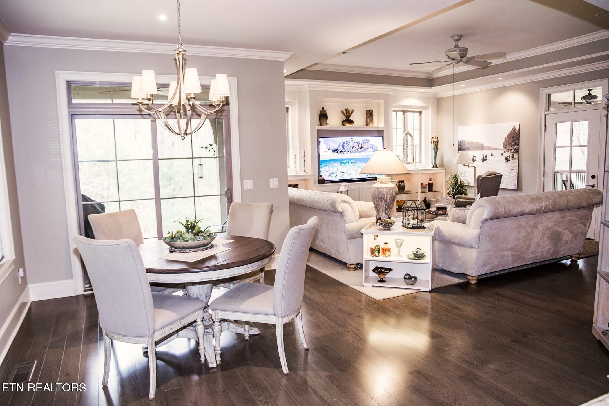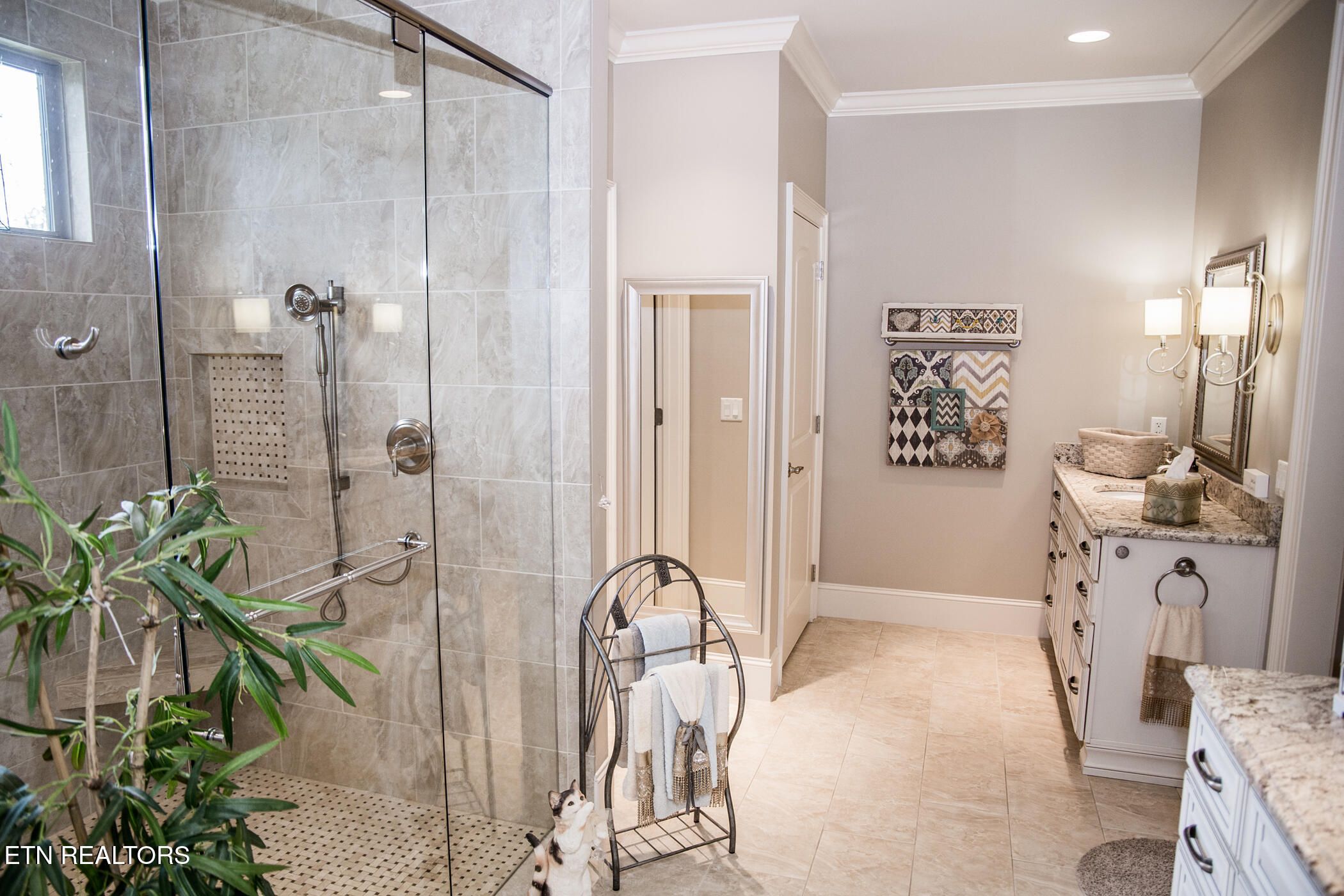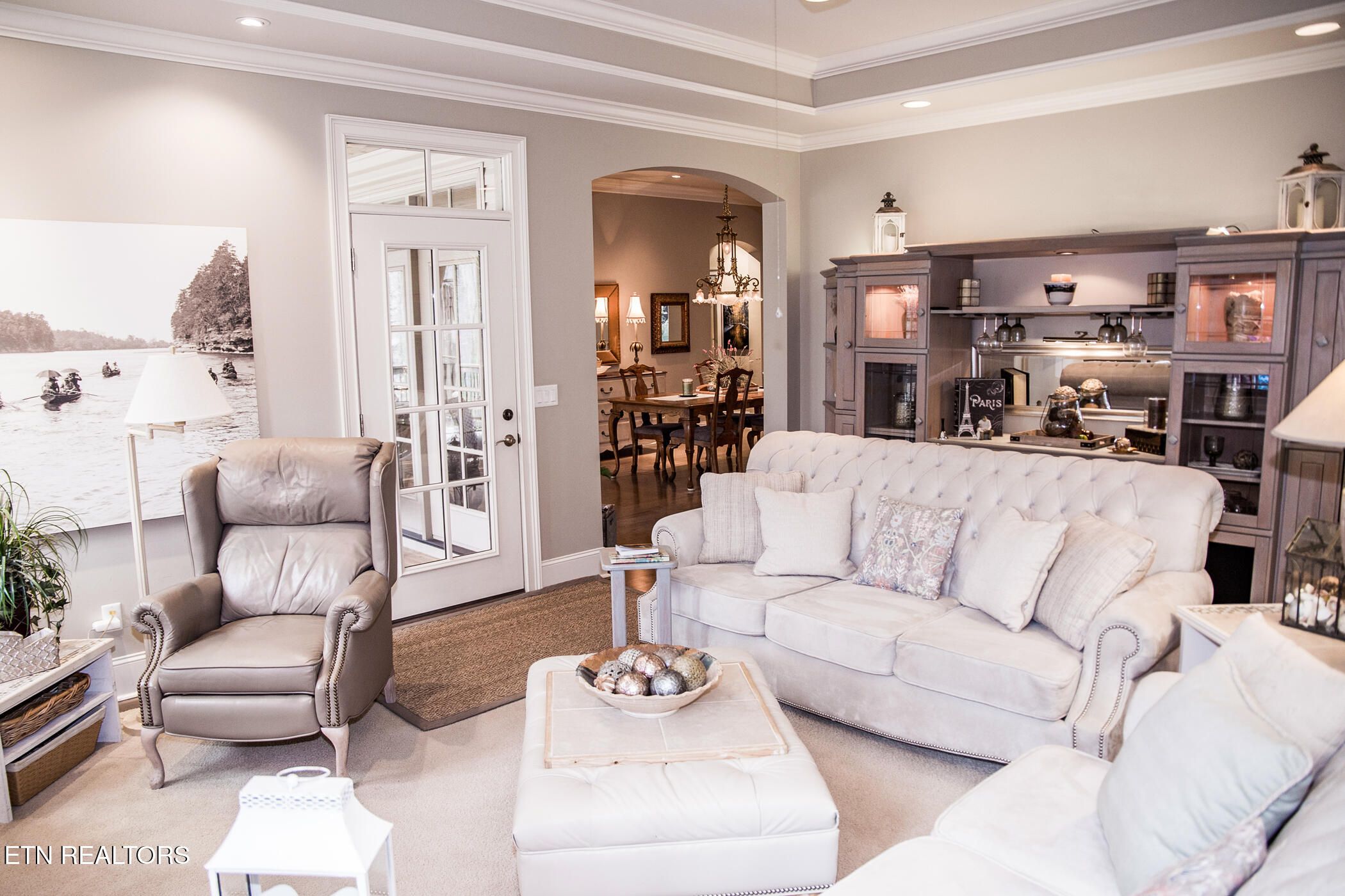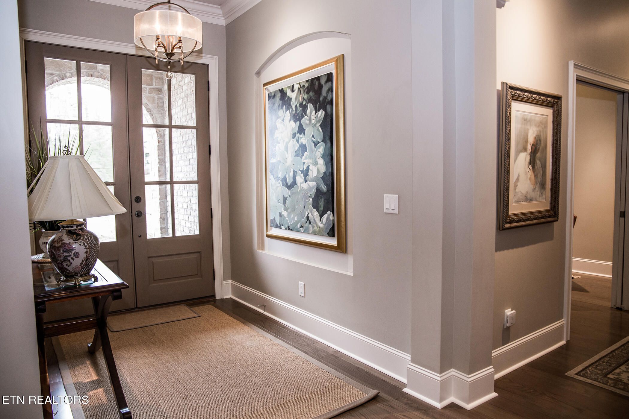 LIKE-NEW BELGIAN STYLE HOME on PRIVATE WOODED LOT NEAR GOLF COURSE - MOVE-IN READY in FAIRFIELD GLADE TN. Belgian style, architecturally designed and built by Fairfield Glade's Premier Builder -Zurich Homes-. Located on a very quiet cul-de-sac street on over 1/2 an acre of professionally landscaped property with only trees & nature visible in your private backyard. This very desirable neighborhood offers easy access to 5 challenging Golf courses - 11 lakes for boating & fishing - miles of walking paths & hiking trails - Tennis & Pickelball courts - indoor & outdoor pools - all while being tucked away in a very peaceful setting just outside of Crossville TN. Built in 2015, this beautifully maintained 2,736 Sq Ft. Gallery home offers the perfect blend of modern finishes, comfort, and privacy. You enter through a beautiful foyer with a space designed for custom art work. The foyer leads into the formal dining room with a unique antique sand cast bronze chandelier (which is optional), surrounded by custom down-lighting on dimmers. The dining room allows you to view the peaceful wooded area behind your home. The adjoining open great room has beautiful built-ins, allowing you to position your main TV to allow viewing from the Great room, Breakfast nook and Chef's kitchen. from the great room you can access the large covered back deck with enough room to entertain your family and friends. The picture perfect chef's kitchen boasts a breakfast nook, a large island with ample storage, walk-in pantry, a small cooks desk, and access to a covered grilling deck. The large primary bedroom suite has a view to the picturesque wooded back area and a large en-suite bathroom with his & hers vanities, oversized custom ceramic tile shower and spacious walk-in closet. A gallery off the foyer separates the front and back of the home. The track lighting makes this the perfect space to display art work.The home includes custom lighting throughout. The front of the home has a cozy study with a fireplace, allowing for a second room to view your TV movies. The half bath is conveniently situated just across the hallway from the study. There are 2 guest rooms that share a Jack & Jill bath with tub shower. The laundry area also has a built-in desk and 2 additional storage closets. Plenty of additional storage can be found above the over-sized 2-car garage. A large conditioned concrete basement/crawlspace is designed for a workshop with lighting and separate electrical sub-panel. This space includes a peg-board wall that separates it from the encapsulated stand up crawlspace area. The conditioned portion of the basement could also be used for an art room, exercise space, hobby room or a game table area. The stand up crawlspace area can also be used for additional storage as well as access to the home's plumbing & HVAC systems. This well maintained house with it's thoughtful design and finishes presents itself as a show-stopper in this exclusive neighborhood. A home with this level of privacy & charm is hard to find. Located in the amenity rich Fairfield Glade Resort community this could be your own private slice of East Tennessee living. (all information is deemed to be reliable, but is not guaranteed & should be independently verified). (if the optional dining room chandelier is not purchased, the owner will remove it & the buyer will install a fixture of their choosing at their expense).