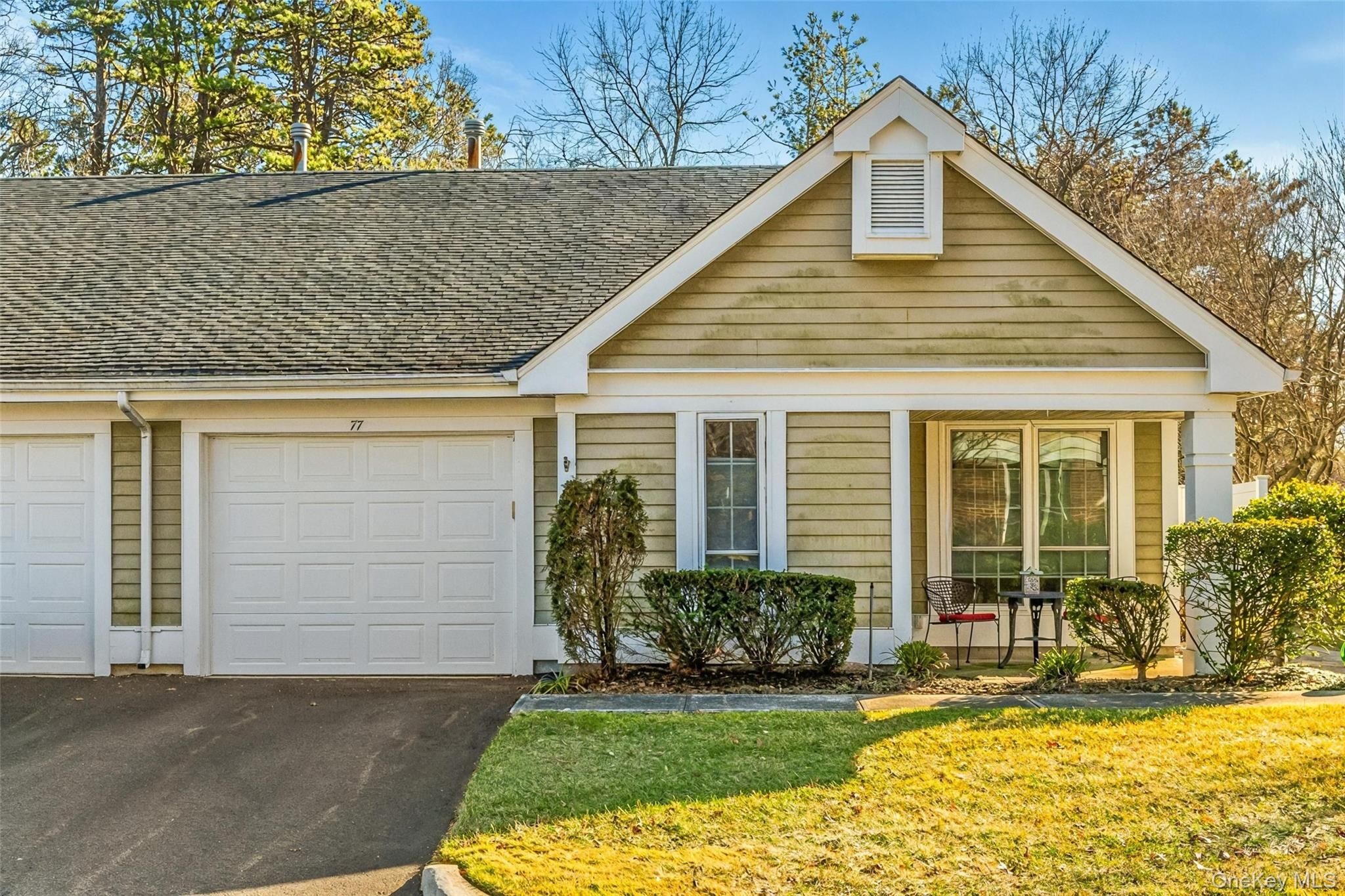 Welcome to The Glen, a premier gated 55+ community located on the North Shore of Long Island. This beautifully maintained Bedford model offers a primary bedroom with full bath, plus additional bedroom and full bath. This home features a large eat in kitchen with sliding glass doors leading to a private deck, perfect for morning coffee or entertaining. A generous formal living room and dining area with vaulted ceiling provide an open and inviting layout. Additional highlights include a 1 car garage and ample storage throughout. Residents of The Glen enjoy exceptional amenities including a clubhouse, swimming pool, tennis, and fully equipped gym, all within a secure beautifully landscaped setting. Move right in and enjoy the lifestyle this sought after community has to offer.