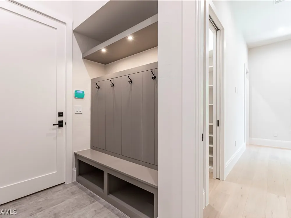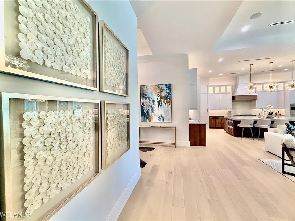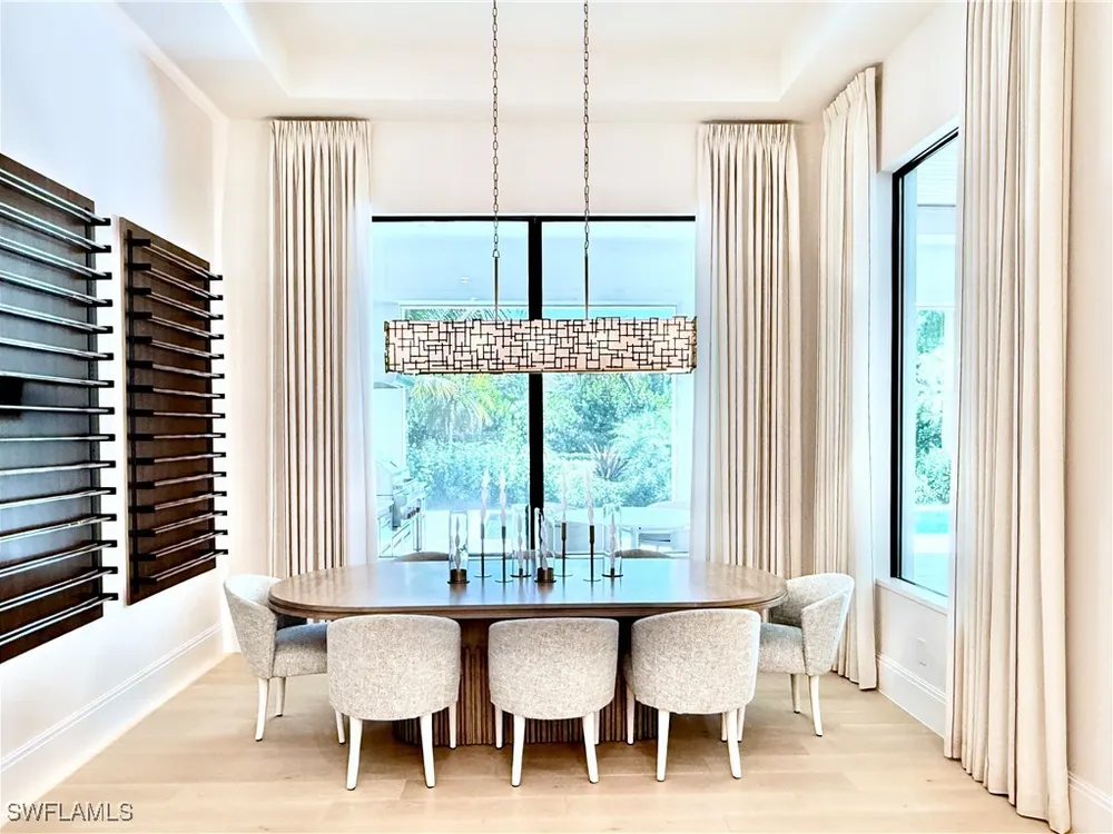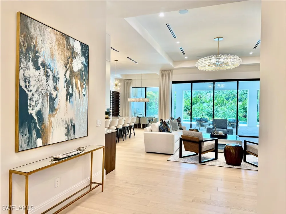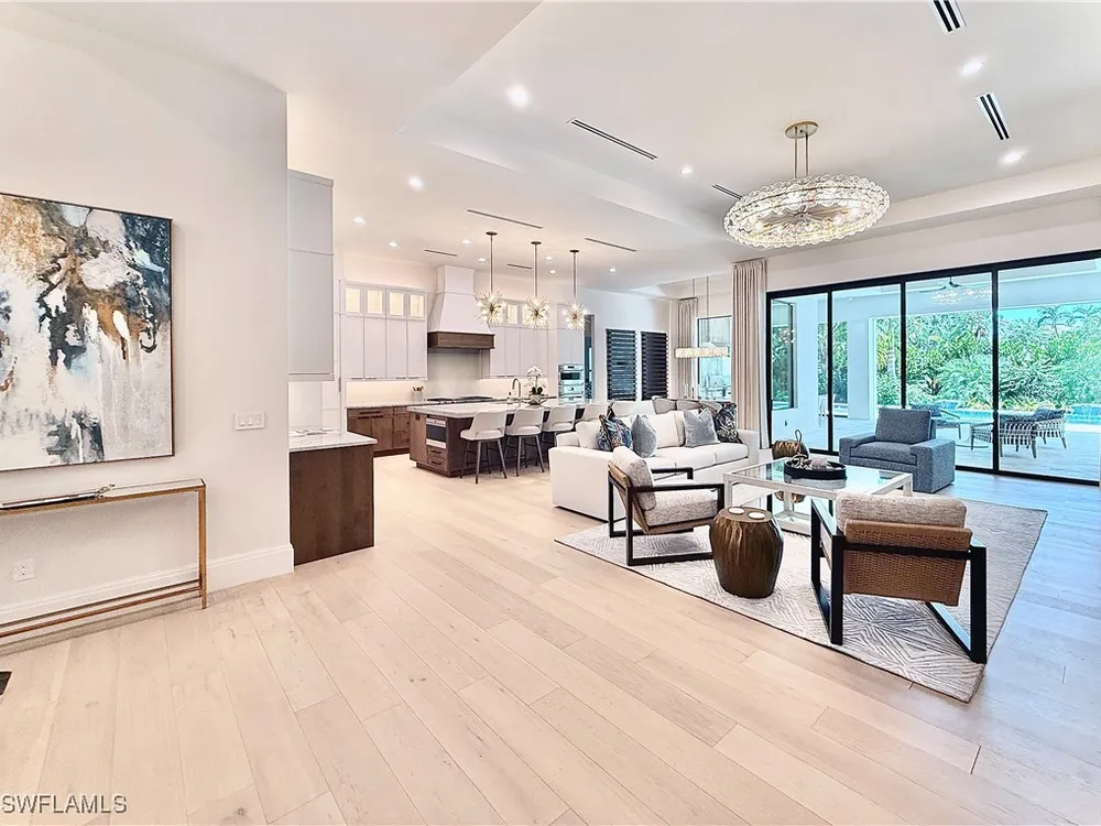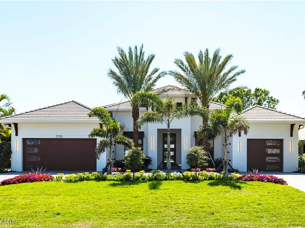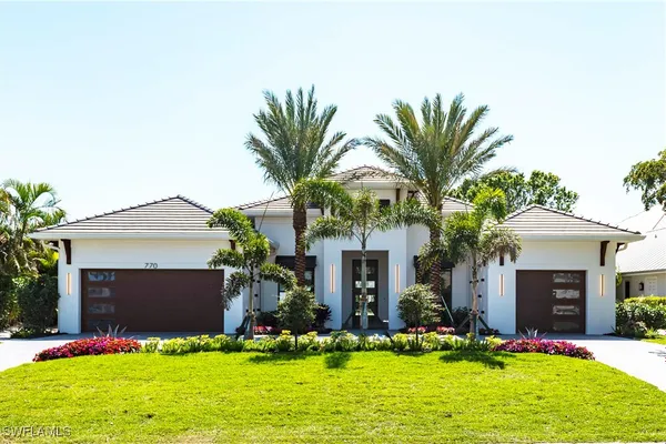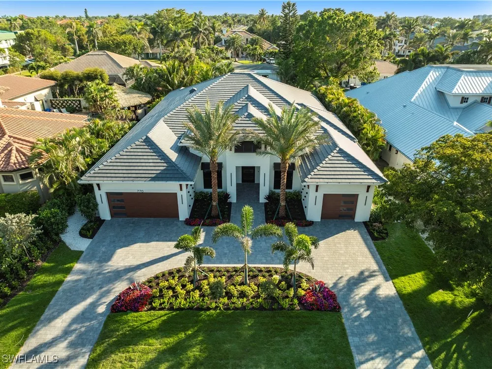 STRATEGICALLY LOCATED NEW CONSTRUCTION 4/5 BDRM POOL HOME makes for a solid investment! Immerse yourself in one of the most coveted Naples neighborhoods "The Moorings," with upscale beaches, world-class dining, and private clubs just moments from your door. Positioned on a quiet, low-traffic street in the X-Zone (low flood risk). Perfectly crafted by builder "Robert D'Angelo Jr Custom Homes," finishes by "Oak and Fifth Design," and beautiful decor/furnishings by "Clive Daniels." The grand entrance offers a 4-panel glass Mahogany-finished impact entry door, meticulously designed Cypress Corbels and Boral Saxony Slate Tile Roof. Professionally landscaped with twin Medjool palms and dramatic 3D effect art lighting. Inside, 8” European White Oak hardwood flooring flows throughout, accented by 9 ½” baseboards and custom inlays. The open-concept living and dining area showcases a custom oak feature wall and art lighting, perfect for both intimate gatherings and grand entertaining. A beautiful custom kitchen with white contemporary cabinetry, 12’ island with River Blue Extra Quartzite countertops, and professional-grade SubZero/Wolf/Cove appliances, including an LP gas range top. A walk-in pantry with shelving and quartz countertops completes this culinary haven. The Master Suite offers a spa-like retreat, boasting a wet room, a freestanding soaking tub, rain shower, marble herringbone mosaic tile flooring, two separate restrooms, and custom dual vanities with Calacatta Dolomite Quartzite countertops. Two expansive custom closets feature built-in mirrors, quartzite countertops, and locking jewelry drawers. FEATURES: * Oversized Master Suite and Three Additional Bedrooms, en-suite bathrooms and custom closet systems. * Two Additional Bonus Rooms offer many options. The "Den" is perfect space for cards, cocktails & conversation, and offers built-in cabinetry with two Sub Zero refrigerator drawers; and The "Office." All rooms offer sound proof insulation. * The Outdoor Oasis has an outdoor kitchen with a built-in LP gas grill, SubZero outdoor refrigerator, 60” linear fireplace, and motorized hurricane shutters & screens. * Resort-Style Pool & Spa has fire/fountain bowls and marble lanai pavers. * The Laundry Room has custom cabinetry, GE Steam Washer & Dryer, and a True undercounter ice maker and custom drying racks. MECHANICALS: This home is equipped with a 20kW generator, 500-gallon underground LP gas tank, two high-efficiency AC split systems, tankless water heaters, Icynene spray foam insulation, a security system, and a whole-house audio and network system. Three car garage spaces, both have drop down ladder attic access and epoxy floors. LOCATION-LOCATION-LOCATION: 1.5 Miles to "The Moorings Beach," 2.5 Miles to the newly constructed "Four Seasons Beach & Golf Club," 3 Miles to Downtown Naples 5th Ave Dining/Shopping. This proximity adds to a sound valuable investment with wealth and growth all around.