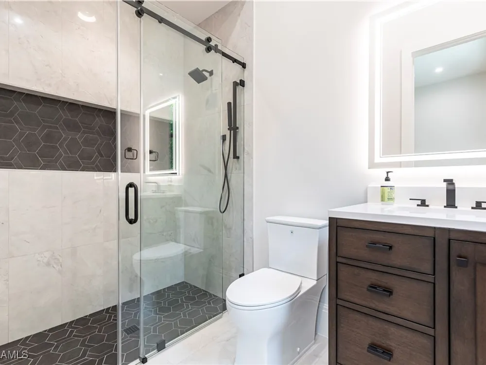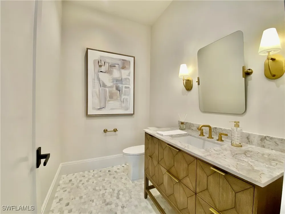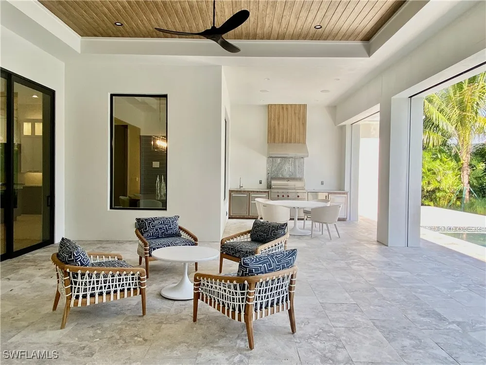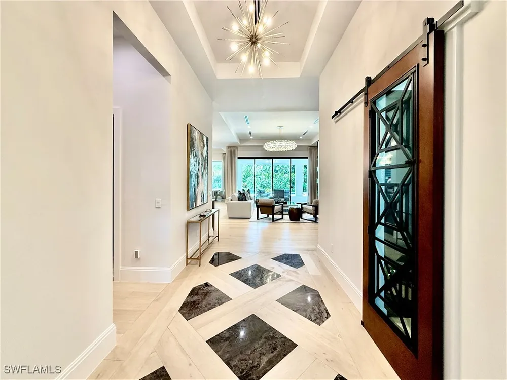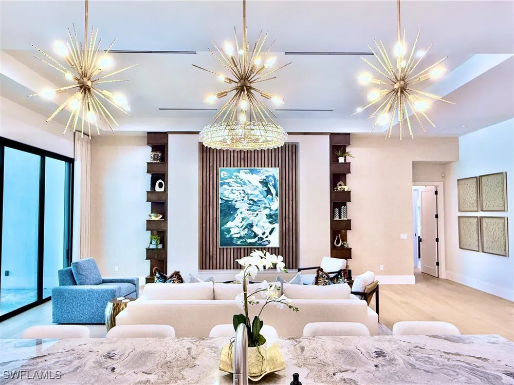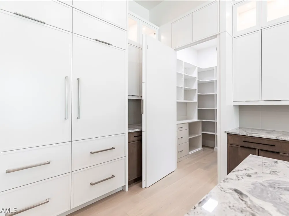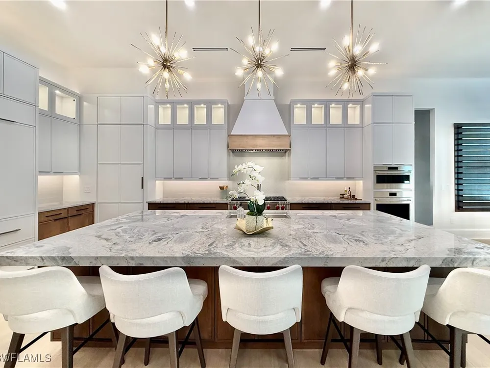STRATEGICALLY LOCATED NEW CONSTRUCTION 4/5 BDRM POOL HOME makes for a solid investment! Immerse yourself in one of the most coveted Naples neighborhoods "The Moorings," with upscale beaches, world-class dining, and private clubs just moments from your door. Positioned on a quiet, low-traffic street in the X-Zone (low flood risk). Perfectly crafted by builder "Robert D'Angelo Jr Custom Homes," finishes by "Oak and Fifth Design," and beautiful decor/furnishings by "Clive Daniels." The grand entrance offers a 4-panel glass Mahogany-finished impact entry door, meticulously designed Cypress Corbels and Boral Saxony Slate Tile Roof. Professionally landscaped with twin Medjool palms and dramatic 3D effect art lighting. Inside, 8” European White Oak hardwood flooring flows throughout, accented by 9 ½” baseboards and custom inlays. The open-concept living and dining area showcases a custom oak feature wall and art lighting, perfect for both intimate gatherings and grand entertaining. A beautiful custom kitchen with white contemporary cabinetry, 12’ island with River Blue Extra Quartzite countertops, and professional-grade SubZero/Wolf/Cove appliances, including an LP gas range top. A walk-in pantry with shelving and quartz countertops completes this culinary haven. The Master Suite offers a spa-like retreat, boasting a wet room, a freestanding soaking tub, rain shower, marble herringbone mosaic tile flooring, two separate restrooms, and custom dual vanities with Calacatta Dolomite Quartzite countertops. Two expansive custom closets feature built-in mirrors, quartzite countertops, and locking jewelry drawers. FEATURES: * Oversized Master Suite and Three Additional Bedrooms, en-suite bathrooms and custom closet systems. * Two Additional Bonus Rooms offer many options. The "Den" is perfect space for cards, cocktails & conversation, and offers built-in cabinetry with two Sub Zero refrigerator drawers; and The "Office." All rooms offer sound proof insulation. * The Outdoor Oasis has an outdoor kitchen with a built-in LP gas grill, SubZero outdoor refrigerator, 60” linear fireplace, and motorized hurricane shutters & screens. * Resort-Style Pool & Spa has fire/fountain bowls and marble lanai pavers. * The Laundry Room has custom cabinetry, GE Steam Washer & Dryer, and a True undercounter ice maker and custom drying racks. MECHANICALS: This home is equipped with a 20kW generator, 500-gallon underground LP gas tank, two high-efficiency AC split systems, tankless water heaters, Icynene spray foam insulation, a security system, and a whole-house audio and network system. Three car garage spaces, both have drop down ladder attic access and epoxy floors. LOCATION-LOCATION-LOCATION: 1.5 Miles to "The Moorings Beach," 2.5 Miles to the newly constructed "Four Seasons Beach & Golf Club," 3 Miles to Downtown Naples 5th Ave Dining/Shopping. This proximity adds to a sound valuable investment with wealth and growth all around.