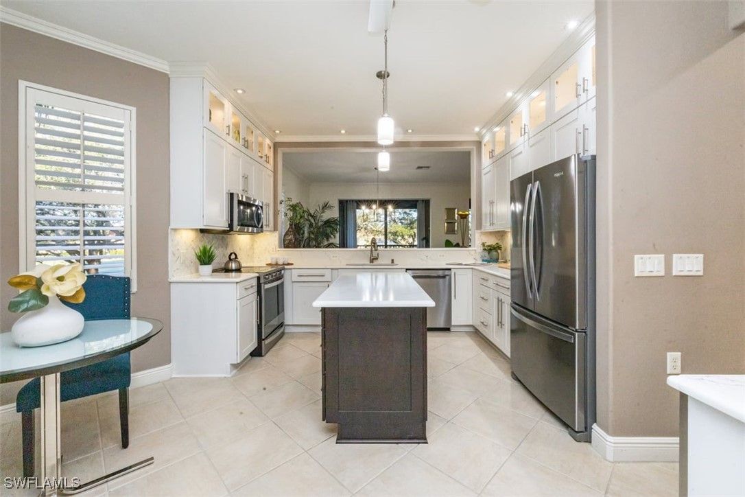 PRICE IMPROVEMENT AT Regency Reserve in The Vineyards – Second-Floor End-Unit Coach Home Experience refined living in this exceptional second-floor end-unit coach home, complete with a private elevator and two-car garage. This thoughtfully designed residence offers three bedrooms plus a den, three full baths, and a flexible layout enhanced by numerous custom upgrades. Sweeping Golf Course views! Positioned uniquely on the lot, the home enjoys added privacy and tranquil surroundings. A custom loft—currently utilized as an office—adds versatility, while the enclosed lanai with impact-resistant sliding glass doors creates an expanded living area with additional interior square footage. The former lanai closet has been cleverly reimagined as a private office or library, further enhancing functionality. The renovated kitchen and primary bath showcase quality finishes, complemented by crown molding and plantation shutters , adding timeless elegance and architectural detail. This custom-designed condominium offers serene golf course views and a floor plan unlike any other in the community. Thoughtful design elements throughout ideal for both entertaining and everyday comfort. Residents of Regency Reserve enjoy access to a well-appointed clubhouse featuring a library, social room, fitness room, and swimming pool & spa , all within a welcoming and vibrant community. This is a rare opportunity to own a truly distinctive residence in one of The Vineyards’ most desirable neighborhoods. A must-see property.