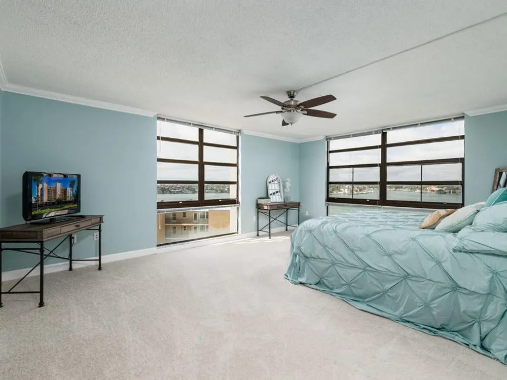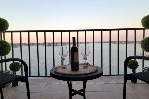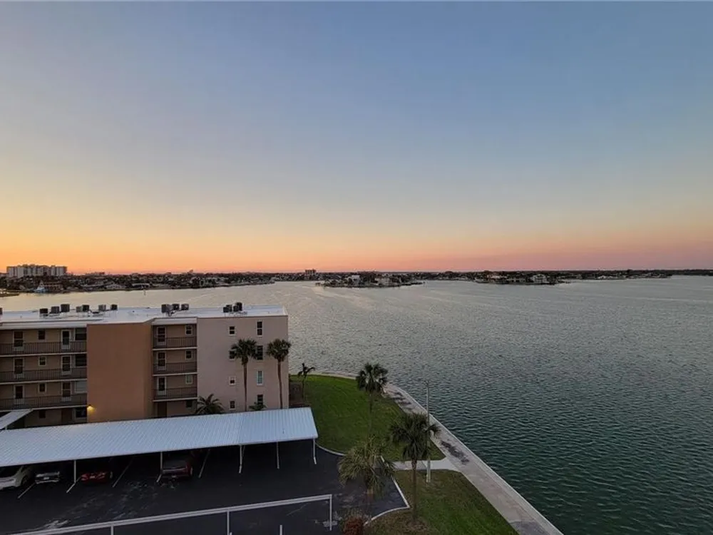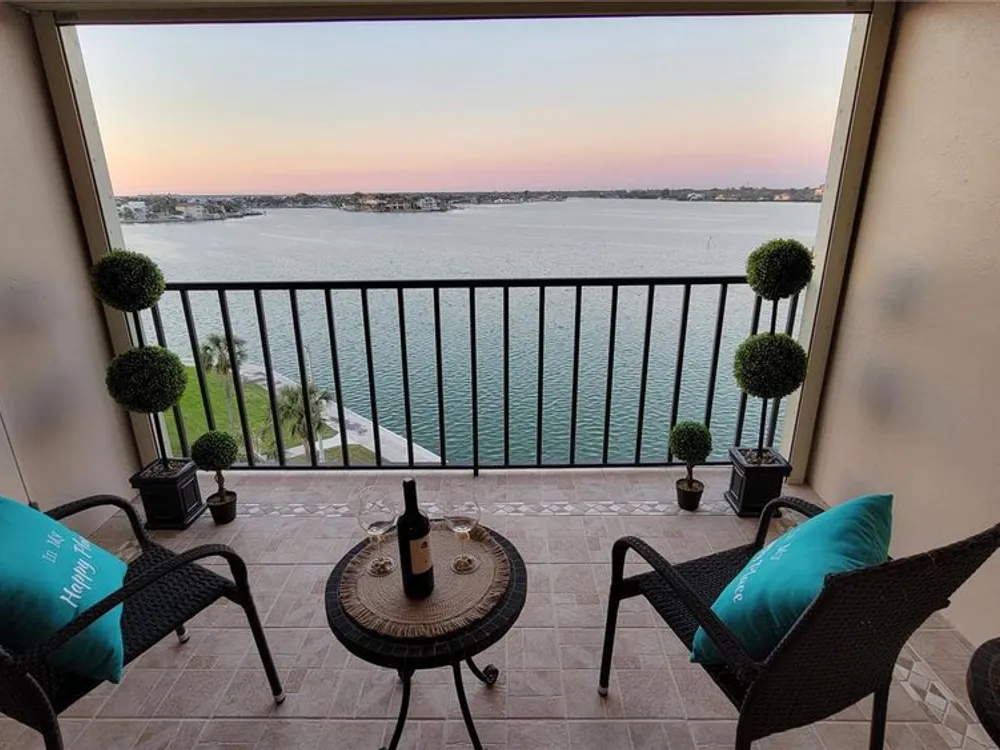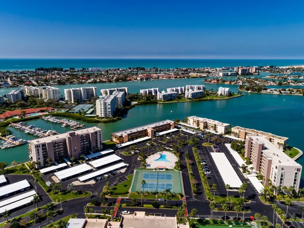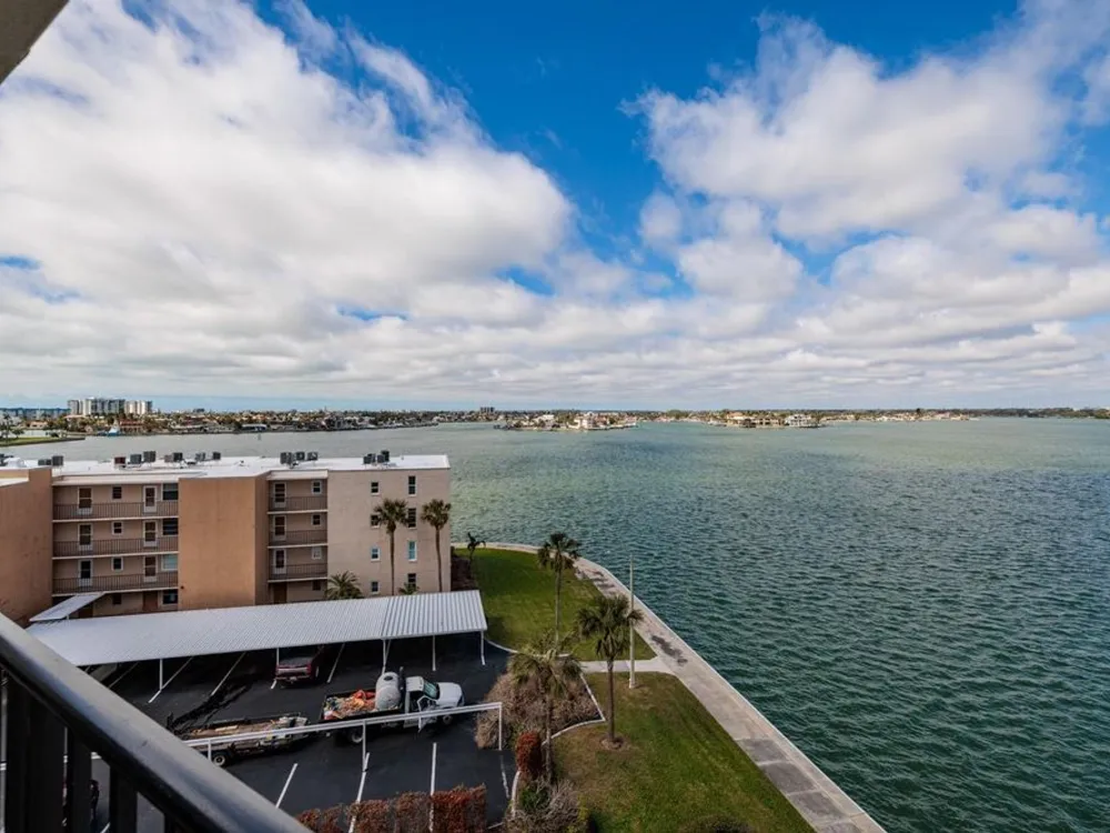 Honey stop the boat!! Welcome Home to Paradise! Spectacular million dollar wrap around views of Boca Ciega Bay,the Intracoastal, the Gulf, the beautiful ‘Pink Lady’ hotel the Don Cesar on St Pete Beach, you can even see the John’s Pass Draw Bridge when it is open & much more! A very VERY rare opportunity to own a 2 bed 2 bath END unit in the sought after Commodore Building! So close to St Pete Beach literally just across the bridge! A short drive,bike ride or even walk/jog over to the beach,many shops,restaurants,weekend markets,festivals & more. You have been working your entire life for your home by the beach & THIS IS IT!! This is all you need for your life in paradise…all that’s missing is you!! This elegantly renovated home has been cherished, owned, & meticulously cared for by the same family since its inception, & now they are poised to pass on this slice of paradise for you to enjoy YOUR life in paradise! Don’t let the very rare opportunity to own your own beach paradise home like this pass you by! Enjoy a glass of your favorite wine or a cocktail on your beautifully tiled & spacious balcony as you take in the million dollar views of Boca Ciega Bay & as far as the Gulf! Enjoy the captivating entertainment provided by dolphins almost daily along with occasional special guest appearances by manatees,boaters & more! Enjoy daily breathtaking views, sunrises & sunsets...life truly doesn't get much better than this! THIS is what you have been dreaming of! Note the attention to detail in the elegant upgrades throughout-high end Kenmore Elite stainless appliances & beautiful maple wood cabinets, crown molding, 2-tiered granite countertops that wrap around to include a built in desk, wet bar & additional cabinetry in the spacious dining room.The floor to ceiling kitchen window provides views of the intracoastal, beautifully landscaped grounds & even a view of the Don Cesar on a clear day!Beautiful Mirage Engineered Maple Hardwood flooring spans the entire living area. Elegant crown molding, baseboards & door casings encompass the entire home.Plantation shutter style doors throughout this beautiful home add to that coastal feel. A spacious master bedroom boasts new carpeting,crown molding,large walk in closet, upgraded ensuite bath with quartz counter top & walk in shower. Floor to ceiling windows provide breathtaking wrap around views of the bay, intracoastal & peek a boo views of the Gulf. The 2nd bedroom has new carpeting, oversized dual closets & floor to ceiling windows also providing spectacular wrap around views! Soak away your cares in the Pearl Whirlpool Tub in the second FULL bathroom with quartz countertop & travertine flooring. Well maintained, active & pet friendly waterfront community, 24 hour guard gate, walking path along the sea wall around the community, 6 pools & 2 hot tubs!, shuffle board, tennis & pickle ball courts,Tiki Hut picnic BBQ area with gas grills next to the private marina, boat slips for rent as available, clubhouse with fitness centers,saunas, billiards, ping pong,game & card rooms, library, large 2nd floor community room for meetings, dances, yoga, community festivities including Christmas parties & more & available to residents for private rentals. There is also a social director who organizes frequent activities. Close to the beaches, close to shopping, easy access to downtown,the interstate,airport & more! Stop Dreaming & Start Living…In Paradise! Make this your very own beach paradise home today!