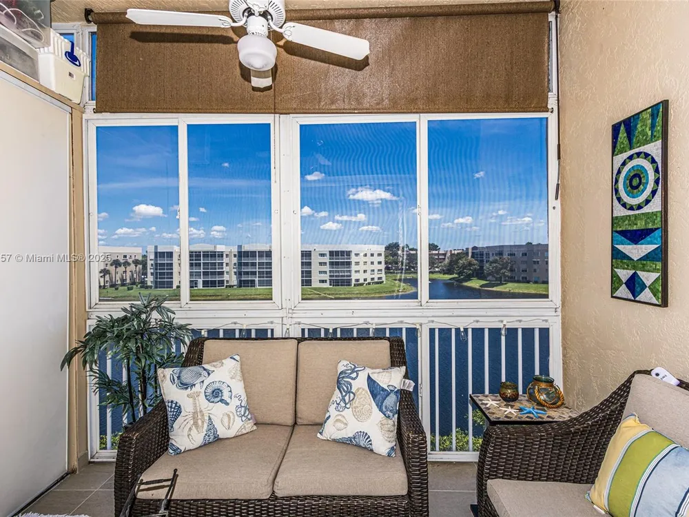 Seller says BRING OFFERS! This fabulous 2 bedroom/2 bath condo in the desirable Trent community offers beautiful lake views from the screened balcony with acrylic sliders and storage closet. Immaculate & move in ready. White kitchen with SS & quartz counters. Tile & laminate floors are throughout. For your convenience, there is a full size washer/dryer in unit. You will appreciate the high ceilings in this 4th floor unit. Updated bathroom. Close to the elevator. It's an easy walk across parking lot to the Trent satellite clubhouse and pool. Located in this 55+ community, enjoy the incredible amenities that Kings Point offers. Heated indoor pool, courtesy bus, huge clubhouse, theater, gym, billiards, pickleball, 60+ clubs and more. Some furniture negotiable. OK to rent after 2 years owned.