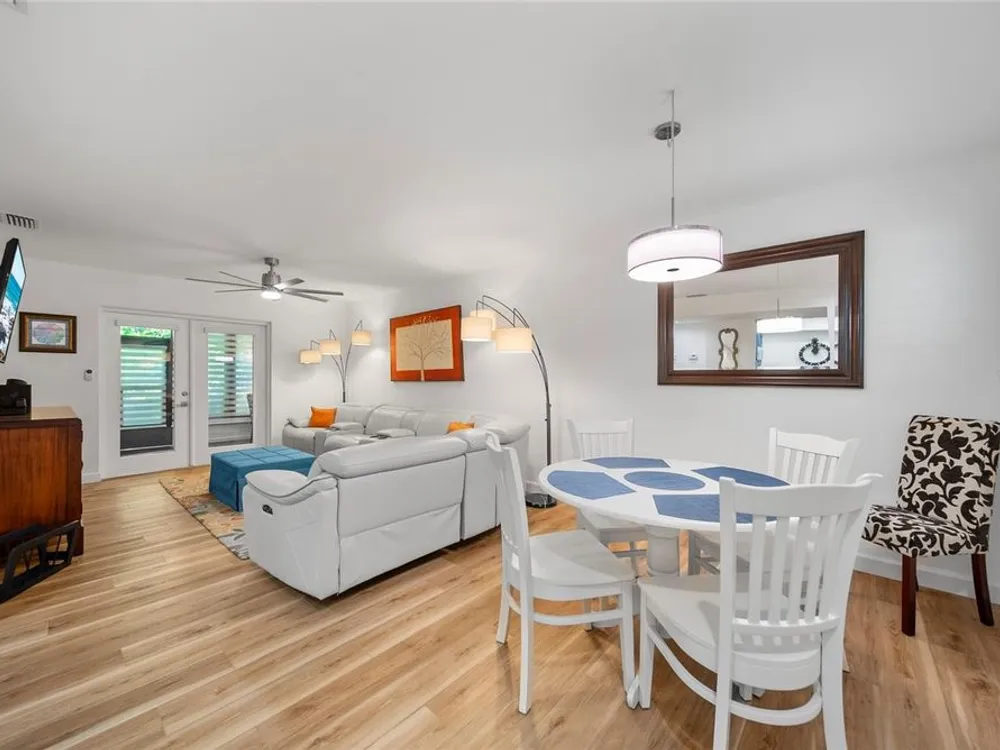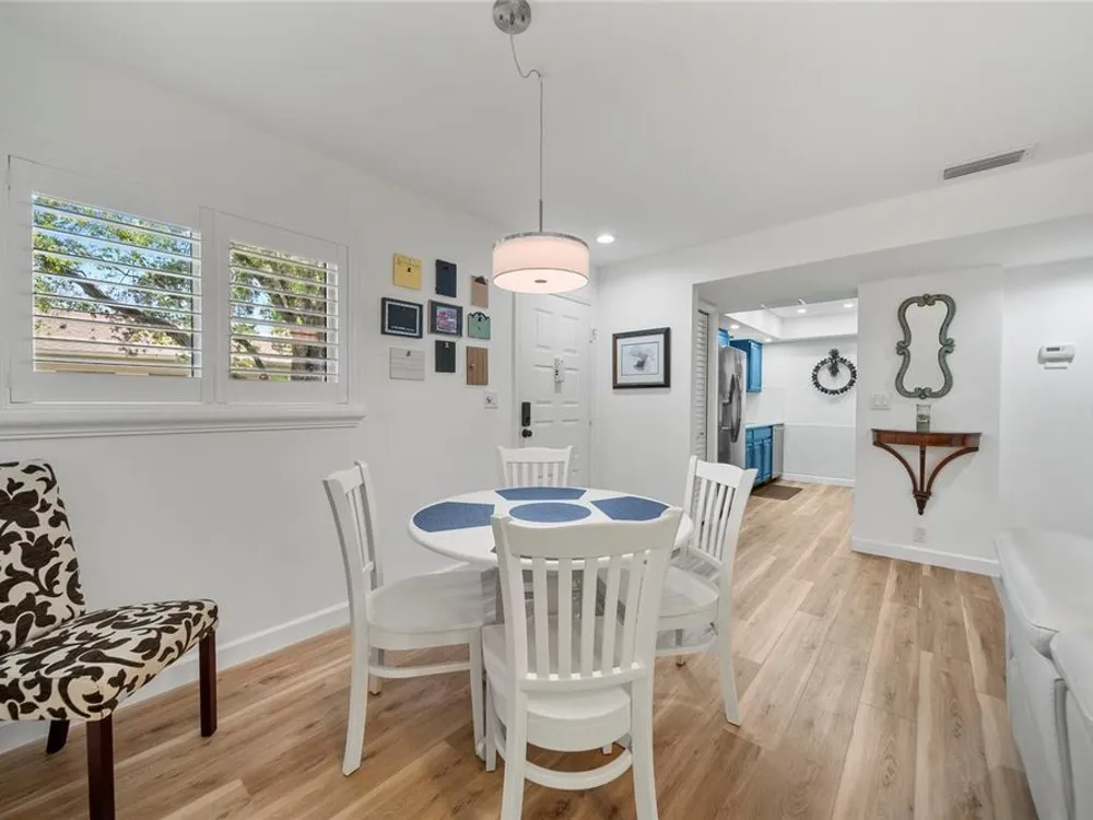 Reduced - Pet-Friendly | No Flood Zone | Fully Furnished Welcome to this beautifully remodeled 1-bedroom, 1-bathroom villa nestled in a serene 55+ community. This spacious home features an open-concept layout with a bright and airy living and dining area—perfect for entertaining or relaxing in comfort. Step out onto your private bonus room to enjoy your morning coffee or unwind with the Florida sunset. The generous primary suite includes a large closet for ample storage, while the versatile bonus room comes equipped with a fold-out bed—ideal for guests or use as a home office. Enjoy resort-style living with access to a sparkling community pool just steps away. This low-maintenance villa was tastefully renovated in 2023 with hurricane-rated windows and French door, luxury vinyl plank flooring throughout, new shower surround, updated interior doors, and modern baseboards. Best of all, it’s being sold fully furnished—just bring your suitcase and settle right in! Comfort, convenience, and community await—schedule your showing today!