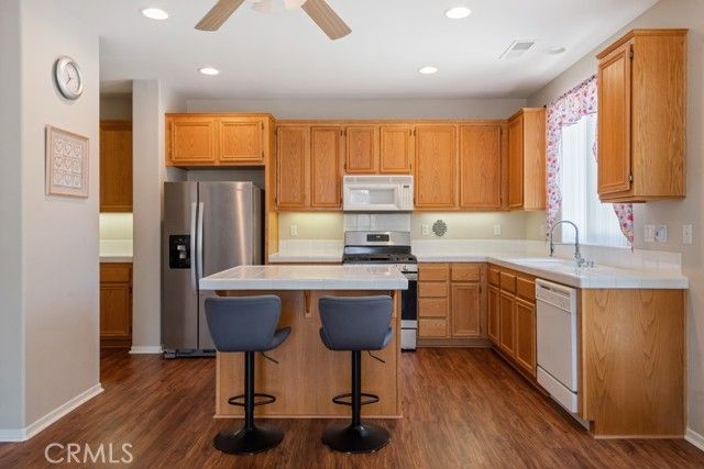 Welcome to Your Resort-Style Retreat in Four Seasons Hemet! Located on a quiet cul-de-sac within the sought-after 55+ gated community of Four Seasons, this beautifully maintained 2-bedroom, 2-bath home offers 1,809 sq. ft. of thoughtfully designed living space on a 4,356 sq. ft. lot. Step inside to find newly installed hardwood flooring throughout the main living areas, creating a warm and elegant atmosphere. Ceiling fans are installed in most rooms for year-round comfort. Updated appliances in the kitchen also included. Enjoy a low-maintenance lifestyle with professionally landscaped front and back yards—now featuring tasteful updates in the backyard that provide the perfect space to relax or entertain. The Four Seasons community offers an unparalleled array of amenities including 24-hour security, a sparkling pool and spa, fitness center, salon, theater, library, game room, billiards, BBQ area, and more—designed to support an active and vibrant lifestyle. Conveniently located near shopping, dining, and easy freeway access, this is more than just a home—it’s a lifestyle. Don’t miss the opportunity to make it yours