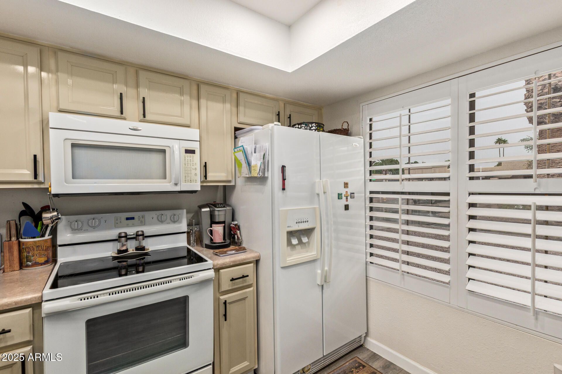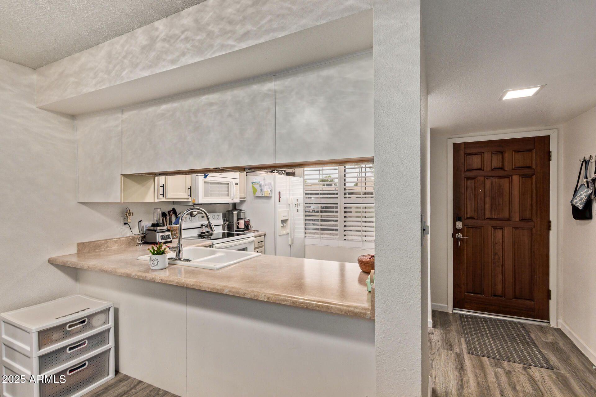 This charming 2-bedroom, 2-bathroom townhouse is situated within a vibrant Arizona retirement community designed to offer an active, and comfortable lifestyle for seniors. Features include brand-new luxury vinyl plank floors, a new HVAC system installed in 2021, and all appliances included. The kitchen cabinets have been recently repainted, giving the home a fresh, updated look. Perfect for comfortable, low maintenance living in a welcoming neighborhood. Updated tile on the front patio entrance and the back patio (2022). AZ Classic Shutters installed in Master and Kitchen windows (2022)