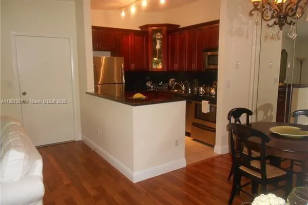 Stunning 2-Bedroom, 2-Bathroom Condo!Experience exceptional living in this beautifully updated and spacious open-concept home. Featuring a modern kitchen with 42" cherry-stained maple wood cabinetry, stainless steel appliances, a corner lighted glass display cabinet, and elegant crown molding. The home is adorned with gorgeous Pergo flooring throughout and detailed with 4.5" baseboards for a sophisticated touch,The expansive primary suite includes plantation shutters, while the large private balcony—complete with custom bamboo shades offers serene views of the pool. Enjoy resort-style amenities and embrace the luxurious "Country Club" lifestyle. A true gem you won’t want to miss!