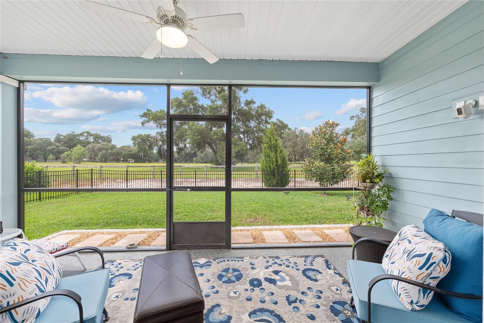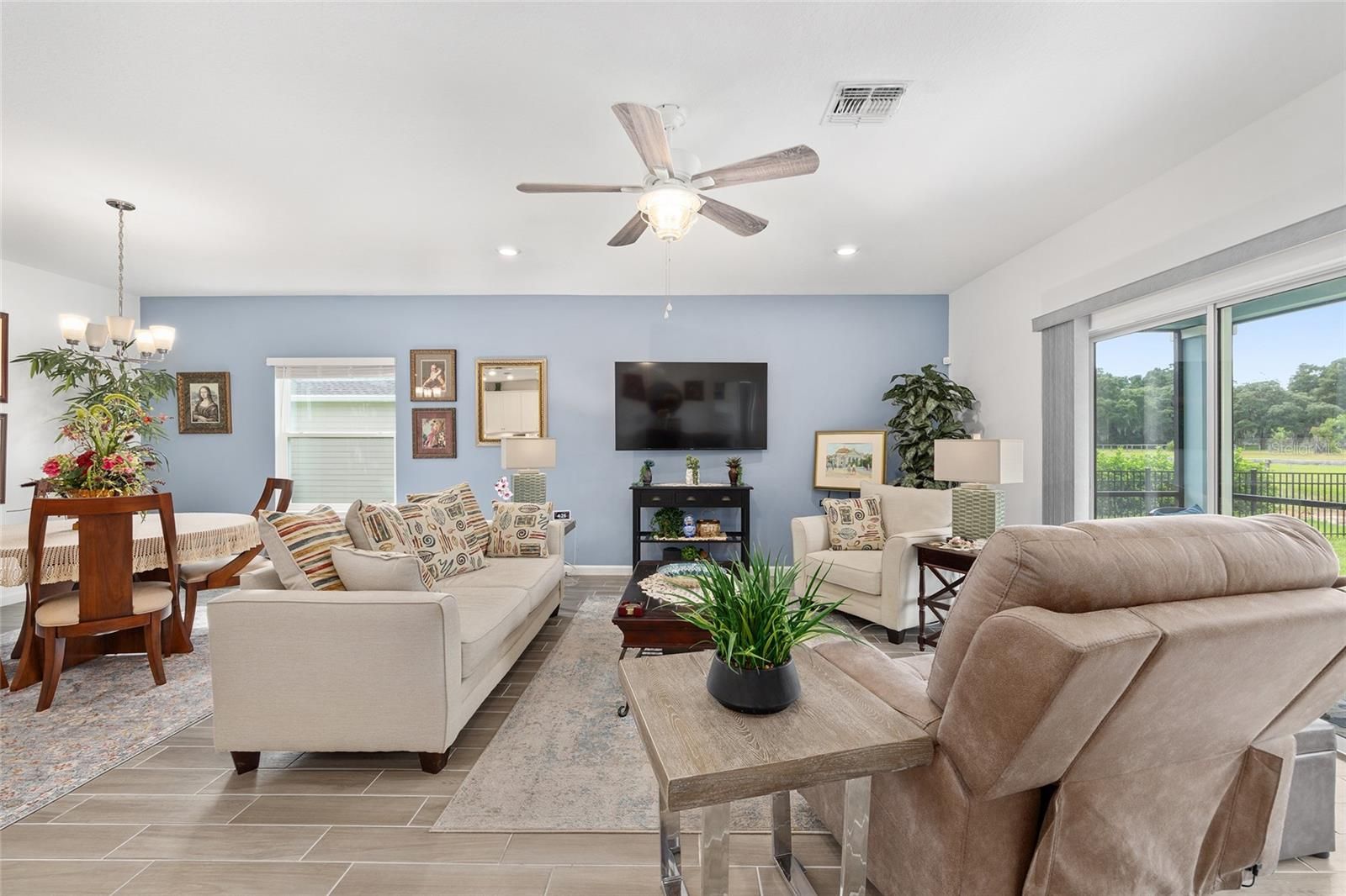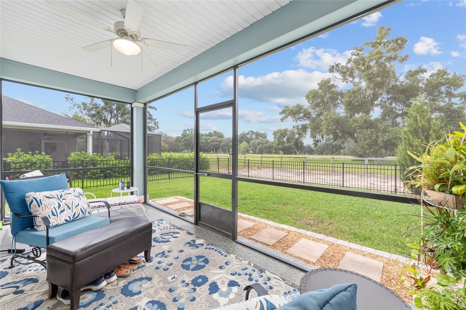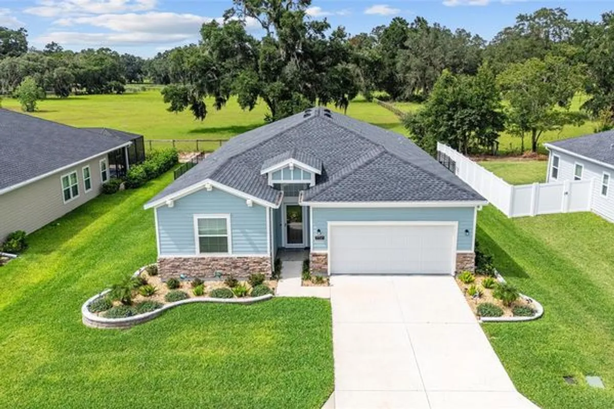 This meticulously maintained custom built Trevi model blends style, comfort, and functionality—perfect for those seeking elegant living in a new and vibrant 55+ community! Featuring 3 bedrooms, 3 bathrooms, and a versatile office/den- flex space with privacy doors. Located on a premium lot, with NO REAR NEIGHBORS and a fully fenced in backyard, this residence is truly ONE OF A KIND! Spanning 2,032 square feet, this home offers an open, spacious layout ideal for family living and entertaining. At the heart of the home is a beautiful chef's kitchen, featuring a large kitchen island, glistening granite countertops, custom solid wood cabinetry, stainless steel appliances, and ample cabinet space for all your culinary essentials. This expansive open-plan layout that seamlessly integrates living, dining, and kitchen spaces, perfect for entertaining. The primary suite is a true sanctuary, offering an ensuite bathroom with dual vanities, a beautifully oversized tiled stand-up shower with a sleek glass door and waterfall shower system, and two spacious walk-in closets with custom built-ins! The spacious second bedroom is perfect for guests, complete with a deep closet and a private ensuite featuring a shower/tub combo and a deep vanity. The third bedroom is equally impressive, bathed in natural light from a large window and equipped with a deep closet. Steps away, The versatile office/den space is perfect for those who work from home or can easily be converted to a fourth bedroom. Designed for indoor-outdoor living, beautiful large sliders invite you to a very private, oversized extended screened in lanai—a tranquil haven perfect for entertaining! Located on a private homesite that doesn’t back to other homes, you'll enjoy a serene retreat in your backyard. Enjoy access to the new covered pavilion, community pool, and recreational amenities, including bocce, pickleball, and shuffleboard—providing endless opportunities for leisure and connection. Conveniently located near restaurants, shopping, and just 15 minutes from the renowned World Equestrian Center, this home offers luxury, convenience, and community in one exceptional package. From its luxurious upgrades to its attention to detail, this home is a rare find that perfectly blends sophistication and comfort. Schedule your private tour today!