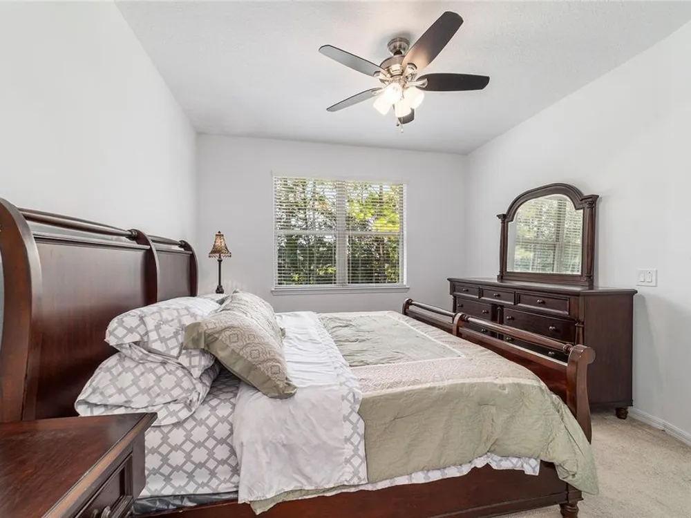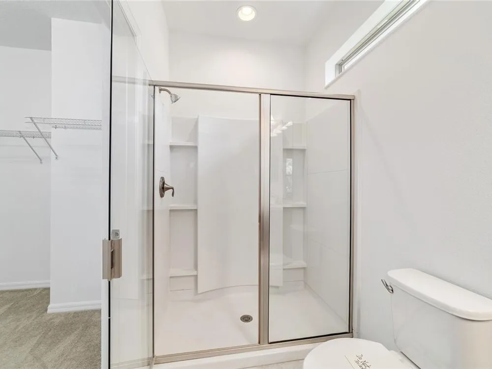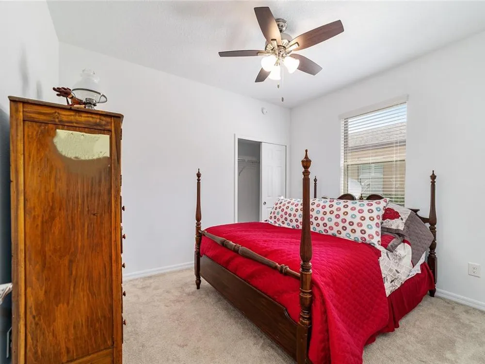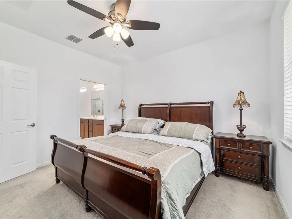 - Ceiling Fan(s), Eat-in Kitchen, Living/Dining Room, Open Floorplan, Main Level Primary, Stone Counters, Thermostat, Walk-In Closet(s)