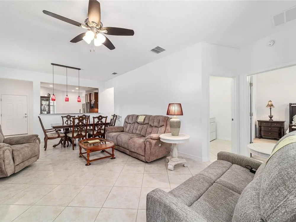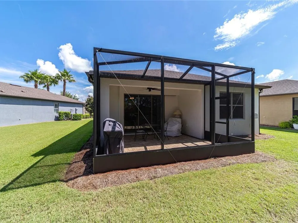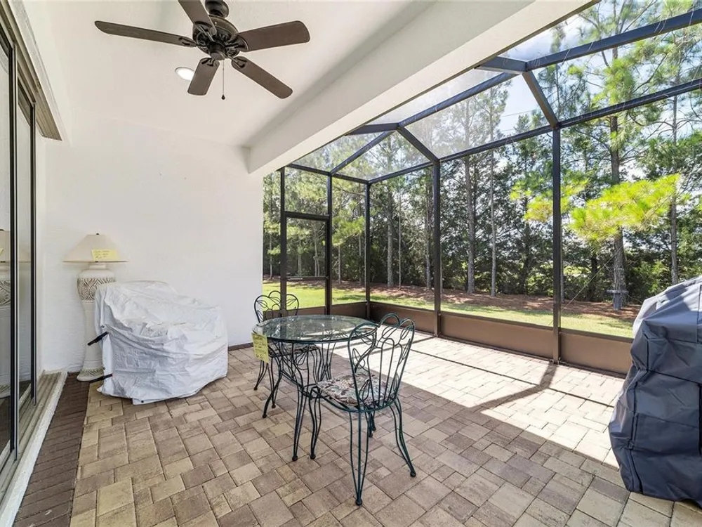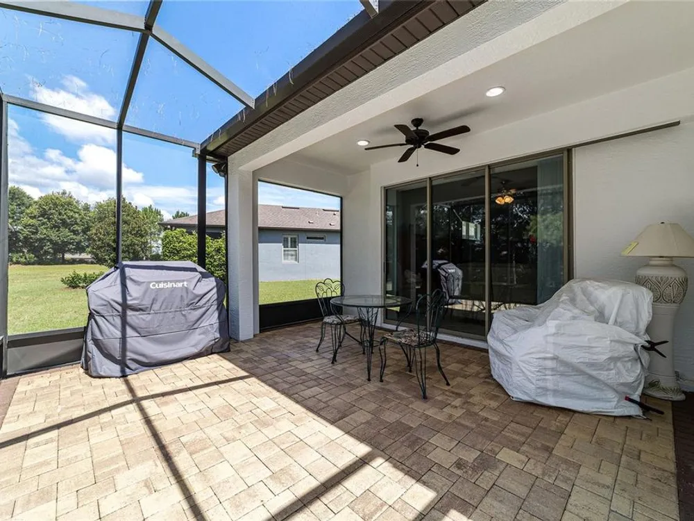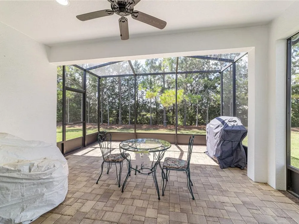 Discover the epitome of resort-style living in this stunning Noir Coast model, nestled within the 55+ gated golf community of Stone Creek, stacked full of resort-style amenities. This beautifully crafted Garden Series home offers a bright, open layout, complete with an expanded 2-car garage and a spacious birdcage lanai showcasing serene and private views of the lush nature berm—your own slice of tranquility. Forget the stress of yard work- this garden series home allows you to enjoy carefree living without the hassle of lawn, landscaping, and irrigation maintenance, as those items are expertly managed for you. This meticulously designed home features a screened-in entryway opening to a light-filled living plan with low-maintenance tile set on the diagonal in the main living areas and a neutral color palette ready for your personal touch. The thoughtfully designed Kitchen offers a casual dining nook, recessed LED downlighting, brand-new Whirlpool stainless appliance package, sleek granite countertops, and a convenient pass-through to the spacious Gathering Room. Open the triple glass sliders to seamlessly extend your living space to the covered paver lanai and expansive birdcage patio—perfect for outdoor lounging and entertaining amid tree-lined views. Retreat to the spacious Owner’s Suite featuring a generous walk-in closet and a large window that frames peaceful, park-like views. The ensuite bath offers a step-in shower with glass doors, a granite-topped vanity, and a transom window that bathes the space in natural light. This home offers a host of thoughtful upgrades for added peace of mind, including a brand-new HVAC system (2023), an energy-efficient water heater, and a Craftsman garage door opener with convenient keypad entry. Fresh paint inside and out enhances its appeal, while the expanded garage features pull-down attic access and generous additional storage space. Enjoy the unmatched lifestyle of Stone Creek, where a staffed, 24/7 gated entrance provides peace of mind, and top-tier amenities await—from heated pools and hot tubs to a modern fitness center, spa, and saunas. Take part in pickleball, bocce, tennis, and softball, or join friends at the golf course, pro shop, and community restaurant. With a full calendar of events curated by a dedicated lifestyle team, you'll find countless opportunities to connect, relax, and thrive. Your new life of comfort, connection, and carefree luxury begins here—come experience it for yourself.