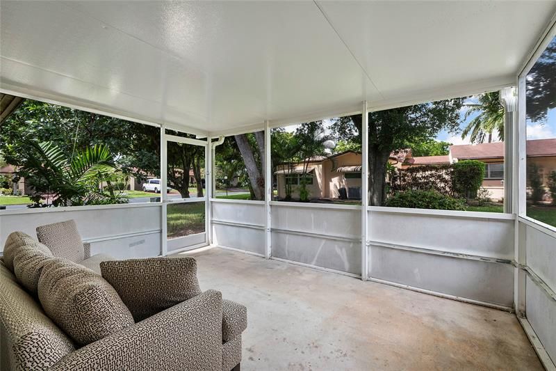 Beautifully updated 2BR/2BA villa in the desirable 55+ community of Garden Patio Villas. This light & airy corner unit features ceramic tile throughout, fresh paint, and a flex room ideal as a family room, office, or potential 3rd bedroom. The kitchen offers granite countertops, white cabinetry & ample storage. Enjoy the spacious screened patio with serene garden views. New ceiling fans/lights, 1-car garage plus 2 driveway spaces, and laundry in garage. Low HOA $200/mo includes water, lawn care, pool & common areas. Designed for comfort & convenience, with easy access to shopping, dining & cultural attractions—don’t miss this gem!
