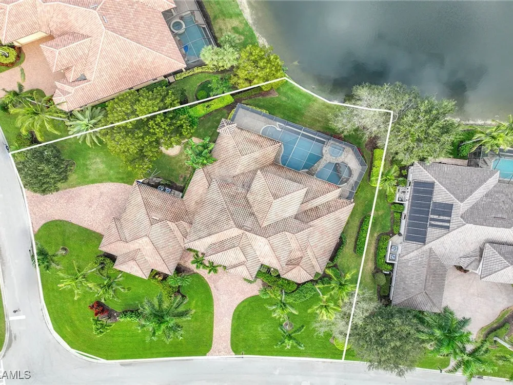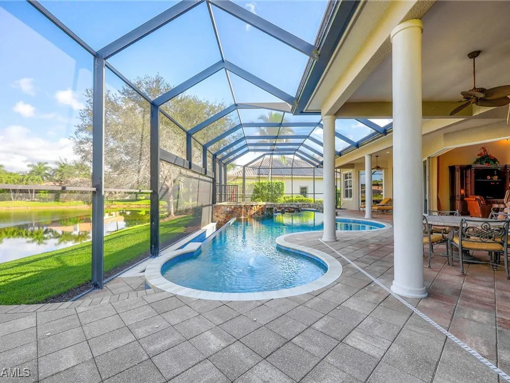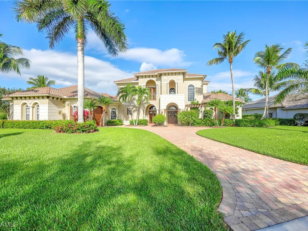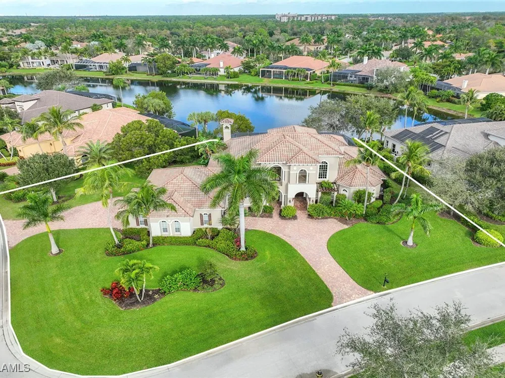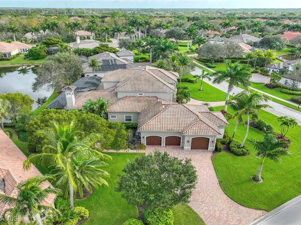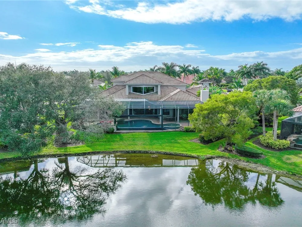 Uncover refined luxury in this exquisitely designed custom estate, crafted by Lundstrum Development Corporation. Situated within the prestigious guard-gated Classics Plantation Estates at Lely Resort, this breathtaking residence commands attention. Set on a generous corner lot with expansive lake frontage, it seamlessly blends sophistication with tranquil outdoor living. This architectural gem offers five bedrooms, a versatile den, four full bathrooms, and an expansive four-car garage. Elevated with premium upgrades, including granite countertops, elegant crown molding, a cozy gas fireplace, and a fully equipped outdoor kitchen. Retreat to your private sanctuary, featuring a gas-heated negative edge pool, a raised spa, and a picturesque bridge.The 23-foot volume ceilings add grandeur, while oversized walk-in closets and an outdoor balcony enhance the living experience. Enjoy IMMEDIATE ACCESS to the Players Club & Spa, renowned for its resort-style amenities. Embrace the lifestyle of Lely Resort, where three championship 18-hole golf courses await, ensuring a balance of leisure and recreation. This is more than a home, it's a sanctuary for those seeking the pinnacle of upscale living.