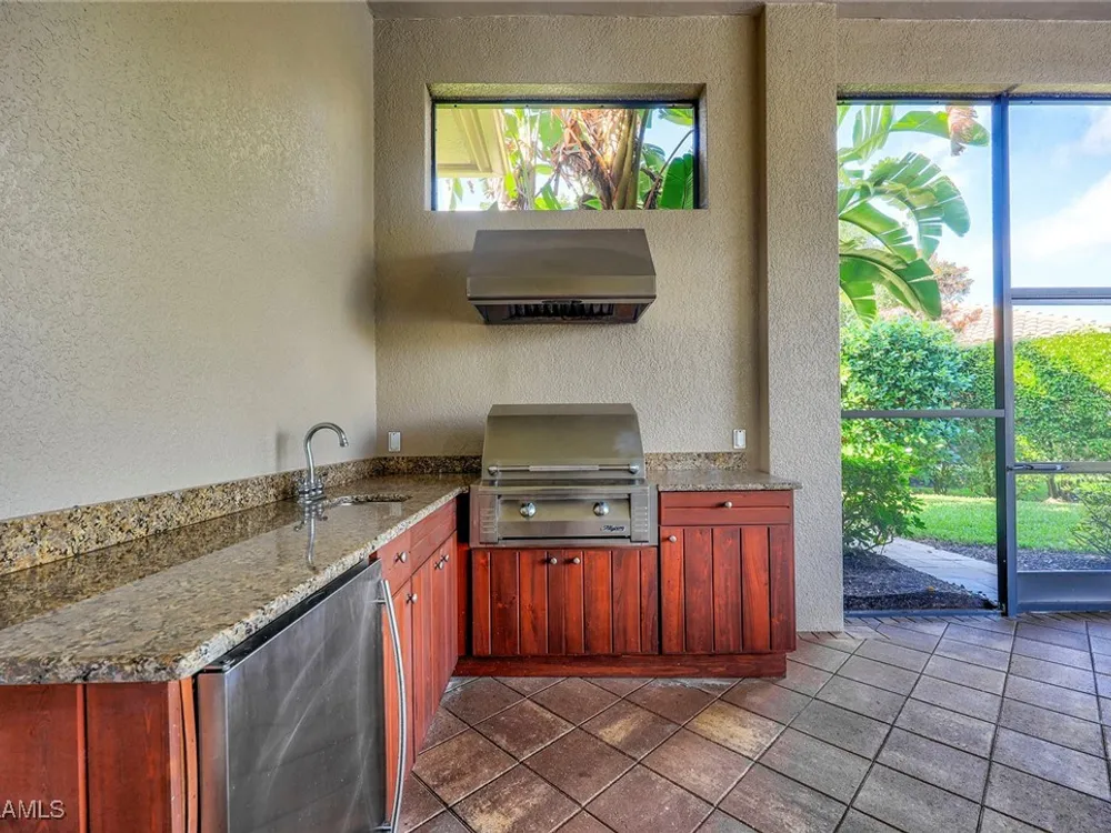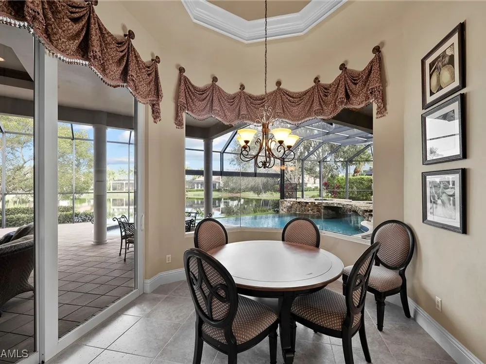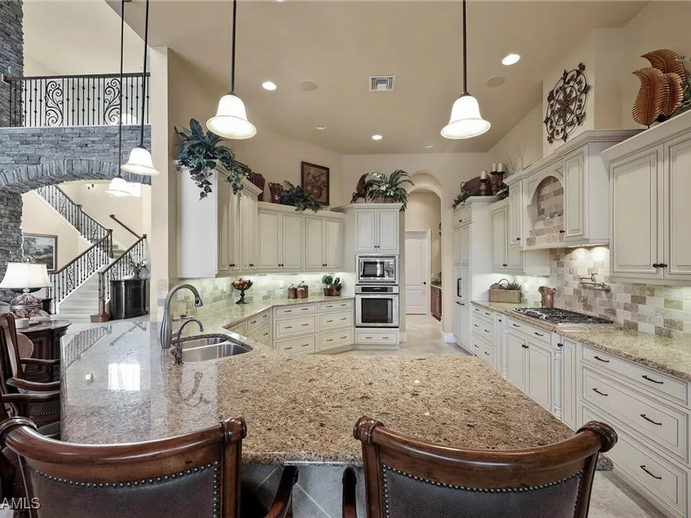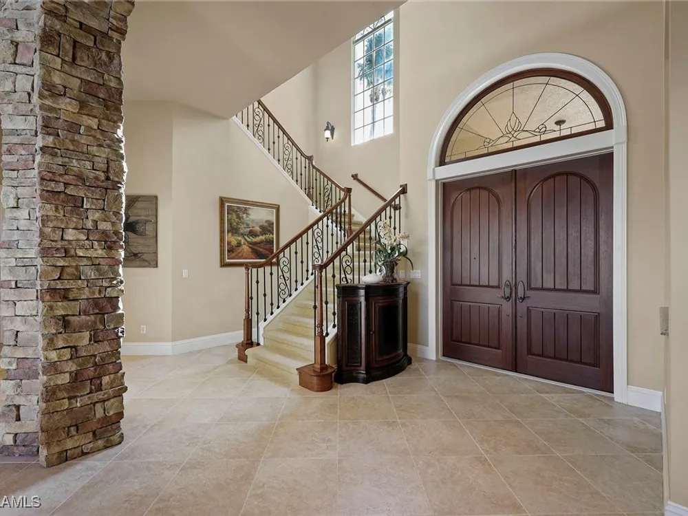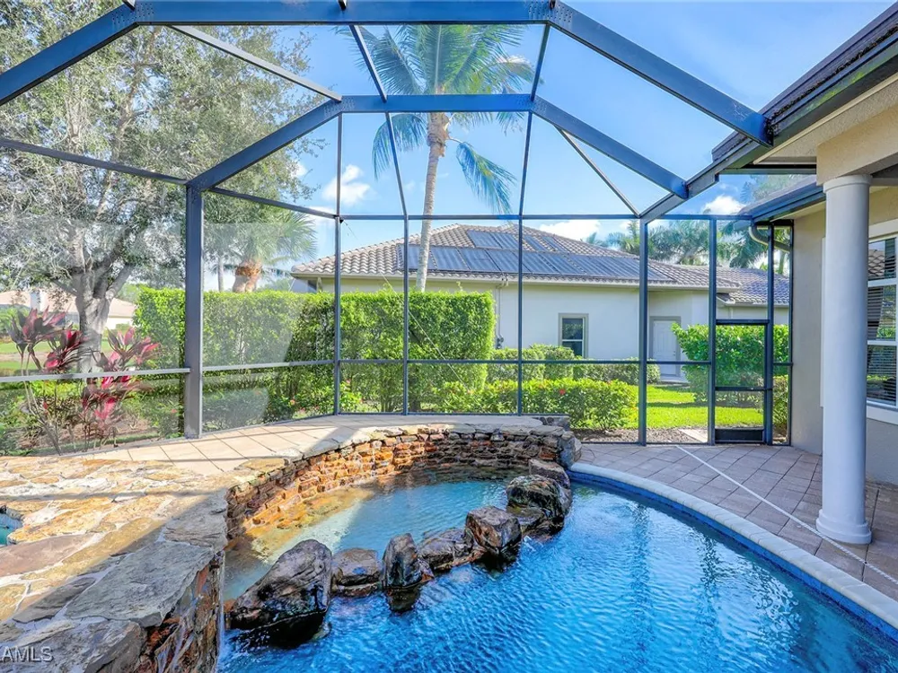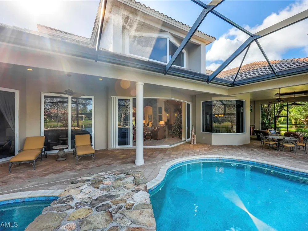 Uncover refined luxury in this exquisitely designed custom estate, crafted by Lundstrum Development Corporation. Situated within the prestigious guard-gated Classics Plantation Estates at Lely Resort, this breathtaking residence commands attention. Set on a generous corner lot with expansive lake frontage, it seamlessly blends sophistication with tranquil outdoor living. This architectural gem offers five bedrooms, a versatile den, four full bathrooms, and an expansive four-car garage. Elevated with premium upgrades, including granite countertops, elegant crown molding, a cozy gas fireplace, and a fully equipped outdoor kitchen. Retreat to your private sanctuary, featuring a gas-heated negative edge pool, a raised spa, and a picturesque bridge.The 23-foot volume ceilings add grandeur, while oversized walk-in closets and an outdoor balcony enhance the living experience. Enjoy IMMEDIATE ACCESS to the Players Club & Spa, renowned for its resort-style amenities. Embrace the lifestyle of Lely Resort, where three championship 18-hole golf courses await, ensuring a balance of leisure and recreation. This is more than a home, it's a sanctuary for those seeking the pinnacle of upscale living.