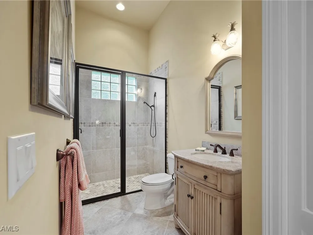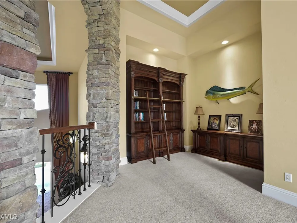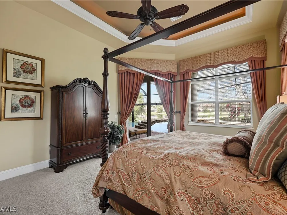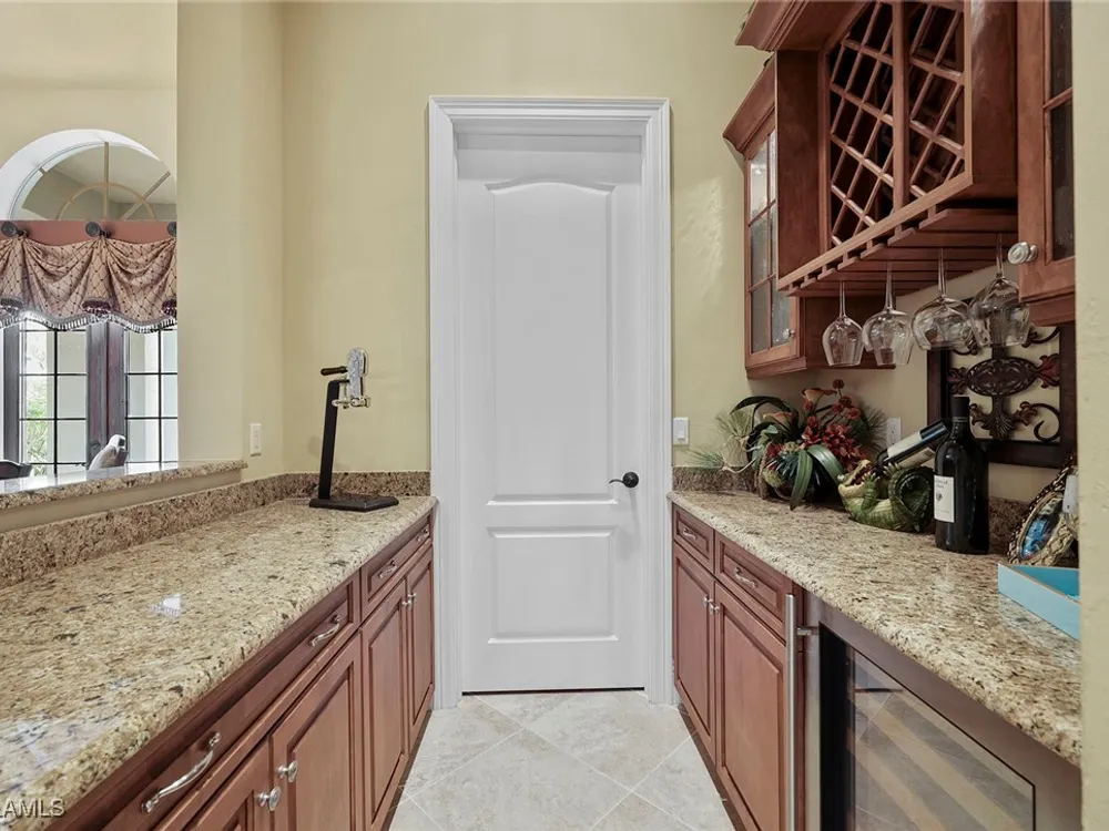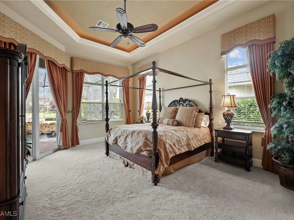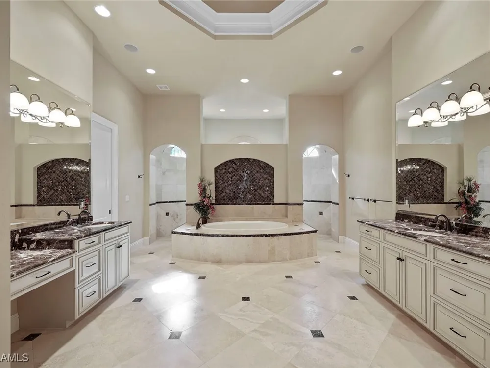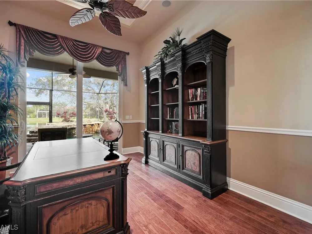 Uncover refined luxury in this exquisitely designed custom estate, crafted by Lundstrum Development Corporation. Situated within the prestigious guard-gated Classics Plantation Estates at Lely Resort, this breathtaking residence commands attention. Set on a generous corner lot with expansive lake frontage, it seamlessly blends sophistication with tranquil outdoor living. This architectural gem offers five bedrooms, a versatile den, four full bathrooms, and an expansive four-car garage. Elevated with premium upgrades, including granite countertops, elegant crown molding, a cozy gas fireplace, and a fully equipped outdoor kitchen. Retreat to your private sanctuary, featuring a gas-heated negative edge pool, a raised spa, and a picturesque bridge.The 23-foot volume ceilings add grandeur, while oversized walk-in closets and an outdoor balcony enhance the living experience. Enjoy IMMEDIATE ACCESS to the Players Club & Spa, renowned for its resort-style amenities. Embrace the lifestyle of Lely Resort, where three championship 18-hole golf courses await, ensuring a balance of leisure and recreation. This is more than a home, it's a sanctuary for those seeking the pinnacle of upscale living.
