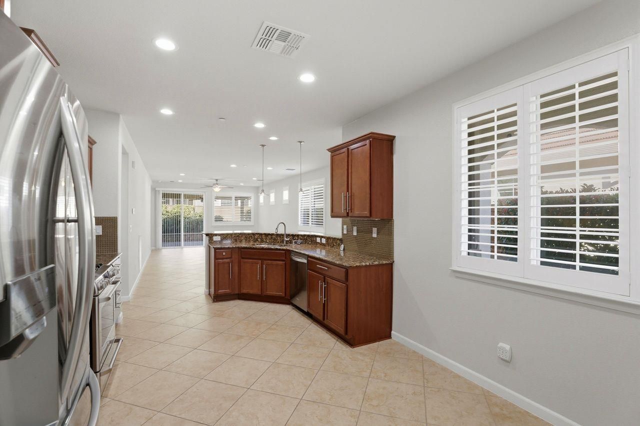 Welcome to effortless living in the highly desirable Del Webb Glenbrooke 55+ community of Elk Grove. This thoughtfully updated Randall model offers 1,371 square feet of bright, open living space with 2 bedrooms and 2 full bathrooms, including one with a convenient walk-in tub. Oversized tile flooring and abundant natural light create a warm and inviting atmosphere throughout. The well-appointed kitchen features granite countertops, stainless steel appliances, and a cozy dining nookperfect for everyday meals or entertaining guests. Step outside to your private backyard retreat, complete with low-maintenance landscaping, a mature citrus tree, and a peaceful patio ideal for relaxing or outdoor dining. Beyond your front door, enjoy resort-style amenities including a sparkling pool, clubhouse, fitness center, tennis courts, and the welcoming Arbour Lodgeoffering endless opportunities for socializing and staying active. Whether it's a morning stroll along tree-lined paths or an evening spent with neighbors, this home delivers the vibrant, carefree lifestyle you've been waiting for.