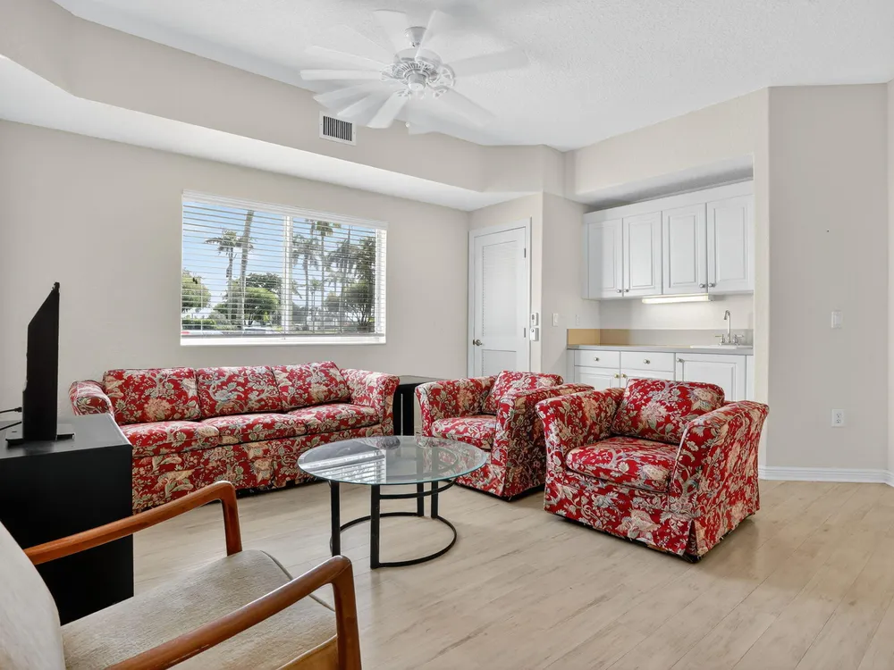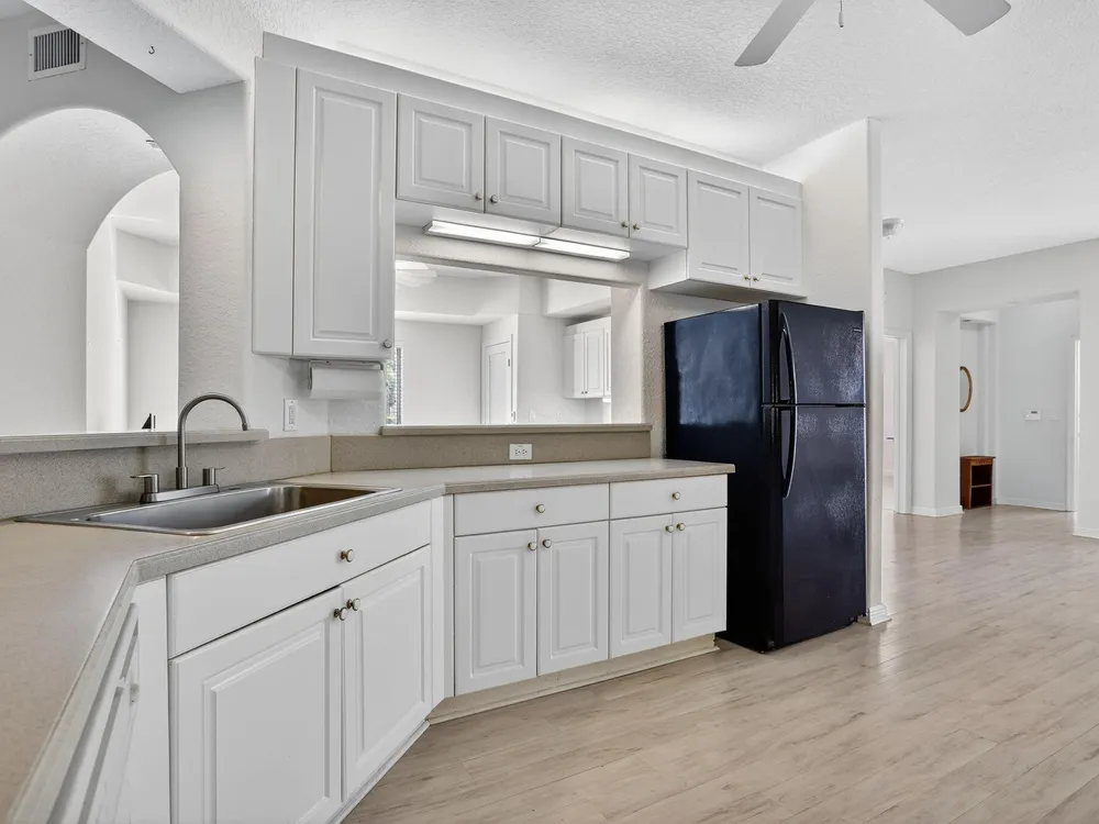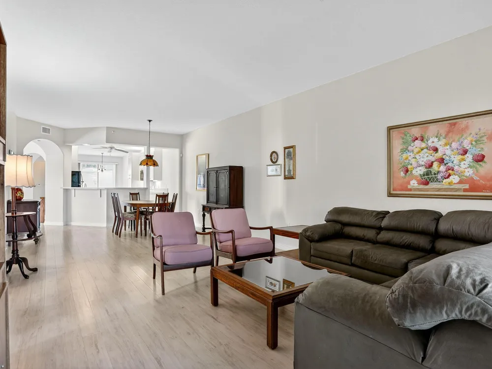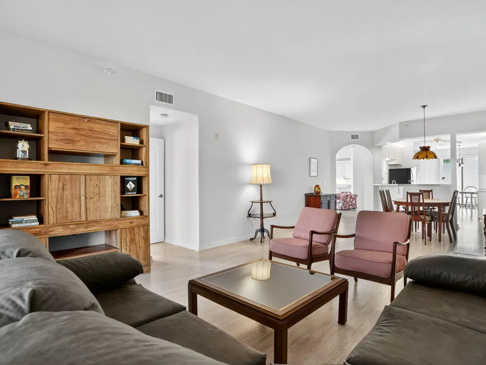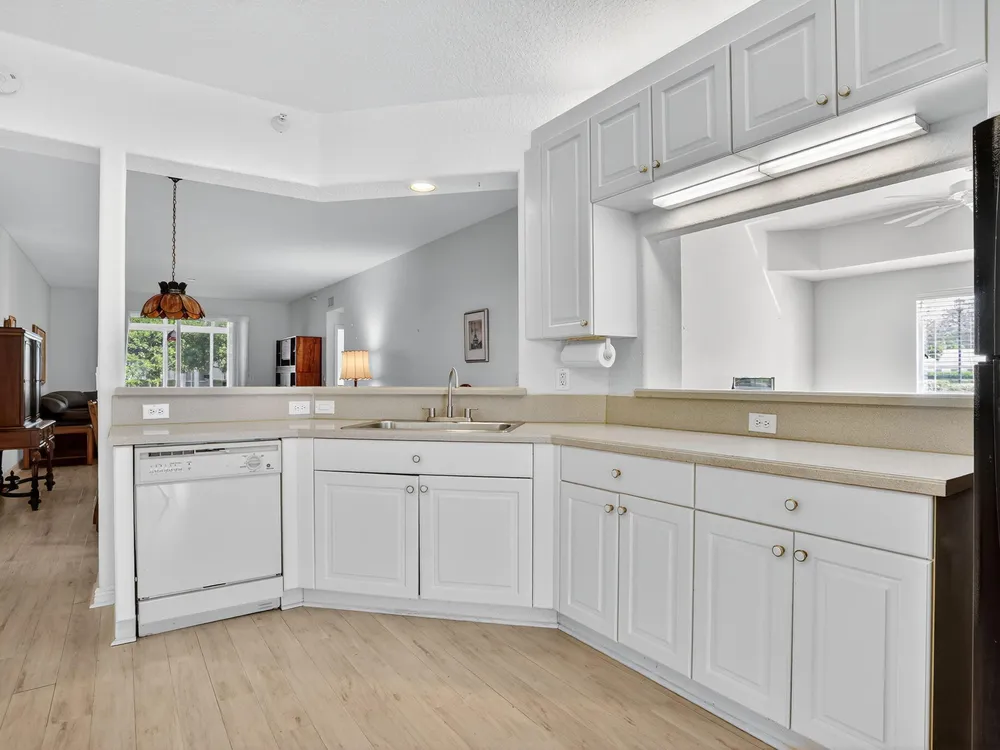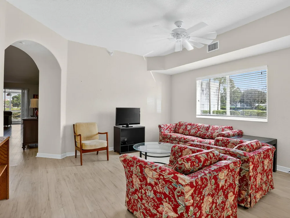 Rarely available ground-floor end unit with nearly 2,000 sq. ft. and stunning lake views! Bright, spacious layout with in-unit washer/dryer, open floor plan, and ample storage. Split floorplan perfect for hosting family while you have your own primary suite. Private garden patio. Move-in ready and can be sold furnished or unfurnished. All major inspections completed. Resort-style community with clubhouse, fitness center, heated pools, tennis, pickleball, shuffleboard, billiards, 60+ clubs, live entertainment, courtesy bus, 24-hour security, and guest parking. Pets allowed. Prime location near shopping, dining, and highways. Schedule your showing today!
