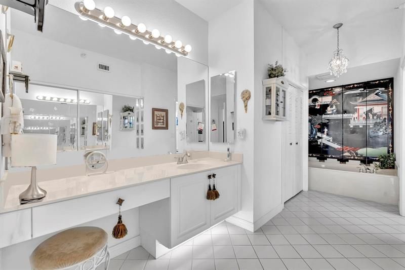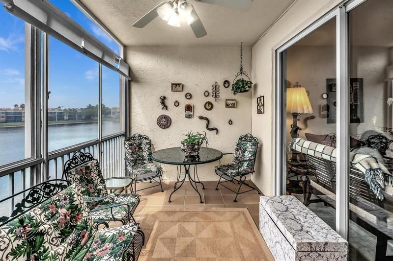 *Stunning Water View Corner Unit* 1986 sq. ft * This lovely home creates a fantastic and welcoming atmosphere with two bedrooms & two baths. The 2nd bedroom includes a Murphy bed for added convenience. There is a family room/den/formal dining room, which can also be used as a third bedroom. The kitchen features white cabinets & a custom island. Extra freezer. Tile flooring throughout the living area enhances the gorgeous open layout. The master bedroom boasts a spacious walk-in closet & a large soaking tub. Include a private laundry room & storage. Enjoy your front screened patio that greets you before getting to your front door & 2nd large balcony overlooking the water view, which is excellent for relaxing. Southampton is the only community that has a gym on the site. Guard at the gate.