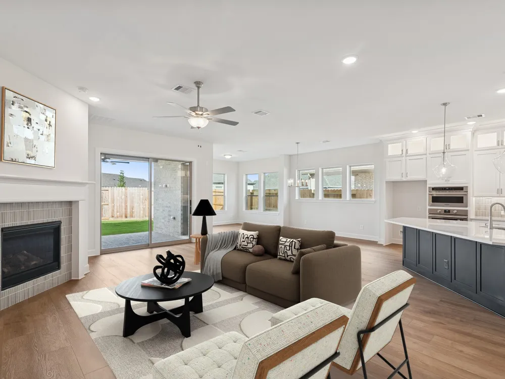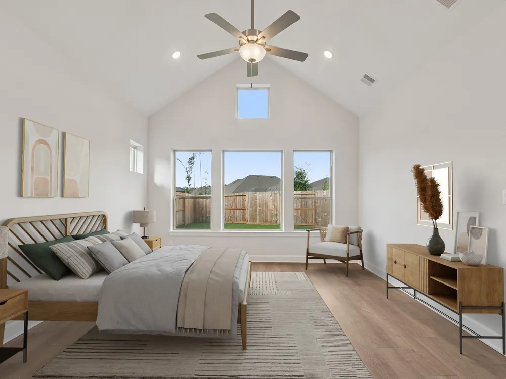 Experience the epitome of modern living in this meticulously crafted home. A contemporary kitchen, overflowing with storage, awaits your culinary inspiration. Find tranquility in your private study, perfectly tucked away for focused work. Generously sized guest bedrooms offer comfort and style for all. Retreat to your luxurious Owner's Retreat, boasting a walk-in shower and a deluxe walk-in closet. Unwind on your covered patio, overlooking an oversized yard, and bask in the sunlight that streams through energy-efficient windows, illuminating the expansive open-concept living space. With options like glass French doors, an extended covered porch, an 8' entry door, and a 3-car garage, personalize this dream home to reflect your unique vision. Environments for Living Diamond. Conditioned Attics.