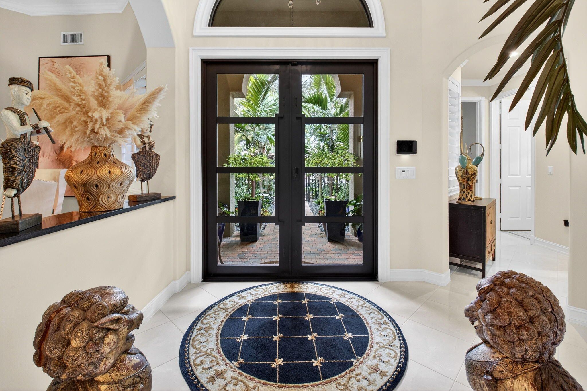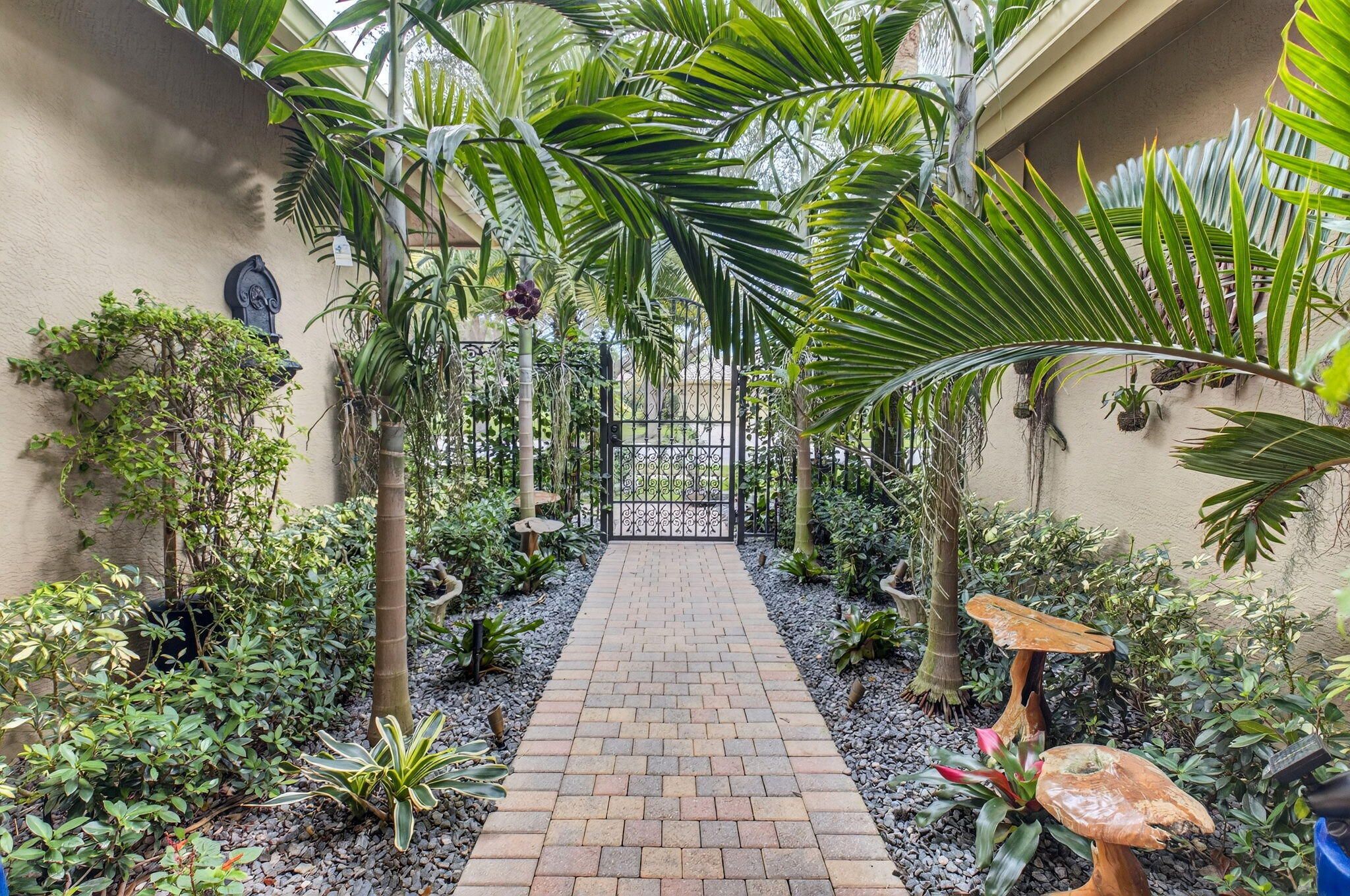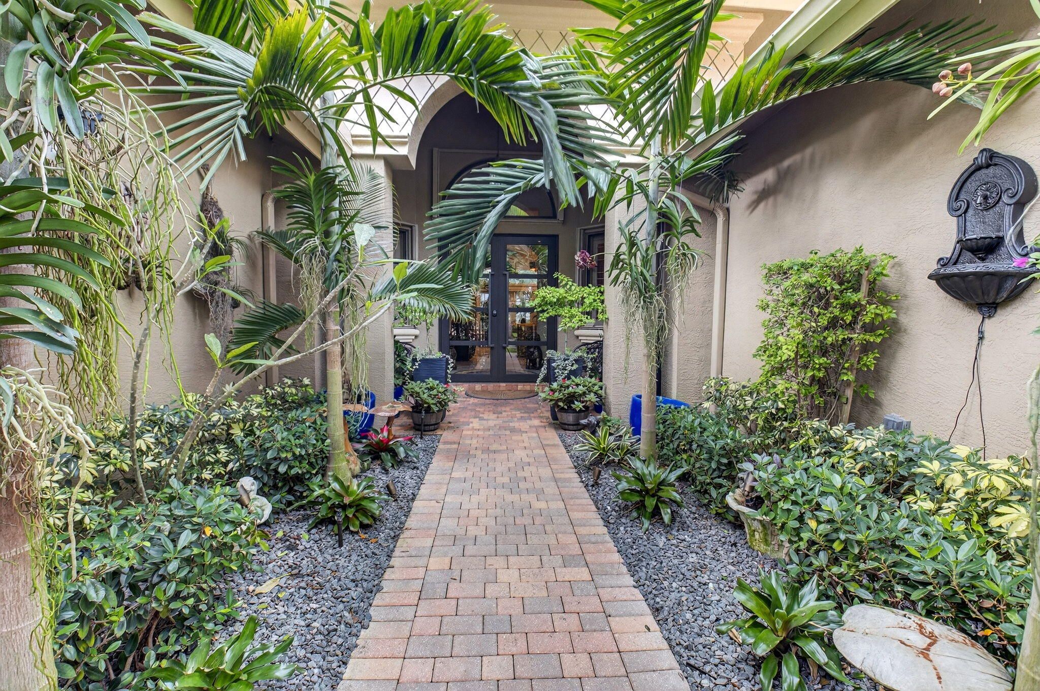 Experience a truly one-of-a-kind residence where exceptional craftsmanship and thoughtful upgrades are showcased in every room. No detail was overlooked and no expense spared in customizing this home for maximum comfort, functionality, and style. Surrounded by lush, professionally designed landscaping, the property offers striking curb appeal and an equally impressive interior. Step inside the private gated entry to discover soaring ceilings, elegant crown molding throughout, and a bright, open layout designed for both everyday living and gracious entertaining. Hurricane-impact doors and impact windows in the primary suite provide peace of mind, while a whole-house water treatment and filtration system enhances daily living. The chef's kitchen is a standout centerpiece and perfectly designed for culinary enthusiasts, featuring granite countertops, stainless-steel appliances, double oven, a large pantry, abundant cabinetry and drawers, a generous food-prep island, snack bar seating, and instant filtered hot water at the sink. The expansive primary suite is a private retreat, complete a large tray ceiling, custom-fitted dual closets, and a custom linen closet leading to a luxurious ensuite bath with dual sinks, granite vanity, Roman tub, and walk-in shower. A split floor plan provides privacy, with two spacious guest bedrooms and a beautifully appointed full guest bath with custom vanity. Designed for entertaining, the home offers a formal dining room, an elegant living room with accent fireplace, a comfortable family room, and a bonus entertainment area. An additional half bath and a well-equipped laundry room with top-of-the-line front-loading washer and dryer add convenience. The garage includes an additional refrigerator/freezer for extra storage. Step through the French doors to your private tropical oasis, where retractable awnings on both doorways allow for year-round enjoyment of the serene outdoor setting in sun or shade. This exceptional home offers countless additional upgrades and refined touches. It provides a rare opportunity to own a truly distinctive property. Tivoli Reserve is a scenic gated community with a guard on duty 24/7. The quarterly maintenance fees include lawn maintenance, power washing of the roofs, exterior painting of the homes, cable service and more! The Tivoli Club has an Activities Director to assist in planning a full array of activities. Resort-style heated swimming pool with sun deck and covered terrace, pickleball and four lighted Har-Tru tennis courts. Inside the complex is a top-of-the line fitness center with treadmills, recumbent bicycles, ellipticals, weight machines and free weights. There are two card rooms, a library, arts & crafts room, billiards, computer room with desktop computers for residents' use, media room, social room and gathering hall with a piano, bar and kitchen facilities. With an assortment of clubs (including a Pickleball club), you will never be bored! Close to I-95 and the Florida Turnpike, and just a short drive to fine restaurants, movie theaters and shopping.