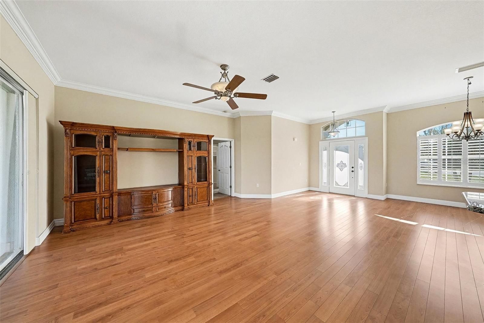 Wonderfully maintained home in The Groves community direct golf course lot on the 17th green! 3 bedrooms, 2 full bathrooms and an oversized 3 car garage highlight the open floorplan. Fantastic open kitchen with breakfast bar. Dinette features picturesque views of the golf course through a picture window. Laminate floors in the formal dining area and great room with pocketing triple sliding glass doors to the fantastic lanai to enjoy the bubbling pond feature with soothing waterfall. Master bedroom, also looking onto the golf course is large and airy, double large walk-in closets, double sinks, garden tub and separate shower. True split plan with 2 bedrooms and full bath on opposite side of the house from the master. Upgrades to the home include Corian counter tops, extra storage in laundry room with as 2 sky-lights, tile in baths and office, built-ins, crown molding, and more. Enjoy the Groves life style with golf, tennis, bocce, pickleball, dog park, community garden, large community center with restaurant, ball room, library/media center, fitness room, card and art room and pro shop. A short golf cart to the local shopping center with Publix, salon, restaurants, bank and more. Centrally located, Land O'Lakes is just north of Tampa making it very convenient to beaches, amusement parks and shopping with easy 30 minute access to Tampa and airport.