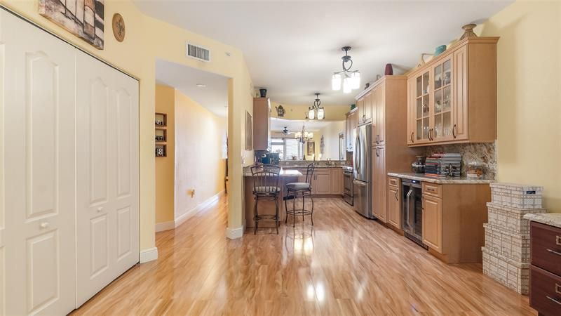 Welcome to luxury living in the heart of Tamarac's sought after 55 plus community. This stunning condo is located on the 4th floor, offering expansive lake views and serene South Florida sunsets right from your enclosed balcony. Step inside to discover soaring ceilings and a remolded interior featuring rich wood floors, a modern kitchen with thick granite countertops, a wine fridge, and stainless appliances-all curated with stylish high-end finishes. This home is immaculately clean and truly move-in ready with no updates needed. The spacious primary suite is a true retreat with a huge custom walk-in closet. Oversized bathroom featuring both a separate soaking tub and a glass-enclosed shower stall. Hurricane impact sliders. Some furniture included see attachments for list.