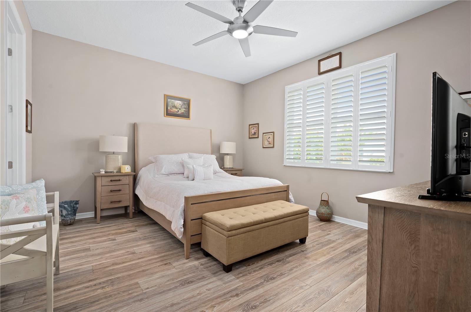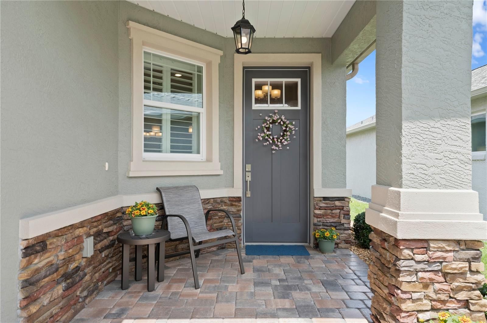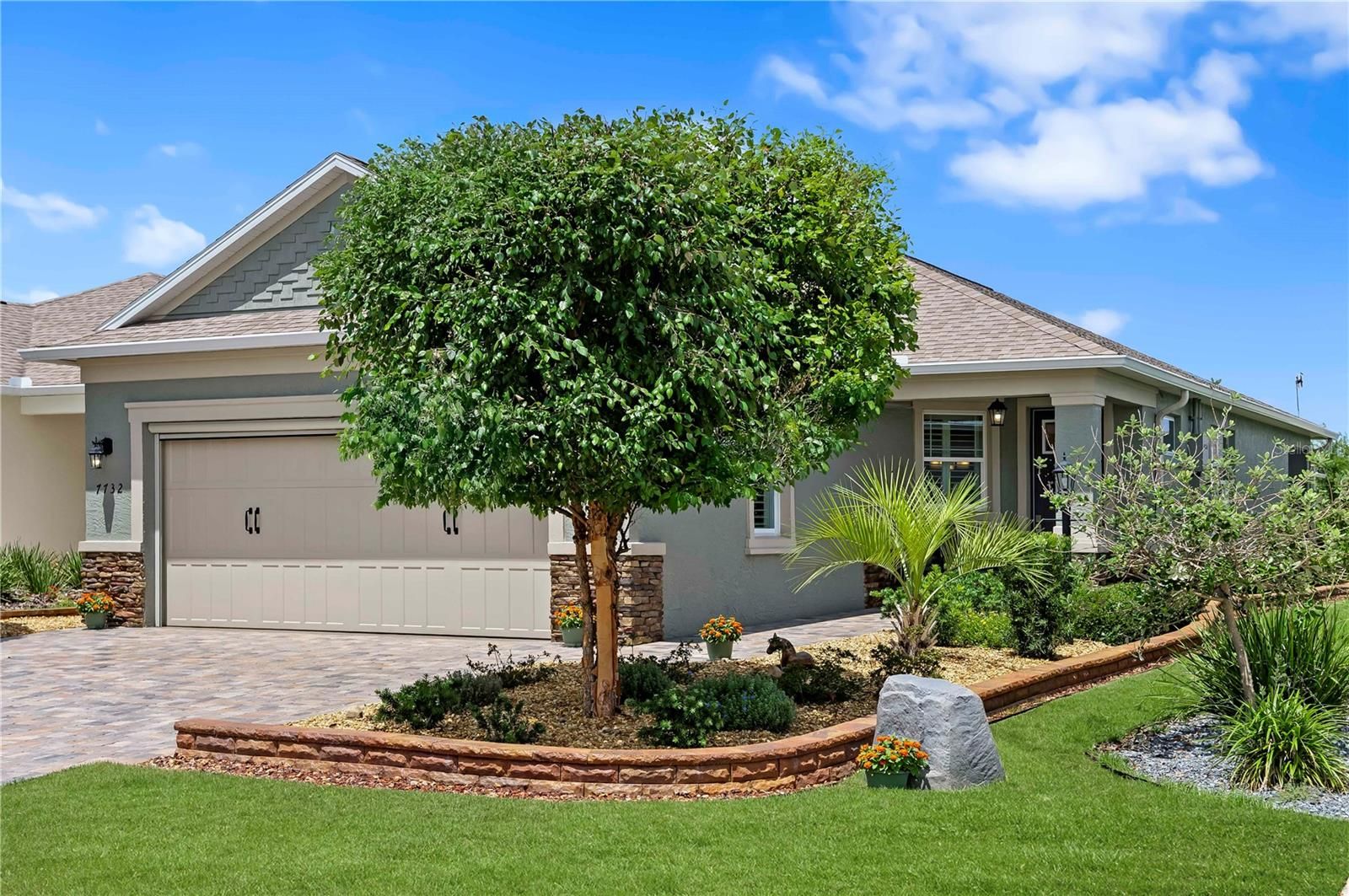 Welcome to your slice of paradise in the highly sought-after Weybourne Landing, located within the award-winning 55+ community of On Top of the World in Ocala, Florida. This 2021-built modern style cottage offers the perfect blend of charm, comfort, and convenience—just a short stroll to the brand-new state-of-the-art recreation center, sparkling pool, The Circle Square Cultural Center, and The Ranch. Thoughtfully designed with over 2,000 square feet of total space, this two-bedroom, two-bathroom home boasts 1,345 square feet of interior living, an expansive 142 square foot covered lanai, a 643 square foot wraparound porch, and a 489 square foot two-car garage with epoxy floors, shelving, and a motorized screen enclosure. From the moment you arrive, you're greeted by a beautifully landscaped yard featuring paver driveway and walkways, a stacked wall, river rock accents, and a soothing fountain that sets the tone for tranquility. Inside, the home is bright and stylish with 8-foot doors, plantation shutters, and vinyl plank flooring throughoutmaking maintenance a breeze so you can focus on the active lifestyle this community is known for. The kitchen is a showstopper with quartz countertops, glass tile backsplash, stainless steel appliances, under-cabinet lighting, and even a glass china cabinet. The primary suite is a peaceful retreat, featuring a porcelain-tiled walk-in shower with bench and niche, comfort-height quartz vanity, and large walk-in closet. The second bathroom is equally stylish with tile and a glass sliding door shower. Additional highlights include tray ceilings, ceiling fans with lights in every room, laundry room with built-in cabinets, recessed lighting throughout, and a Generac whole-home generator for peace of mind. Even more perks include a pull-down attic with wood flooring for storage, a premium ecosystem water softener, and it is a "smart" home, making this home as functional as it is beautiful. Additional upgrades include but are not limited to: Lennox AC Pure Air System with UV light and Charcoal Filter with additional GFCI Outlet, Garage Utility Sinj and Easy Clean non scatch composite Kitchen Sink. Living in On Top of the World means enjoying access to multiple resort-style pools, three golf courses, fitness centers, walking and biking trails, pickleball and tennis courts, a dog park, dozens of clubs and social events, craft rooms, an on-site restaurant, and so much more. This is a golf cart-friendly, gated community designed for both relaxation and recreation. This home offers low-maintenance living in a vibrant community with everything you need at your fingertips. Schedule your private showing today and start living your best life at On Top of the World.
