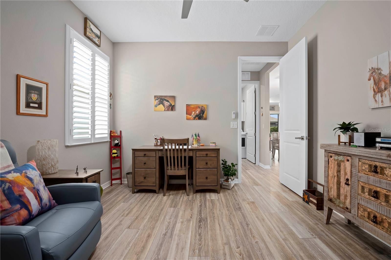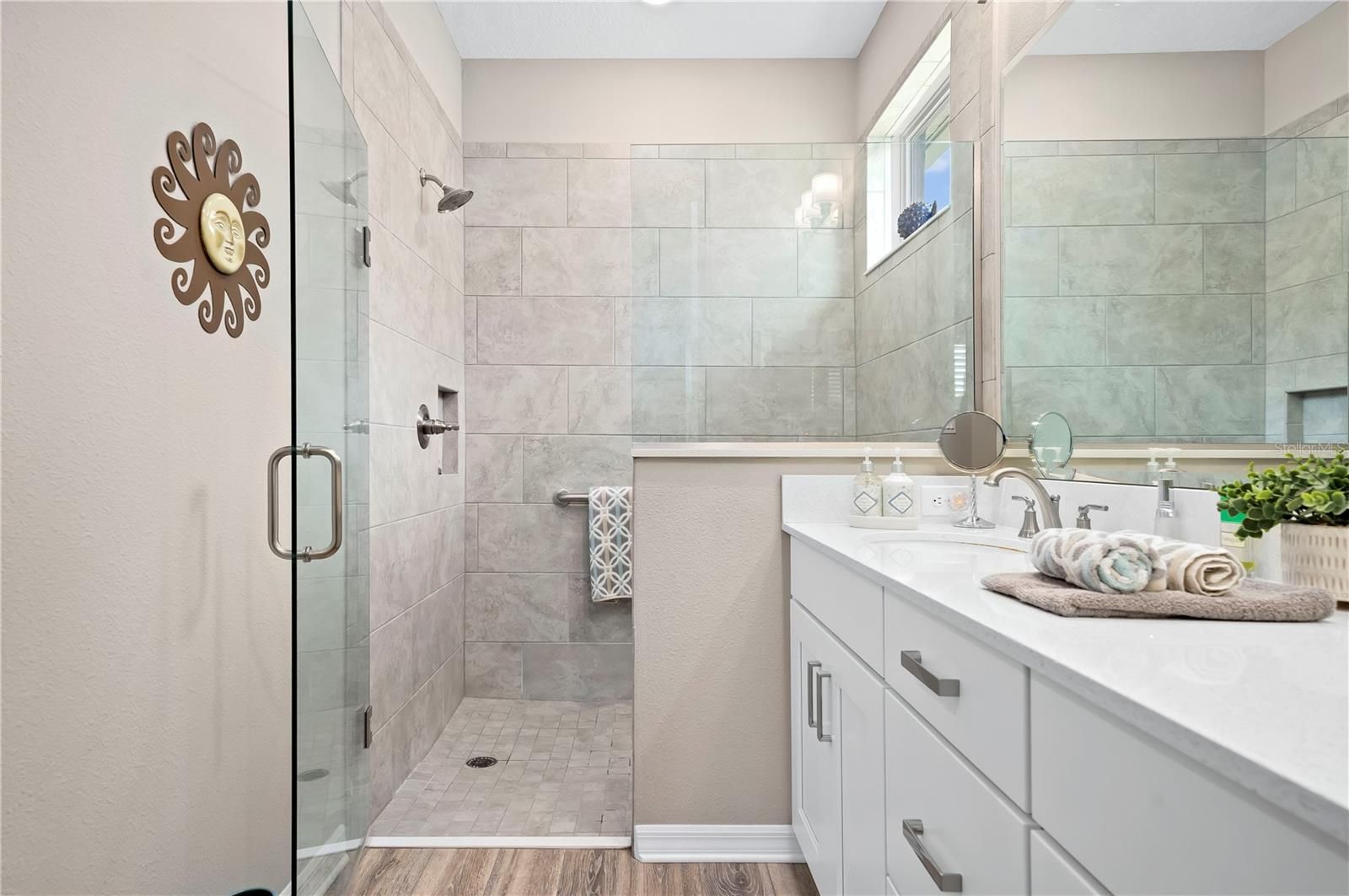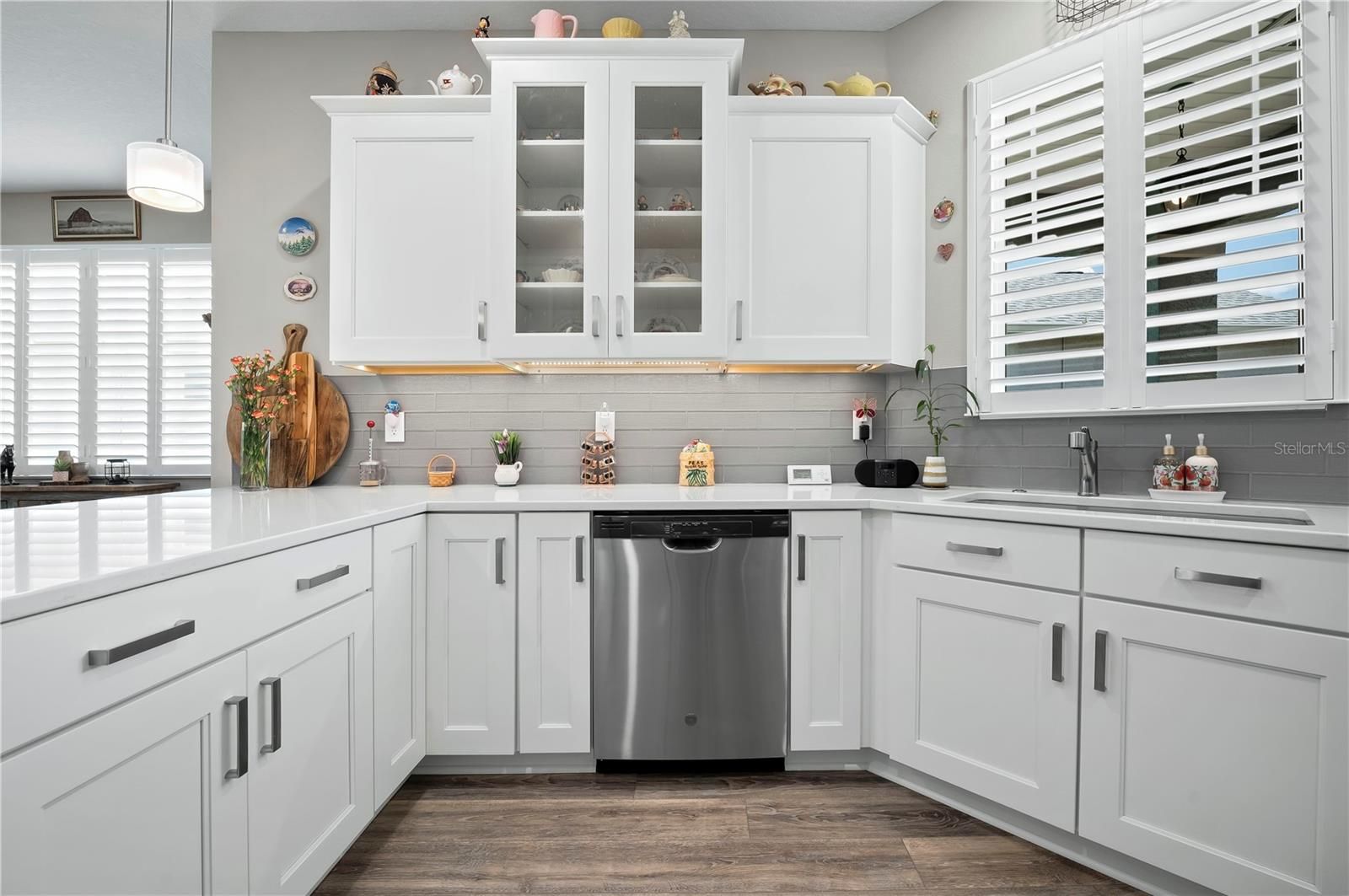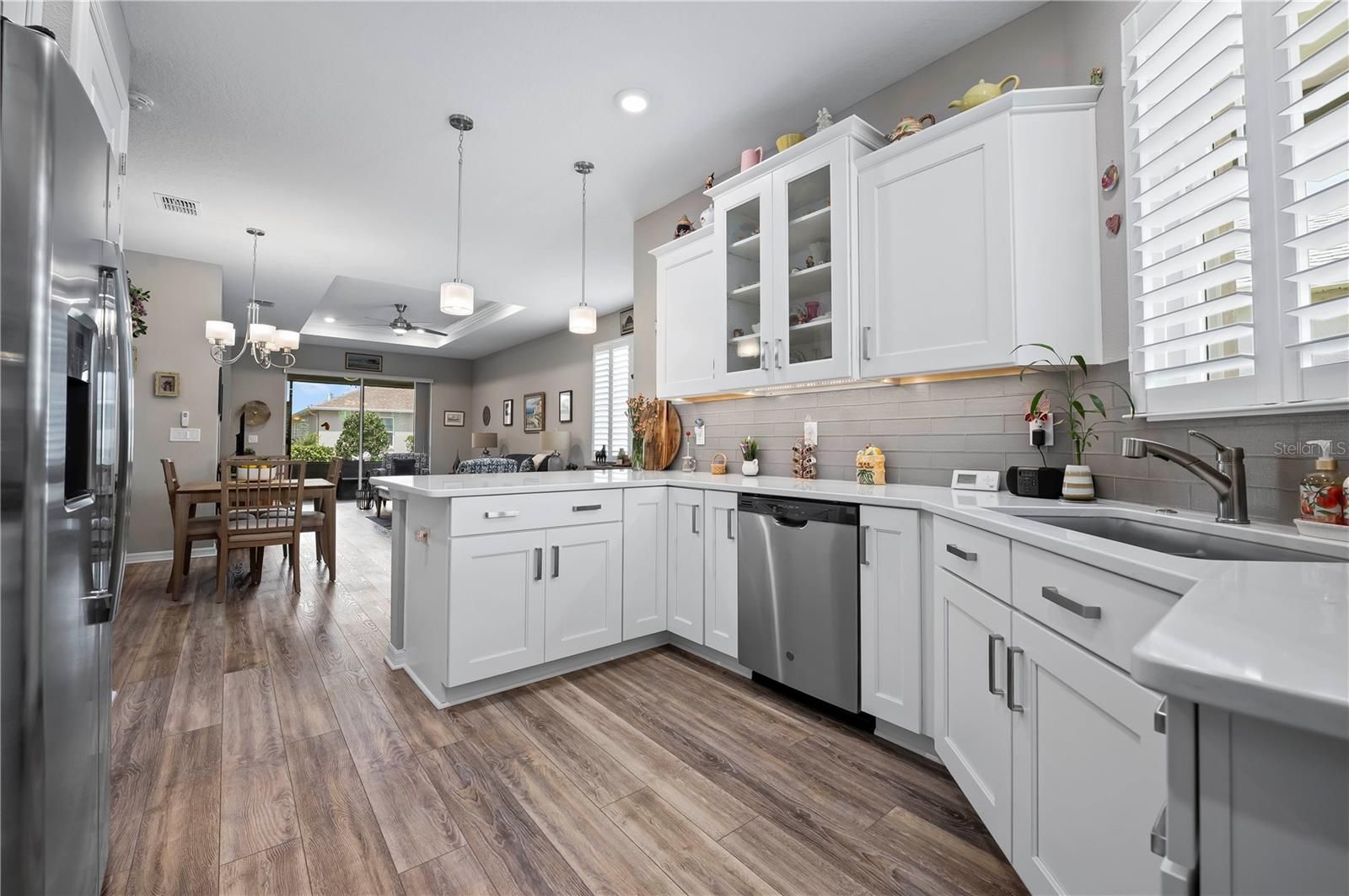 Welcome to your slice of paradise in the highly sought-after Weybourne Landing, located within the award-winning 55+ community of On Top of the World in Ocala, Florida. This 2021-built modern style cottage offers the perfect blend of charm, comfort, and convenience—just a short stroll to the brand-new state-of-the-art recreation center, sparkling pool, The Circle Square Cultural Center, and The Ranch. Thoughtfully designed with over 2,000 square feet of total space, this two-bedroom, two-bathroom home boasts 1,345 square feet of interior living, an expansive 142 square foot covered lanai, a 643 square foot wraparound porch, and a 489 square foot two-car garage with epoxy floors, shelving, and a motorized screen enclosure. From the moment you arrive, you're greeted by a beautifully landscaped yard featuring paver driveway and walkways, a stacked wall, river rock accents, and a soothing fountain that sets the tone for tranquility. Inside, the home is bright and stylish with 8-foot doors, plantation shutters, and vinyl plank flooring throughoutmaking maintenance a breeze so you can focus on the active lifestyle this community is known for. The kitchen is a showstopper with quartz countertops, glass tile backsplash, stainless steel appliances, under-cabinet lighting, and even a glass china cabinet. The primary suite is a peaceful retreat, featuring a porcelain-tiled walk-in shower with bench and niche, comfort-height quartz vanity, and large walk-in closet. The second bathroom is equally stylish with tile and a glass sliding door shower. Additional highlights include tray ceilings, ceiling fans with lights in every room, laundry room with built-in cabinets, recessed lighting throughout, and a Generac whole-home generator for peace of mind. Even more perks include a pull-down attic with wood flooring for storage, a premium ecosystem water softener, and it is a "smart" home, making this home as functional as it is beautiful. Additional upgrades include but are not limited to: Lennox AC Pure Air System with UV light and Charcoal Filter with additional GFCI Outlet, Garage Utility Sinj and Easy Clean non scatch composite Kitchen Sink. Living in On Top of the World means enjoying access to multiple resort-style pools, three golf courses, fitness centers, walking and biking trails, pickleball and tennis courts, a dog park, dozens of clubs and social events, craft rooms, an on-site restaurant, and so much more. This is a golf cart-friendly, gated community designed for both relaxation and recreation. This home offers low-maintenance living in a vibrant community with everything you need at your fingertips. Schedule your private showing today and start living your best life at On Top of the World.
