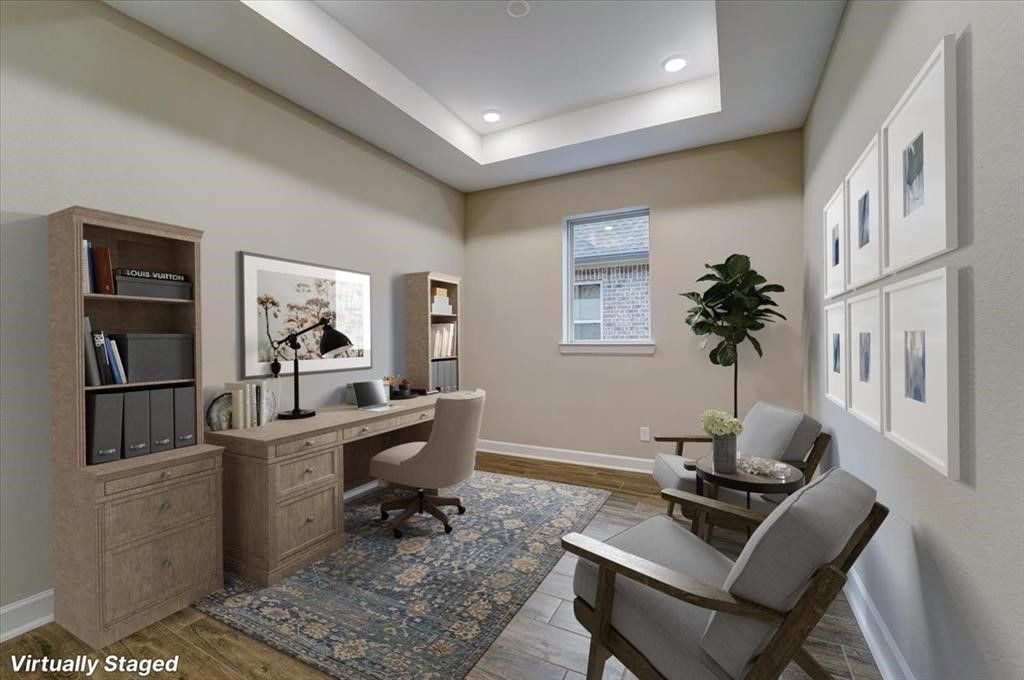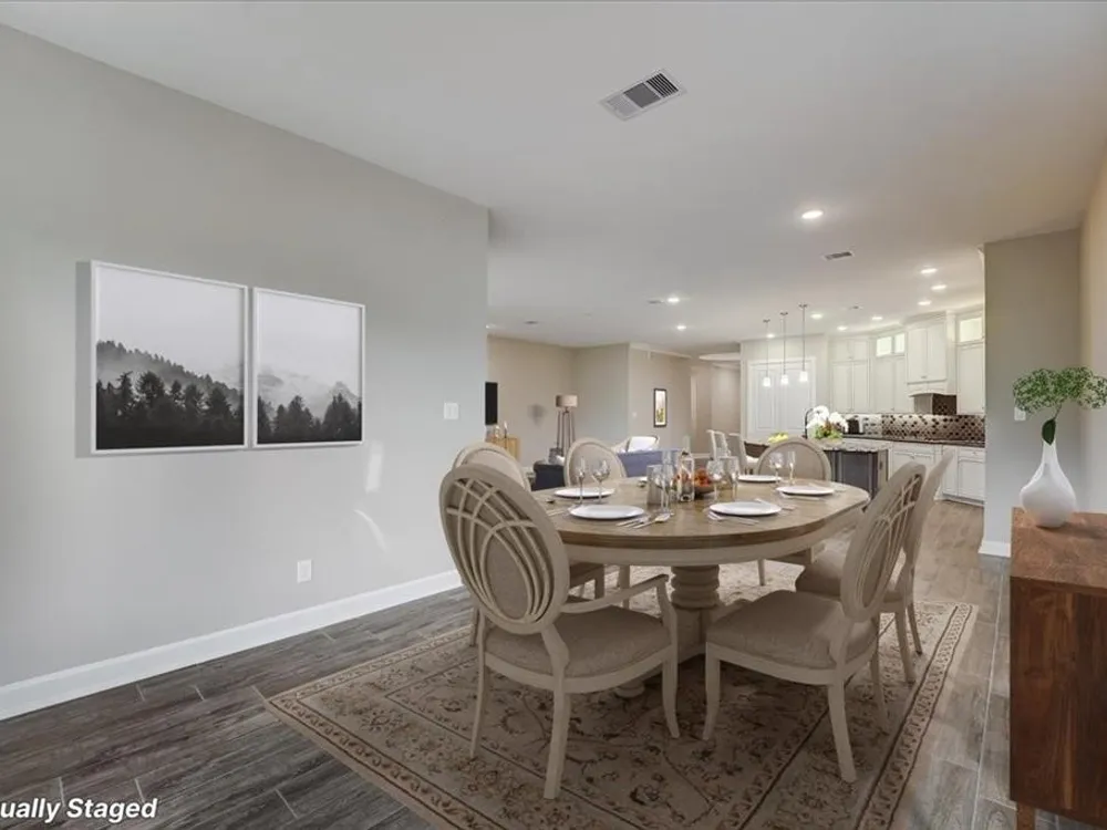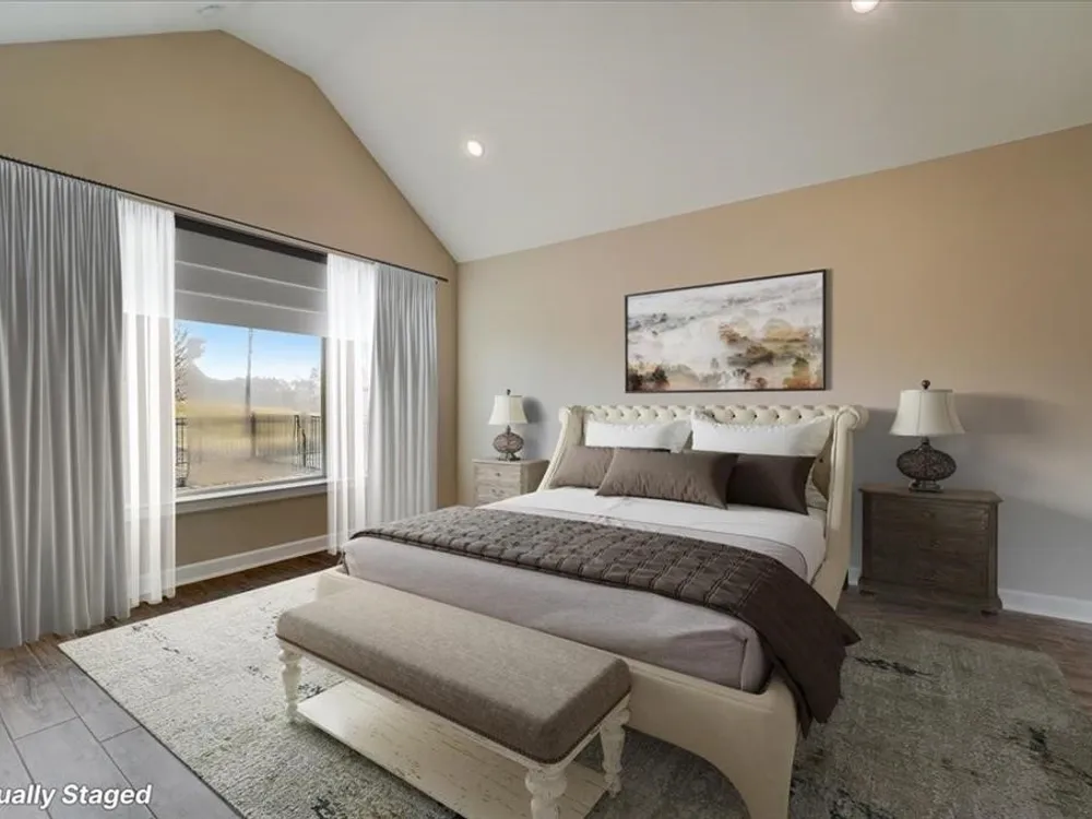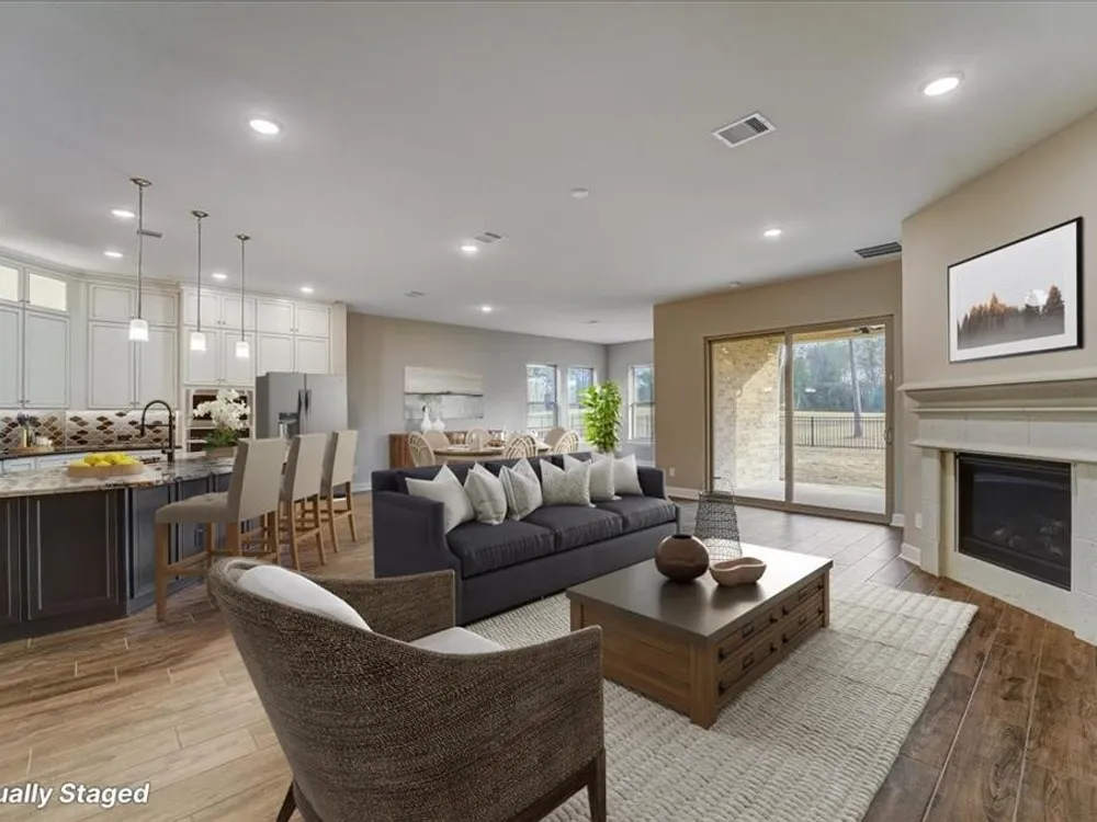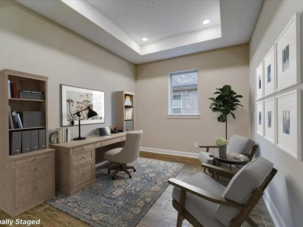 Experience the epitome of modern living in this meticulously crafted home. A contemporary kitchen, overflowing with storage, awaits your culinary inspiration. Find tranquility in your private study, perfectly tucked away for focused work. Generously sized guest bedrooms offer comfort and style for all. Retreat to your luxurious Owner's Retreat, boasting a walk-in shower and a deluxe walk-in closet. Unwind on your covered patio, overlooking an oversized yard, and bask in the sunlight that streams through energy-efficient windows, illuminating the expansive open-concept living space. With options like glass French doors, an extended covered porch, an 8' entry door, and a 3-car garage, personalize this dream home to reflect your unique vision. Environments for Living Diamond level, Conditioned attics.