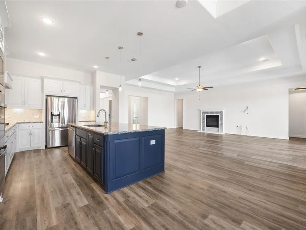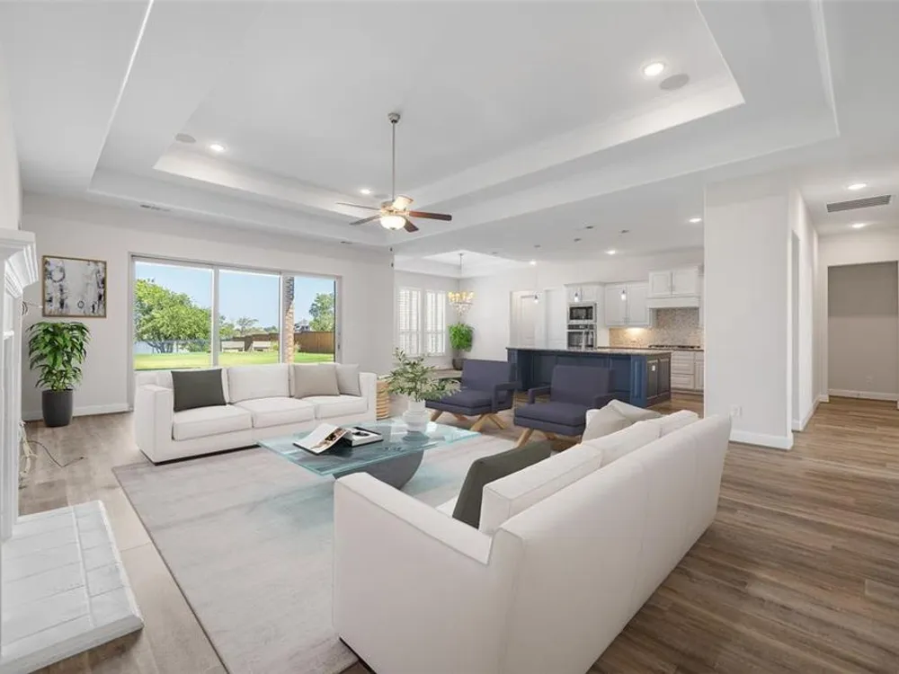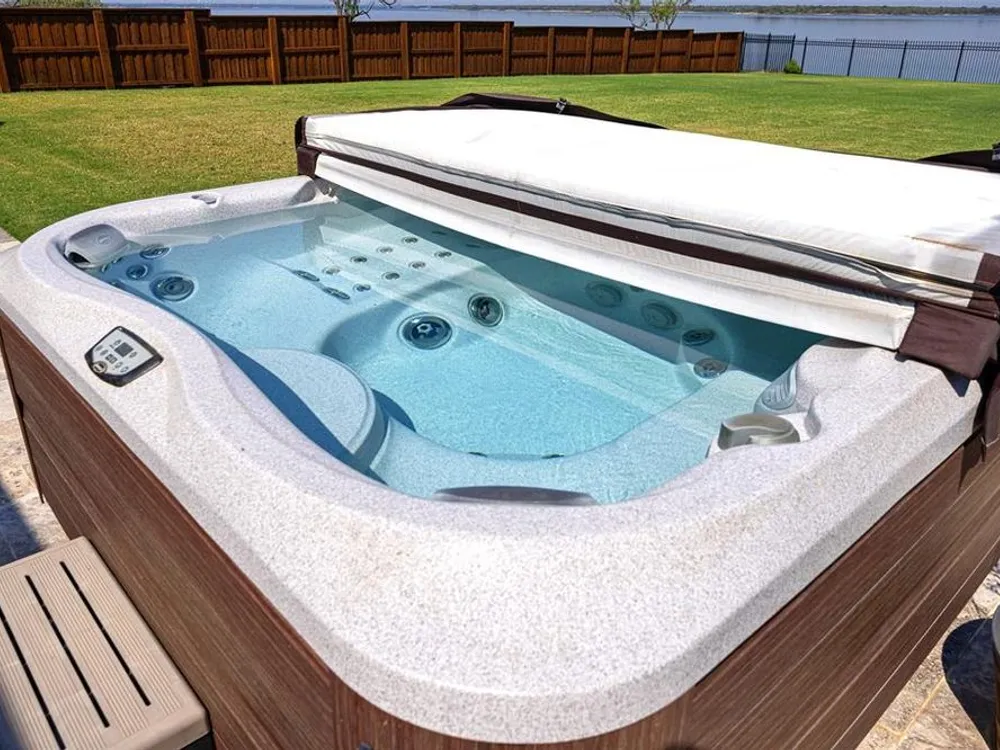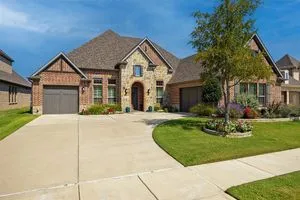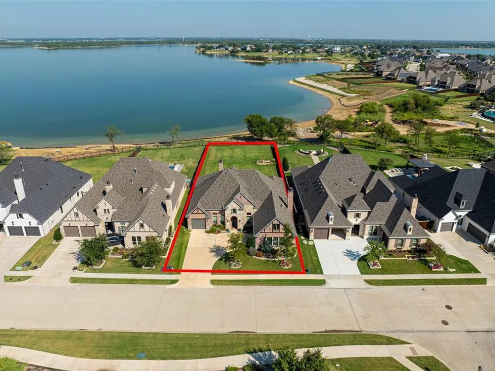 Rare opportunity to own a true lakeside retreat in Waterford Point at The Tribute! This stunning one-story home sits on a .436-acre lot with an unobstructed view of Lake Lewisville and beautifully landscaped grounds. The backyard is perfect for entertaining with a huge covered patio featuring a fireplace and hot tub, all overlooking the lake. Inside, the open-concept design offers a spacious living room with tray ceilings, fireplace, and breathtaking views that flow seamlessly into the chef-inspired kitchen. The kitchen is equipped with Monogram appliances including a double oven, gas cooktop, refrigerator, large island with seating and sink, white cabinetry, decorative backsplash, granite countertops, and a walk-in pantry. The primary suite boasts a bay window sitting area, spa-like bath with dual vanities, jetted tub, oversized shower, and a custom closet. Two secondary bedrooms each have private baths, plus a formal dining room, office, and oversized laundry room with sink and space for a second refrigerator. The mudroom, epoxy-coated garage with EV charger, and abundant storage add everyday convenience. Plantation shutters and luxury vinyl flooring throughout elevate the home’s style. As part of The Tribute’s award-winning community, enjoy two resort-style pools, a children’s splash park, miles of scenic trails, a fitness center, clubhouse, and more. A vibrant new marina and lakeside park are underway and set to open Summer 2026. Ideally located near FM 423, TX-121, and the Dallas North Tollway, you’ll have quick access to Frisco, Plano, Dallas, shopping, dining, and top-rated schools. This is lakeside living at its finest—your retreat awaits!