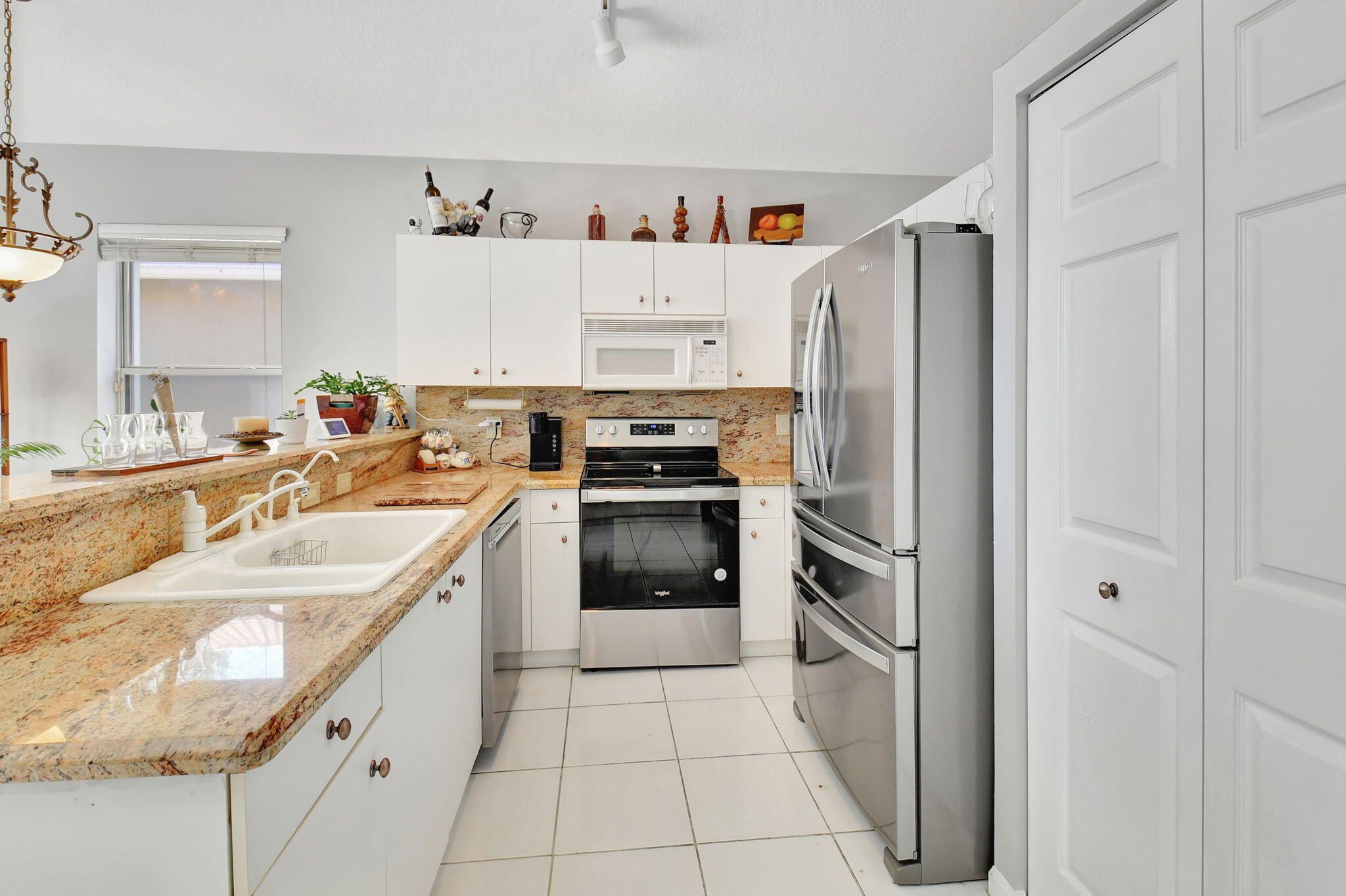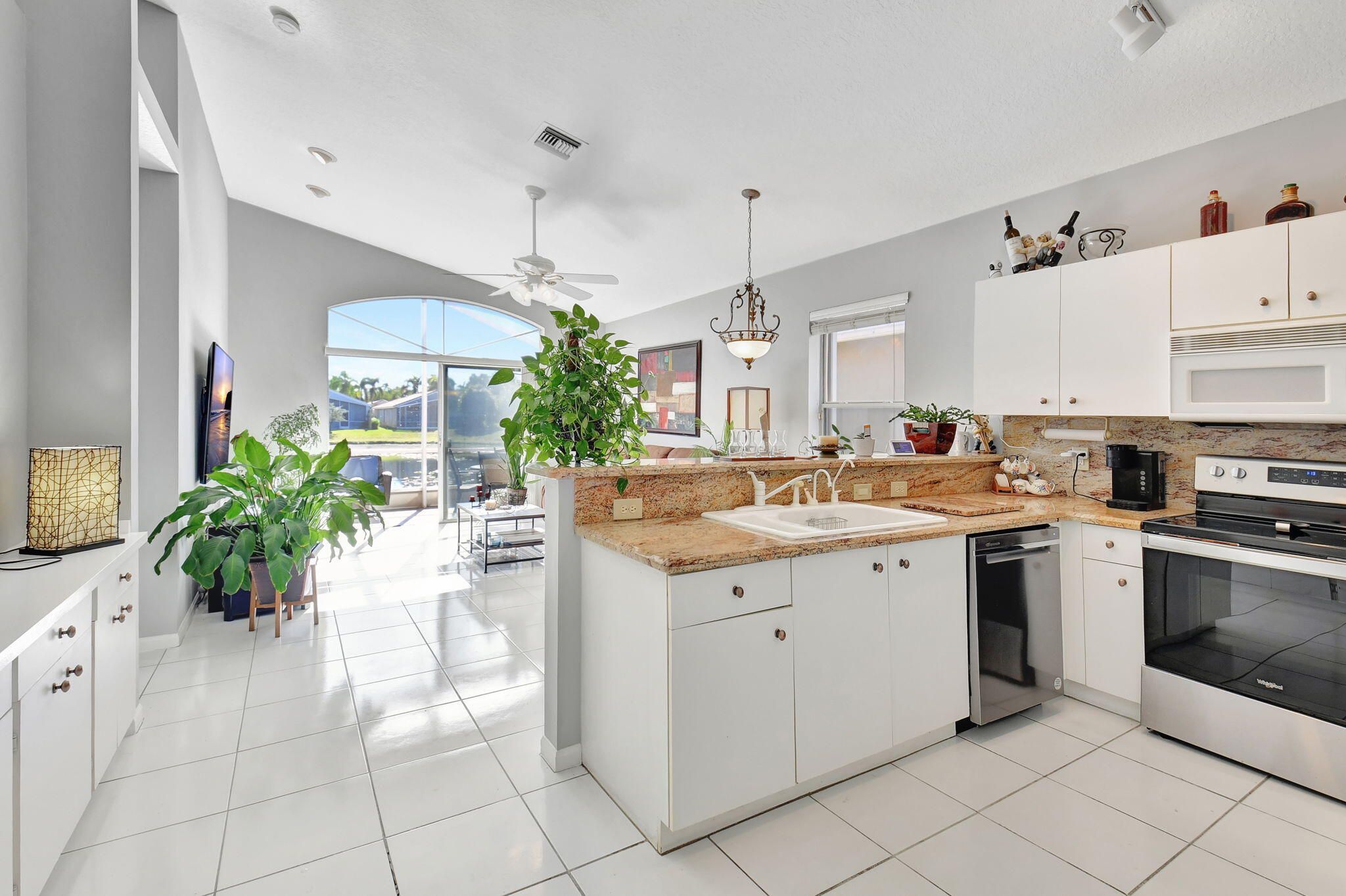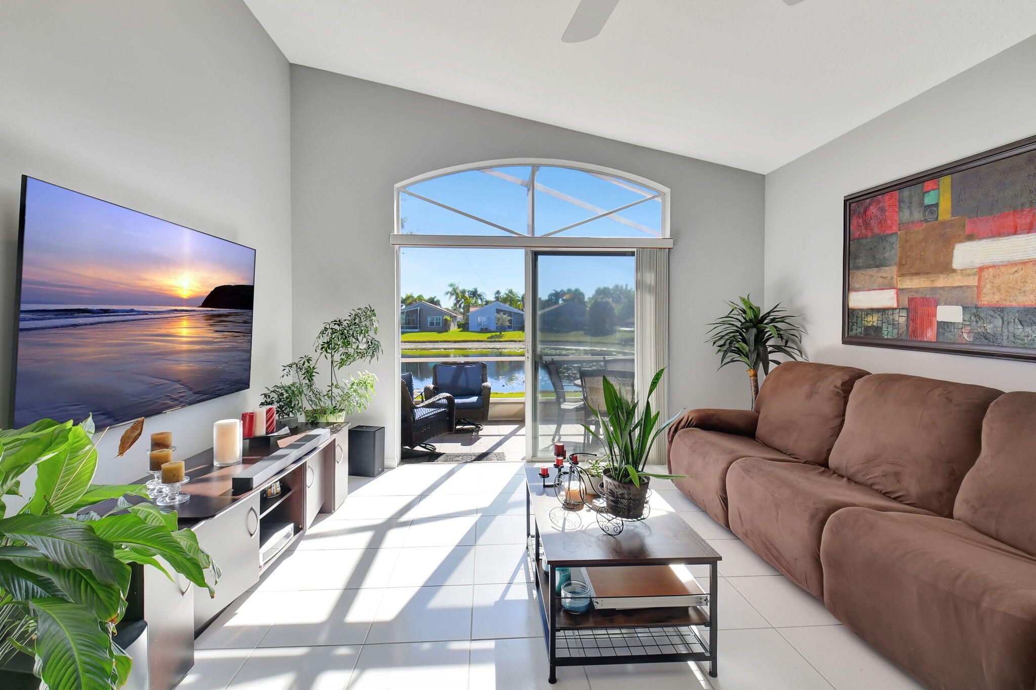 Every day feels like a vacation at The Grove, a community with a 24/7 guard gate and a stunning clubhouse. This two-bedroom home, with den/office and two-car garage, offers exceptional value. Enjoy beautiful lake views from your screened patio. The open floor plan, high ceilings, accordion hurricane shutters, new appliances, tile floors, and fresh paint create an inviting space. With low monthly maintenance fees, friendly neighbors, and a convenient location near shopping, medical facilities, and cultural venues, this home has so much to offer. Hot water heater (2021), A/C (2010), and roof (2009). This is a short sale subject to third party approval.