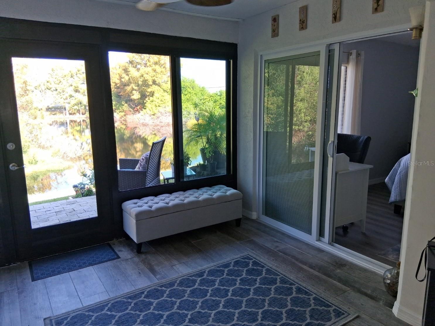 WOW! Totally updated, impeccably maintained SINGLE STORY 55+ condo at Country Oaks with beautiful pond and nature views right outside your back door, and no rear neighbors! The front entrance is through a large, friendly, courtyard. The custom kitchen and bathrooms have been completely remodeled with hardwood cabinetry, soft-close pull-out drawers and doors, granite counter tops, modern appliances and fixtures. The floors in the living room, dining area, kitchen and enclosed Florida room all have wood-look ceramic tile floors, and the bedrooms have luxury vinyl floors. The master bedroom closet has been smartly fitted with a closet organizer and the master bath has a walk-in shower. Nothing has been overlooked in this beautiful condo. There’s even instant hot water thanks to the tankless water heater and the kitchen is fitted with convenient, stylish, stacked laundry machines. The monthly condo fee includes water and sewer utilities, trash service, exterior maintenance & grounds, upgraded cable television, internet service and community pool. You also get use of the recreational facilities at Lakeside Woodlands for a very small annual fee. Country Oaks is one of the few condos in the area which allows cats and small dogs! if you don't like all the traffic and commotion of the larger complexes, Country Oaks would be ideal for you! AND The location is very convenient to HCA Florida Bayonet Point Hospital and other medical facilities, the Hudson Library, Hudson Beach, churches, shopping, restaurants, music venues, etc. Seller is prepared to close and move quickly if needed.
