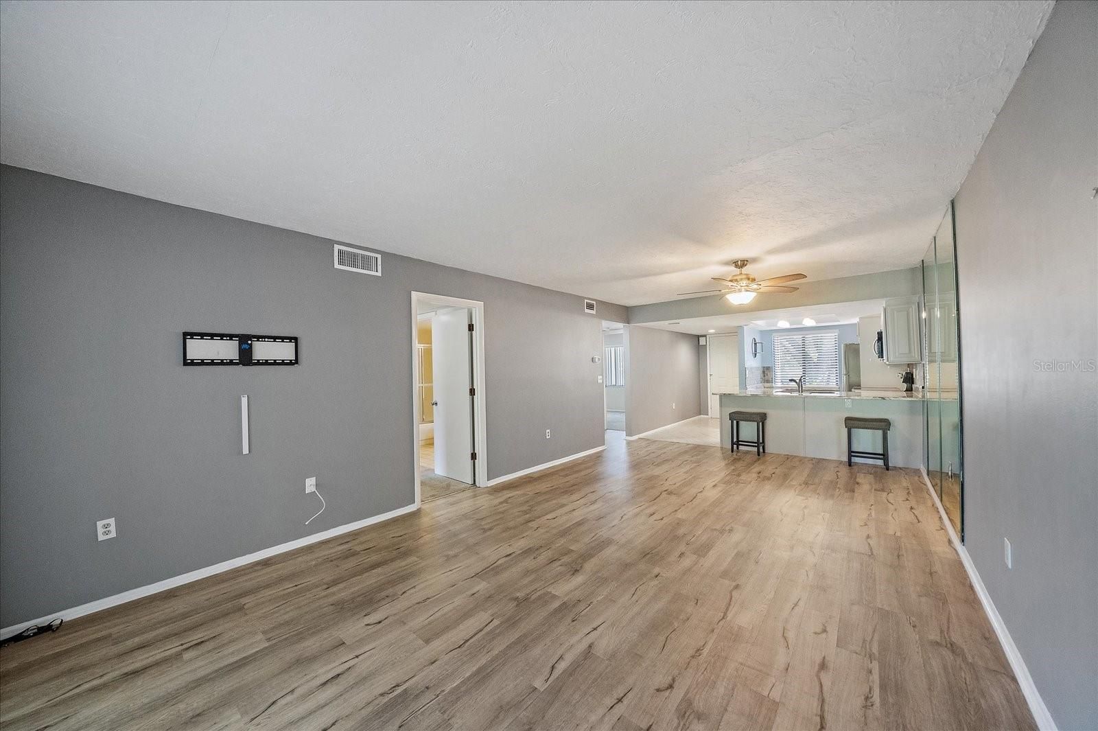 - Ceiling Fan(s), Living/Dining Room, Main Level Primary, Solid Surface Counters, Solid-Wood Cabinets, Split Bedrooms, Thermostat, Walk-In Closet(s), Window Treatments