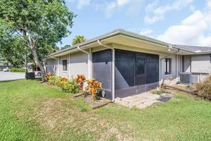 Maintenance-Free Living in Country Oaks 55+! Discover the perfect blend of comfort and convenience in this spacious ground-floor END UNIT villa located in the sought-after 55+ community of Country Oaks. Offering 2 bedrooms, 2 baths, and over 1,200 sq. ft. of bright, open living space, this home is designed for easy living. Enjoy morning coffee or evening relaxation in the enclosed lanai, with direct access from the primary suite featuring a walk-in closet and private sliding doors. A carport with reserved, assigned parking is just steps from your front door for added ease. Best of all, the HOA takes care of nearly everything—including water, sewer, trash, cable, internet, lawn care, exterior maintenance (with a new roof already in place), pest control, landscaping, and access to the sparkling community pool. All that’s left to do is move in and enjoy the carefree lifestyle you deserve! Perfectly located near shopping, dining, entertainment, beaches, and major highways. Hospital and medical facilities are also right across the street. Live the vibrant Florida lifestyle in Country Oaks—where every day feels like vacation!
