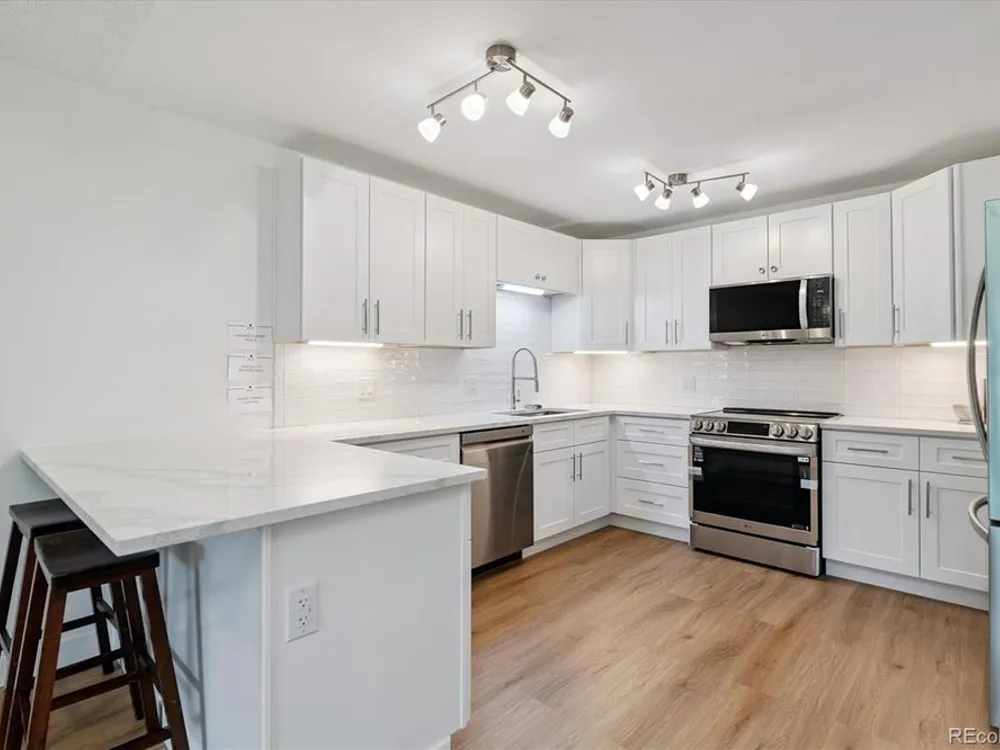 Experience Exceptional Living in Windsor Gardens! Welcome to your dream condo — beautifully remodeled, thoughtfully designed, and ready to move right in. With not one, but two deeded parking spaces (Garage #3 and Space #88), located just steps from the building entrance, convenience begins the moment you arrive. This first-floor walk-out unit makes everyday living even easier, offering 1,200 sq. ft. of comfort and style with 2 bedrooms, 2 bathrooms, and an enclosed lanai overlooking the peaceful courtyard. The custom kitchen features quartz countertops, soft-close cabinetry with undercabinet lighting, a stainless undermount sink with bottle washer, and a full suite of brand-new LG appliances — including an air-fry oven, 3rd-rack dishwasher, ice-and-water refrigerator, and microwave. The elegance continues throughout with luxury Coretec flooring and fully renovated bathrooms complete with Kohler fixtures, modern lighting on dimmers, and even a private washer in the primary bath. With three A/C units, ceiling fans, and abundant natural light, your comfort is always within reach. Extra touches like built-in cabinets in the storage room add function to style. And just outside, the Highline Canal trail invites you to walk, bike, or simply enjoy the fresh air steps from your door. Living here means more than just a home — it’s a lifestyle. Your HOA covers property taxes, heat, water, sewer, trash, and recycling. Amenities abound: indoor and outdoor pools, fitness center with sauna and hot tub, golf course, restaurant with special events, workshop, community garden, art and sewing rooms, billiards, social clubs, and more. Plus, with secure entry, 24-hour community response, and pet-friendly policies, you’ll feel safe, connected, and truly at home. This is active 55+ living at its finest — a beautifully updated condo in a welcoming community where friendships, activities, and comfort come together. Schedule a tour and submit your offer today!
