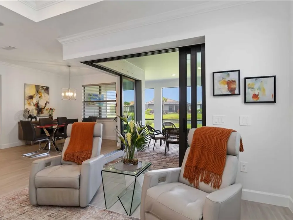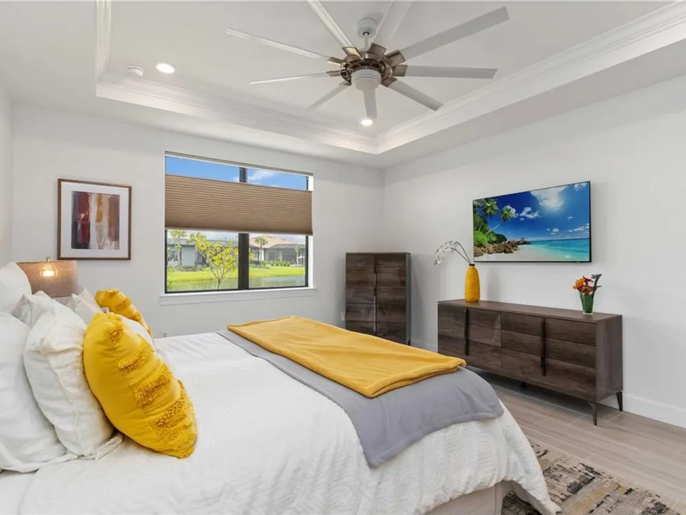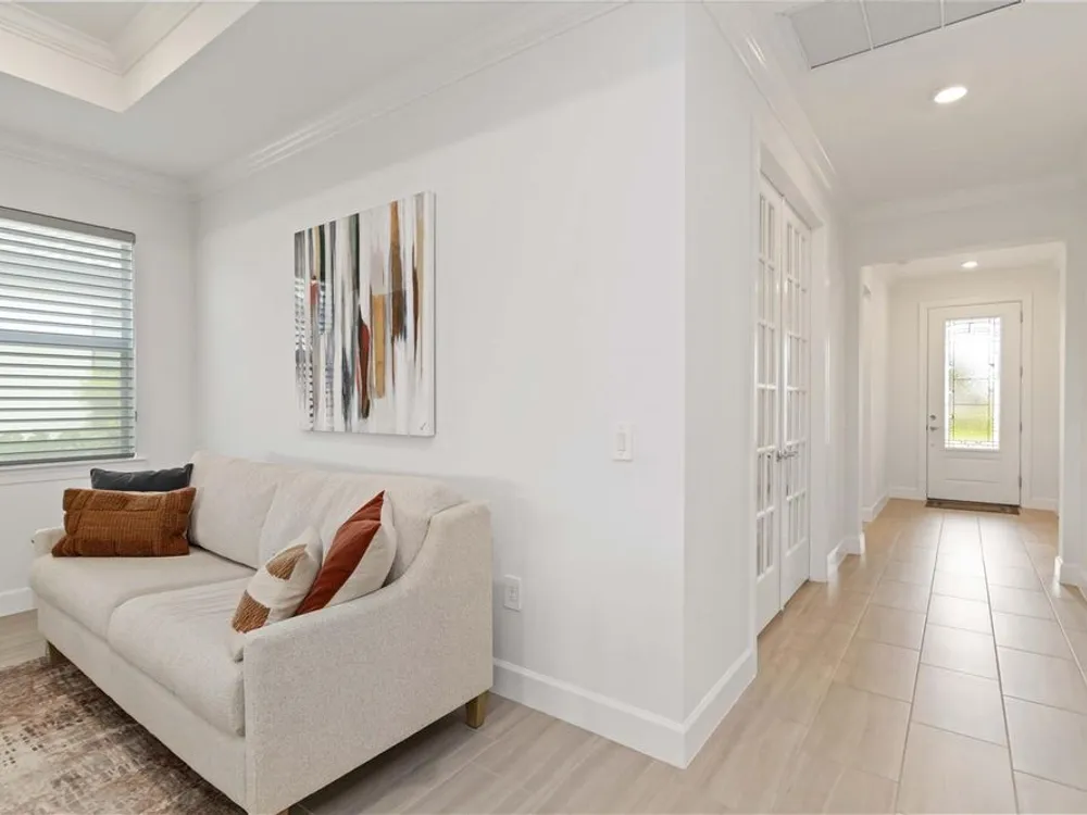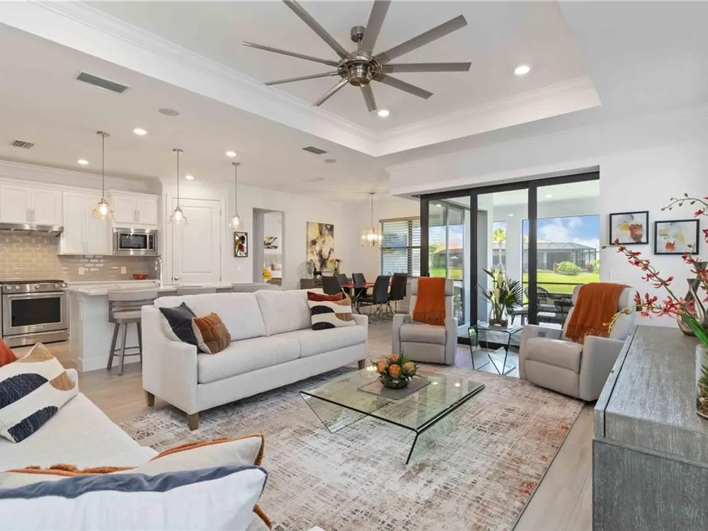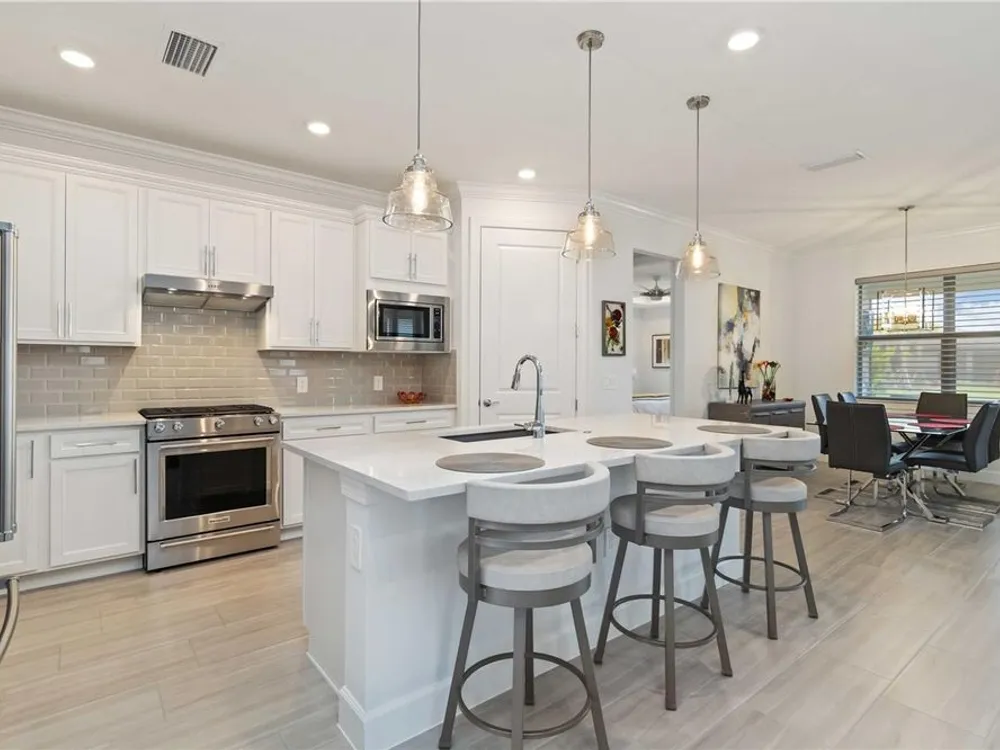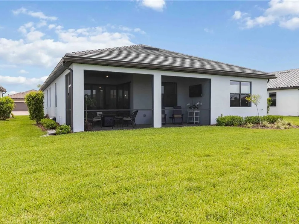 Life at Del Webb Lakewood Ranch—From Morning Light to Sunset on the Lanai Mornings start quietly here. Sunlight lifts over the lake, sliding across the tile floors of your Pulte Mystique and into the great room, where zero-corner pocketing sliders erase the line between indoors and out. Coffee on the expanded lanai becomes a daily ritual—some days it’s breakfast with a view; others it’s a quick hello to neighbors before a pickleball match or a class at the clubhouse. Inside, every detail is already done. Tray ceilings, crown molding, 8' doors, 5" baseboards, Hunter Douglas window treatments, and surround-sound set an elevated tone. The crisp white gourmet kitchen—with quartz counters, upgraded stainless appliances, a granite-composite sink, and a custom wood-shelved walk-in pantry—handles everything from weeknight dinners to weekend entertaining. When guests arrive, the flex room with French doors pivots easily from home office to media room or private retreat. The primary suite is its own sanctuary: a frameless glass shower with floor-to-ceiling tile, dual sinks with upgraded mirrors, a built-in vanity with quartz top, and a custom wood-shelved walk-in closet. Practical touches are everywhere—because life here is meant to be easy: a 4' garage extension with epoxy floor and insulated doors, a fully outfitted laundry with extra cabinetry and sink, a drop zone by the garage, a whole-house water filtration/softener, and a surge protector. Outside, the premier water lot adds privacy, and the extra-wide west-side easement gives breathing room between homes. Afternoons often end at the satellite pool just seconds away, or it’s a short golf-cart ride to Del Webb’s resort amenities—clubhouse with lifestyle director, fitness center, resort pool, pickleball, tennis, and nonstop social events. Host dinner back on the lanai and plan for the future—your space is pre-plumbed for an outdoor kitchen with a TV already there. Here, you’re not just buying a home—you’re stepping into a community rhythm that’s active, friendly, and effortless. And for peace of mind: the builder’s roof warranty runs through December 28, 2027. Live the lifestyle. Love the home. Welcome to Del Webb Lakewood Ranch.