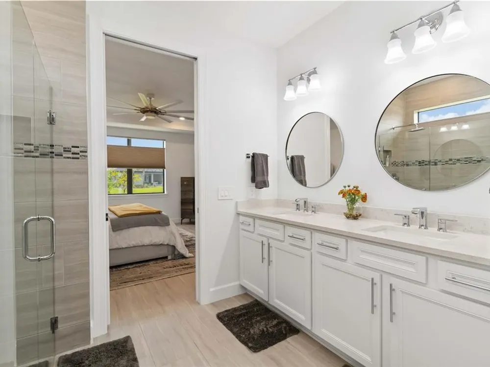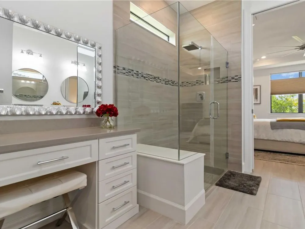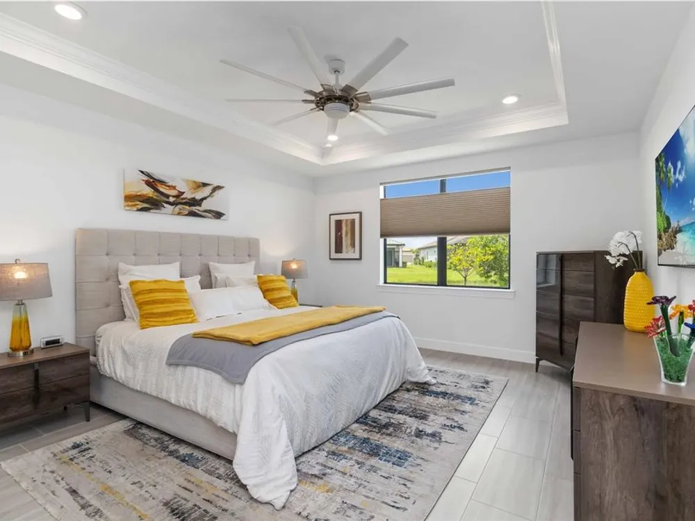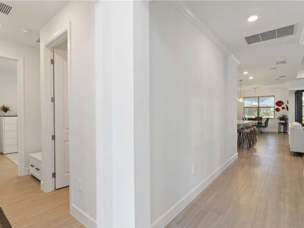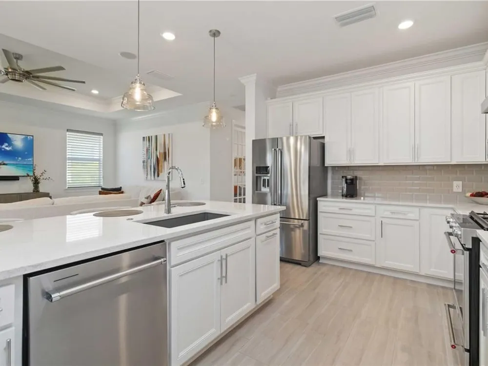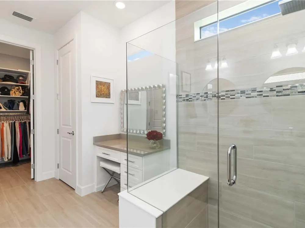 Life at Del Webb Lakewood Ranch—From Morning Light to Sunset on the Lanai Mornings start quietly here. Sunlight lifts over the lake, sliding across the tile floors of your Pulte Mystique and into the great room, where zero-corner pocketing sliders erase the line between indoors and out. Coffee on the expanded lanai becomes a daily ritual—some days it’s breakfast with a view; others it’s a quick hello to neighbors before a pickleball match or a class at the clubhouse. Inside, every detail is already done. Tray ceilings, crown molding, 8' doors, 5" baseboards, Hunter Douglas window treatments, and surround-sound set an elevated tone. The crisp white gourmet kitchen—with quartz counters, upgraded stainless appliances, a granite-composite sink, and a custom wood-shelved walk-in pantry—handles everything from weeknight dinners to weekend entertaining. When guests arrive, the flex room with French doors pivots easily from home office to media room or private retreat. The primary suite is its own sanctuary: a frameless glass shower with floor-to-ceiling tile, dual sinks with upgraded mirrors, a built-in vanity with quartz top, and a custom wood-shelved walk-in closet. Practical touches are everywhere—because life here is meant to be easy: a 4' garage extension with epoxy floor and insulated doors, a fully outfitted laundry with extra cabinetry and sink, a drop zone by the garage, a whole-house water filtration/softener, and a surge protector. Outside, the premier water lot adds privacy, and the extra-wide west-side easement gives breathing room between homes. Afternoons often end at the satellite pool just seconds away, or it’s a short golf-cart ride to Del Webb’s resort amenities—clubhouse with lifestyle director, fitness center, resort pool, pickleball, tennis, and nonstop social events. Host dinner back on the lanai and plan for the future—your space is pre-plumbed for an outdoor kitchen with a TV already there. Here, you’re not just buying a home—you’re stepping into a community rhythm that’s active, friendly, and effortless. And for peace of mind: the builder’s roof warranty runs through December 28, 2027. Live the lifestyle. Love the home. Welcome to Del Webb Lakewood Ranch.