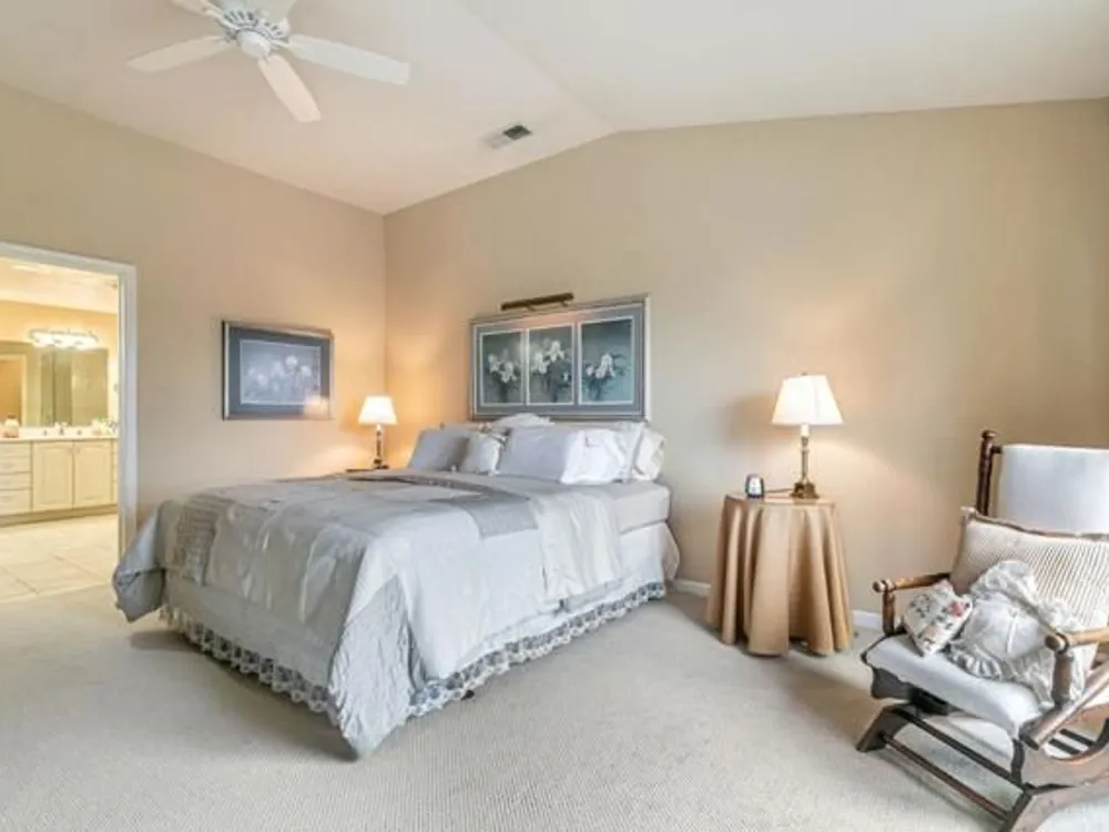 Embrace a lifestyle in The Villages Golf & Country Club, at this stunning 2-bedroom 2-bathroom + office residence spanning 1,804 square feet, offering a blend of contemporary updates and timeless charm. The outside was freshly painted a year ago & a new 30+ year roof was installed 9 months ago. The soaring high ceilings are accentuated by clerestory windows, allowing natural light to illuminate the spacious and well-designed open floor plan. Ceiling Fans in the Family & Primary Bedroom! Enjoy the updated kitchen, bathrooms & laundry room & wood cabinetry. Living room features a gas/wood burning fireplace and sliding door access to the large side balcony, separate family room also features gas/wood burning fireplace & views of the mountains. The luxurious primary suite enjoys balcony access, dual sinks, a large walk-in shower and an expansive walk-in closet with California organizers & mirrored doors. This home offers an abundance of outdoor spaces with three balconies, enhanced by the convenience of an oversized two-car garage, interior laundry, central heat & cooling. Experience the epitome of resort living with access to a championship 18-hole golf course, pools & spas, tennis, pickle & Bocce ball courts, all within the secured gated premier 55+ Silicon Valley Community!