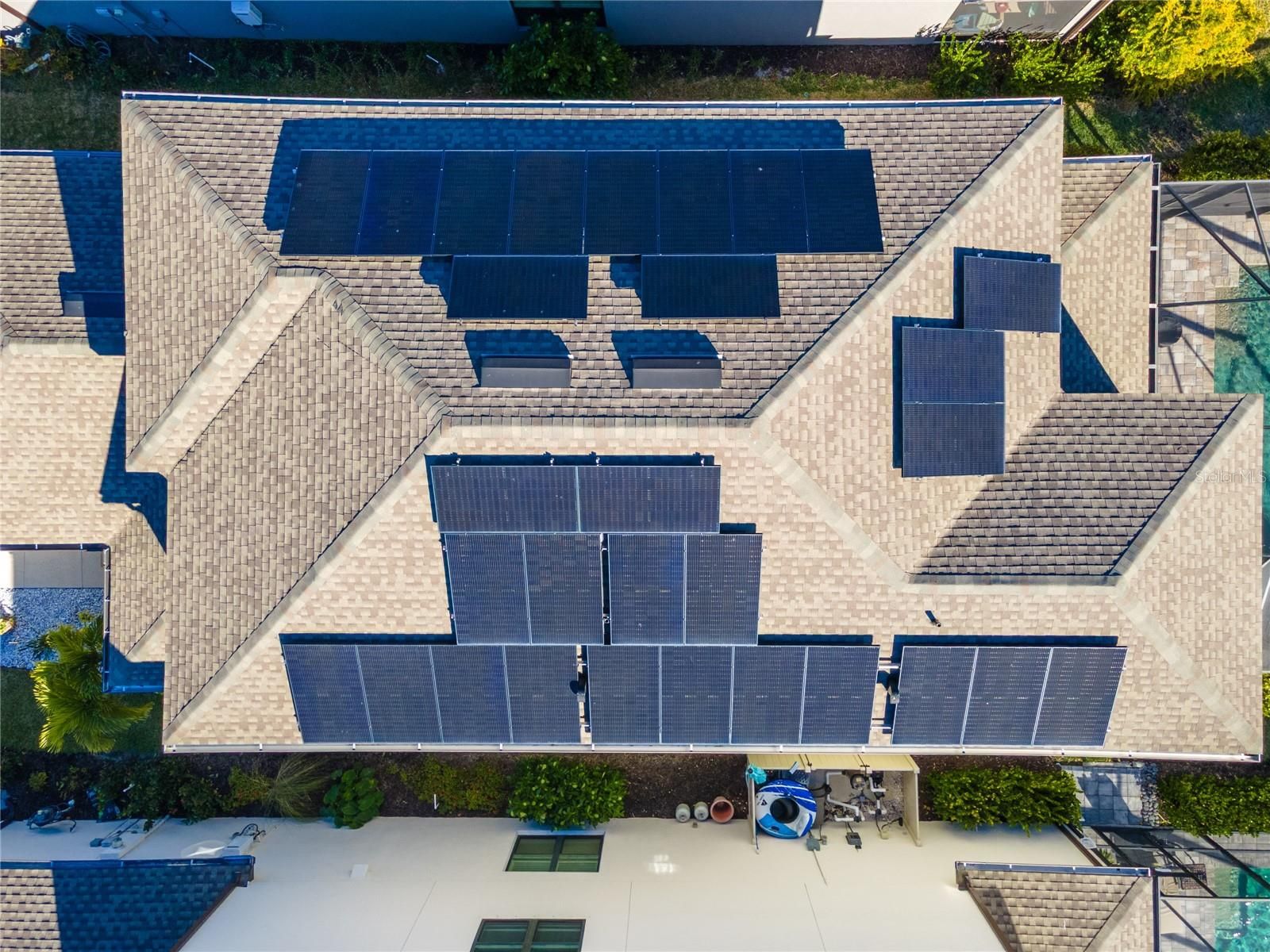 This 4-bedroom, 3.5-bath pool home offers a well-designed floor plan with the primary bedroom, laundry room, and a dedicated study conveniently located on the first floor. A gourmet kitchen with a gas stove, is ideal for both everyday living and entertaining. Upstairs, bedroom 2 features an ensuite bath, providing added privacy for guests or family members, along with additional bedrooms. Completing the upstairs a spacious game room and oversized loft provide endless flexibility—movie nights, game days, play zones, or creative spaces that evolve with your family. Outside, the screened lanai becomes the heart of the home, where evenings are spent floating in the pool, watching spectacular sunsets over the lake and green space beyond, and savoring the peaceful rhythm of Florida living. The lanai is outdoor kitchen ready with plumbing, gas, water, and electricity already in place. The home is equipped with solar panels providing full home energy consumption, resulting in exceptionally low average power bills of approximately $75/month. Located within a gated, amenity-rich community, residents enjoy an active lifestyle with indoor and outdoor basketball courts, sand volleyball, soccer field, rock climbing wall, ping pong, resort-style pool, mini-Olympic pool, splash pad, playground, dog park, and an onsite café for convenient dining. Walking distance to the new Skye Ranch K–8 School and just minutes to I-75, offering quick access to shopping, dining, and the world-renowned Siesta Key Beach with its sugar-sand shoreline.