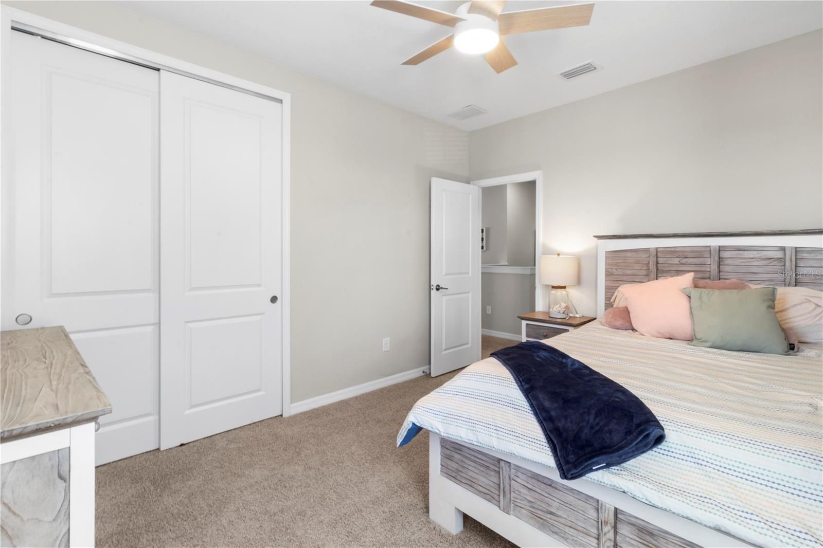 - Ceiling Fan(s), High Ceilings, Open Floorplan, Main Level Primary, Stone Counters, Walk-In Closet(s)