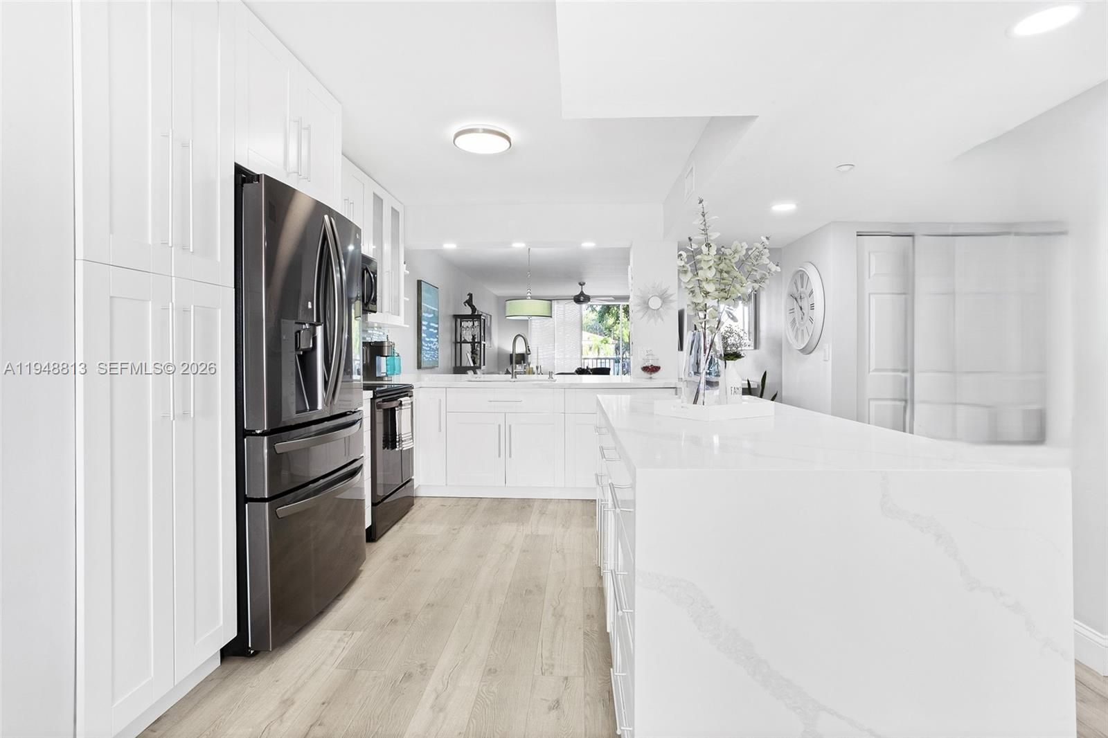 Beautiful unit located in a prestigious, gated community. Every detail has been thoughtfully updated, featuring a refined kitchen with modern appliances, elegantly renovated bathrooms, and new flooring throughout. The private, enclosed patio offers a serene space for entertaining while enjoying tranquil lake. A washer and dryer, and plus water filter in the entire unit. Situated within a gated 55+ community with 24/7 security, residents enjoy an exceptional lifestyle with resort-style amenities including a pool, clubhouse, movie theater, fitness center, pickleball courts, and more. Complimentary shuttle service enhances everyday ease. Ideally located near shopping, dining, and major highways, this move-in-ready condominium offers comfort, security, and sophisticated living.