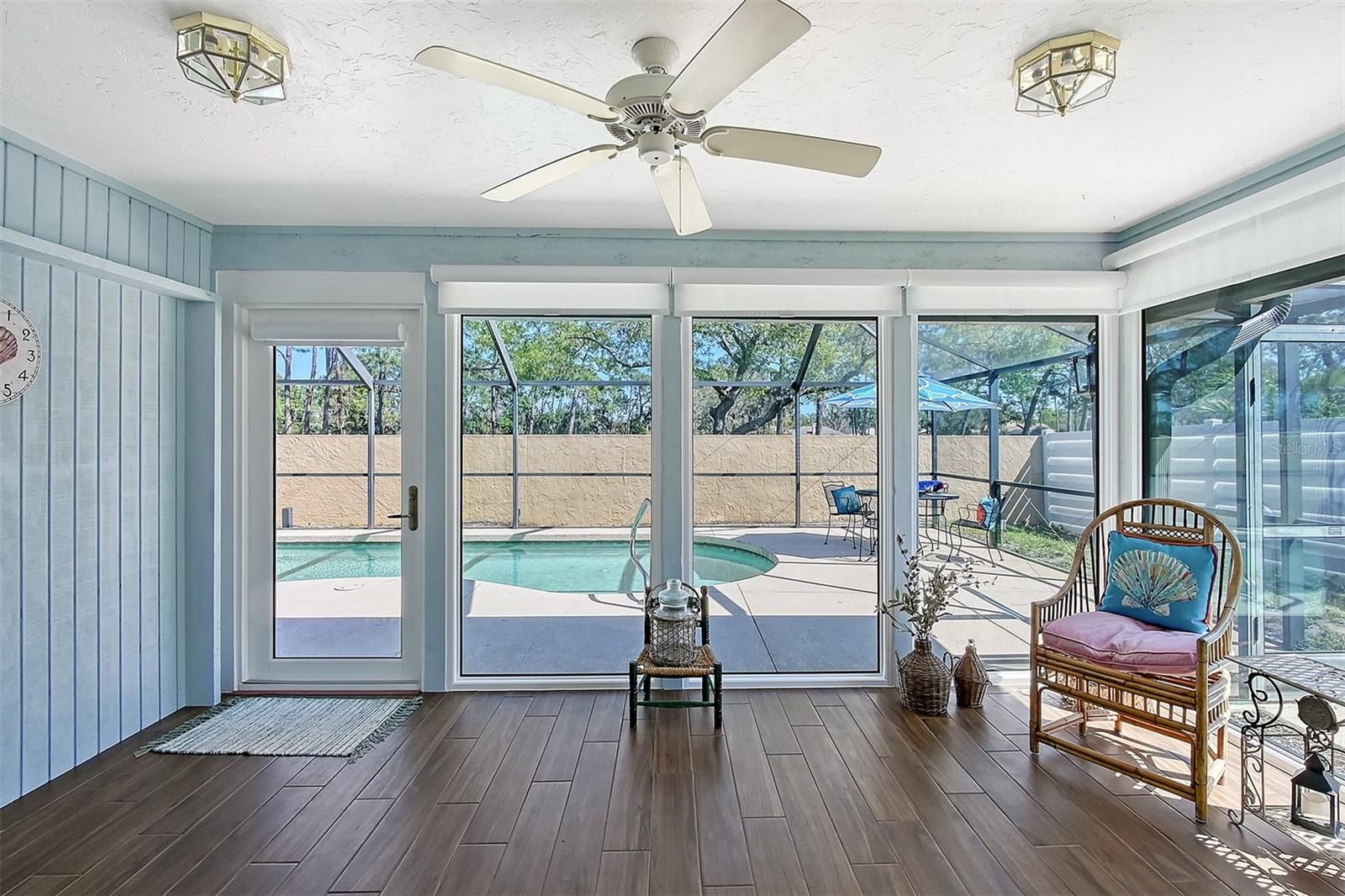 POOL HOME, Move in ready! **Enjoy living in a Maintenance-Free stand-alone house in Desirable Pine Trace. This spacious 2 BR, 2 Bath, 2 Car Garage, Saltwater POOL home is perfect for carefree living. This Great Split bedroom floor plan, allows Central Gathering spaces for owner and guest alike. ** From the privately screened Entrance, enter into a CATHEDRAL ceilinged GREAT Room, overlooking the IMPACT GLASS walled LANAI or Sun Room to your Private Pool. ** The Outdoor SALTWATER POOL Deck is enhanced on 3 sides by Privacy Fences and a solid Concrete wall to ensure your privacy, quiet and security. ** To your left from the entry, is a spacious GUEST ROOM featuring adjoining bath, a double closet and linen closet, a built-in window seat as well as space enough for 2 double beds! The full guest bath features new vanity and sink and bathtub/shower combo. ** The MASTER SUITE features a tiled walk-in closet, 2 additional linen and storage closets and new soft close Dual sink vanities with a separate shower / bath room. The Master Ensuite is accentuated by natural sunlight illuminating the space thru the skylight. ** The expansive COUNTRY KITCHEN has stainless steel appliances, a huge walk-in pantry/storage room plus a 2nd smaller pantry and room for a breakfast table, when a quick meal will suffice. The Great room offers a more formal DINING SPACE. Adjoining the Kitchen is spacious LAUNDRY area with Indoor Utility Sink and a dedicated HVAC closet. Plenty of room to add additional cupboards if you like. The 2-car garage has wall shelving and storage cabinets. ** UPGRADES: OVER 65K IN IMPROVEMENTS: $22K IMPACT WINDOWS IN SUNROOM 2023; ALL IMPACT WINDOWS ON SOUTH SIDE OF HOME 2022; Exterior Painted 2022; Interior Mostly painted 2023; ROOF 2022; MAYTAG WASHER/DRYER 2023; NEW HVAC 2022 and DUCTWORK REDONE 2022; **LOW HOA INCLUDES: Grounds maintenance PLUS: Exterior Wall Painting & Roof! AND: includes Pest Control, Gray-water Irrigation, Cable TV, Management, Private Road, WOW ... ** Pine Trace is a lushly landscaped condominium enclave of stand-alone single-family homes. ** LOCATION: Within the popular Palm Aire community. 5 Minutes to International SRQ Airport, 3 miles from UTC Mall w hundreds of shopping, restaurants - This community is conveniently located near UTC Mall, shopping, dining, airport, and medical facilities; plus Lido Beach - one of the best beaches in the US - is only 11 miles away! You may join the Palm Aire Country Club, which is only a short walk away. It boasts 2 pro golf courses, a junior Olympic-sized heated saltwater pool, tennis and pickleball courts, a fitness center, plus outstanding dining and bar facilities, which have beautiful views overlooking the golf courses. **OVER 65K IN IMPROVEMENTS IN LAST 3 YEARS including IMPACT WINDOWS ** GREAT VALUE & SUPER CLEAN !! ** Make sure your click o n the Matterport 3D Tour: https://my.matterport.com/show/?m=cNMNiR2uouf