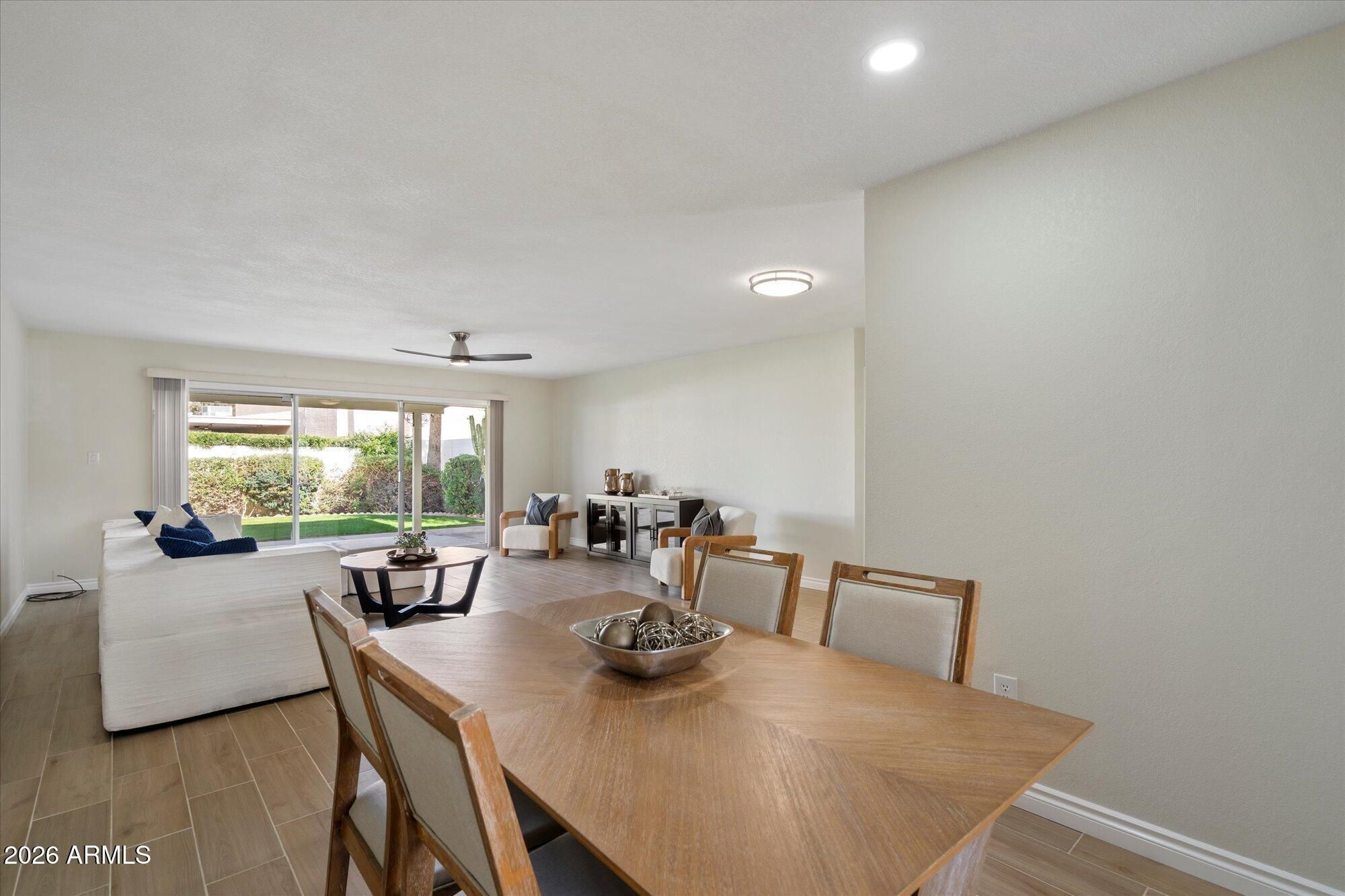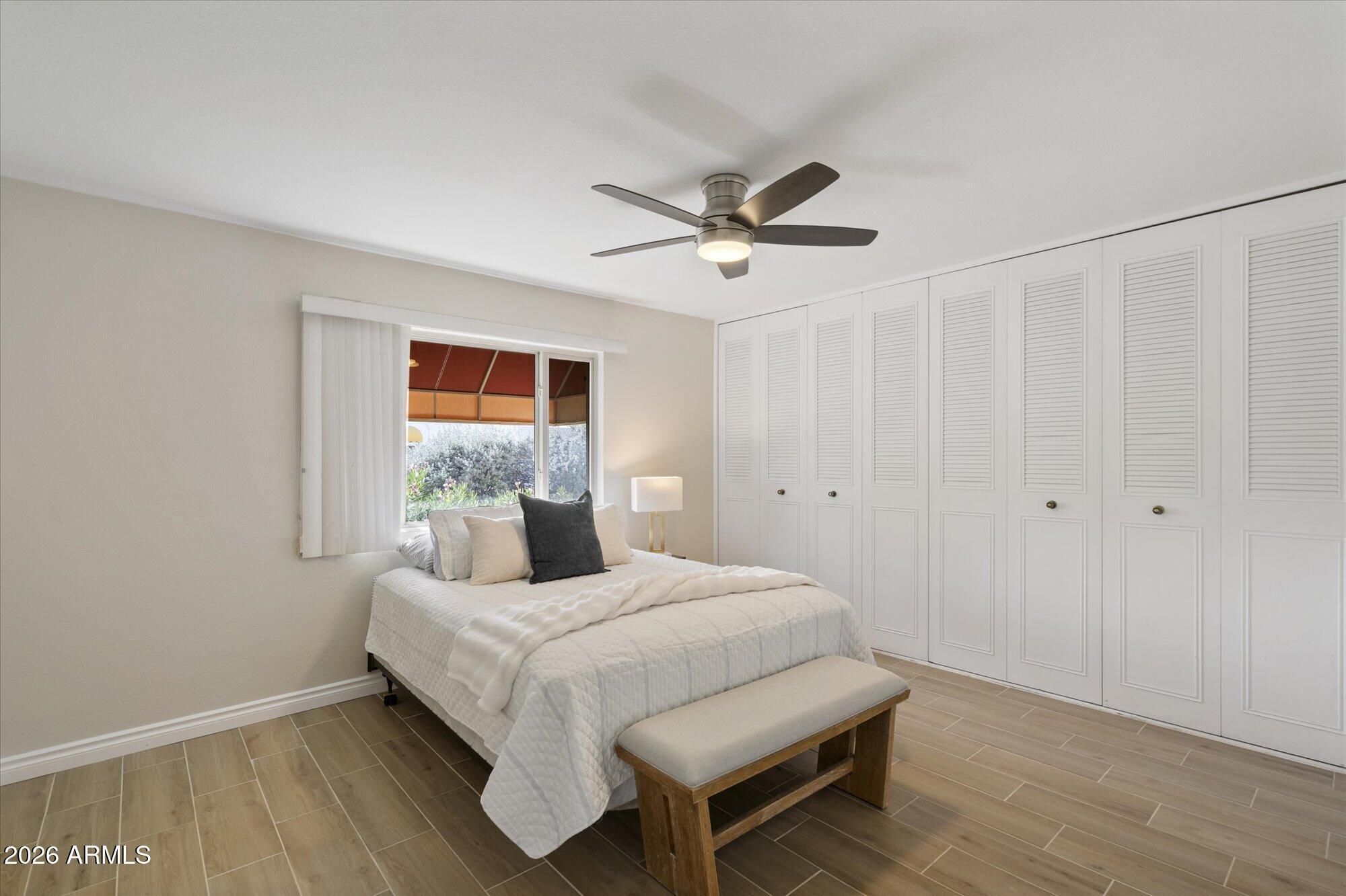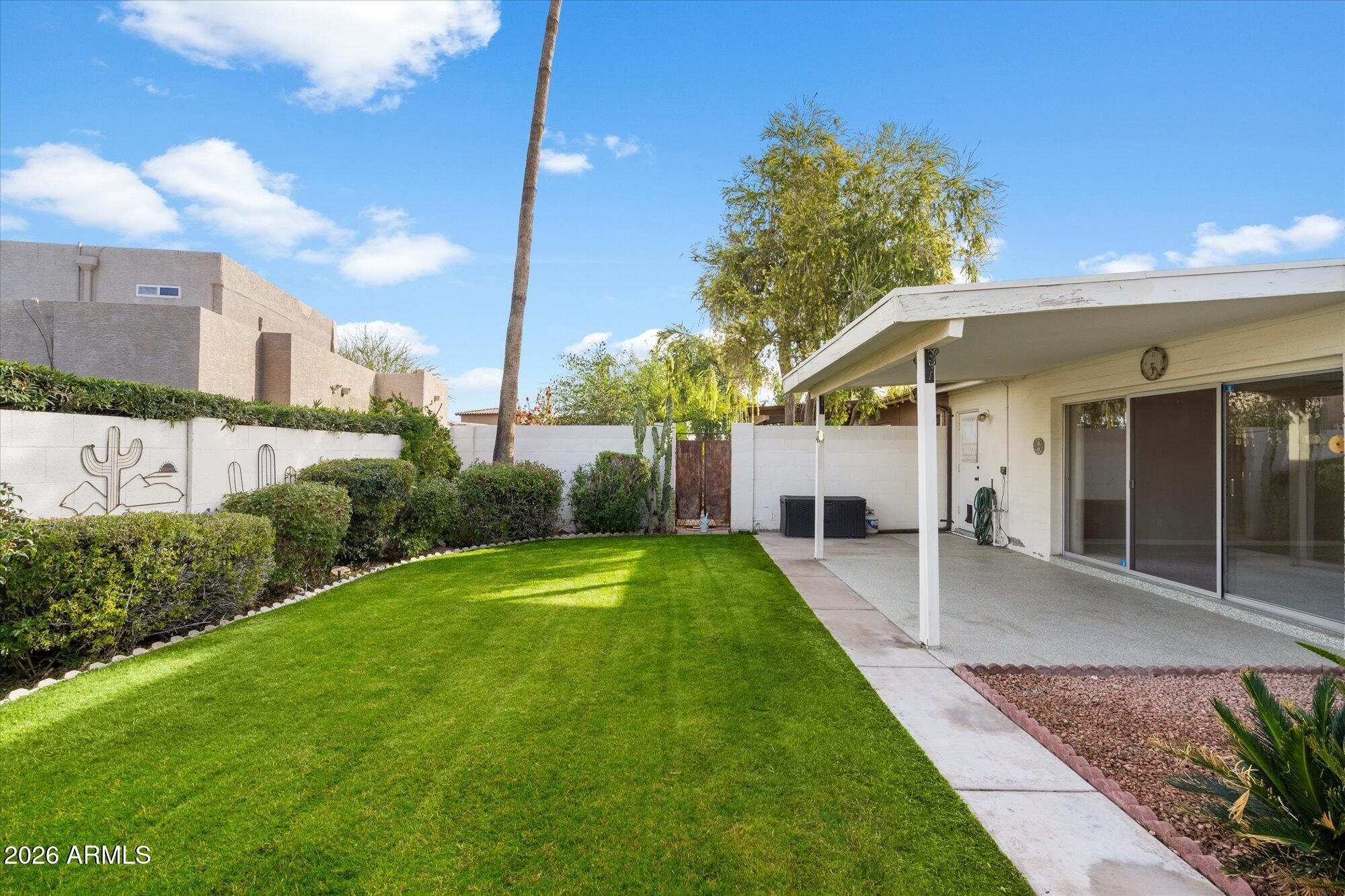 Beautifully updated home in a desirable 55+ Scottsdale community, ideal for a lock-and-leave lifestyle. This thoughtfully remodeled property offers a bright, open floor plan designed for easy living and low maintenance. Brand new kitchen features custom cabinetry, quartz countertops, and new appliances, opening seamlessly to the main living space. Spacious bedrooms and bathrooms have been fully renovated, creating a clean, light, and comfortable feel throughout. Sliding doors lead to a covered patio with mature landscaping. Enjoy the convenience of walking to the community clubhouse, pool, and spa, all just minutes from the heart of Old Town Scottsdale.