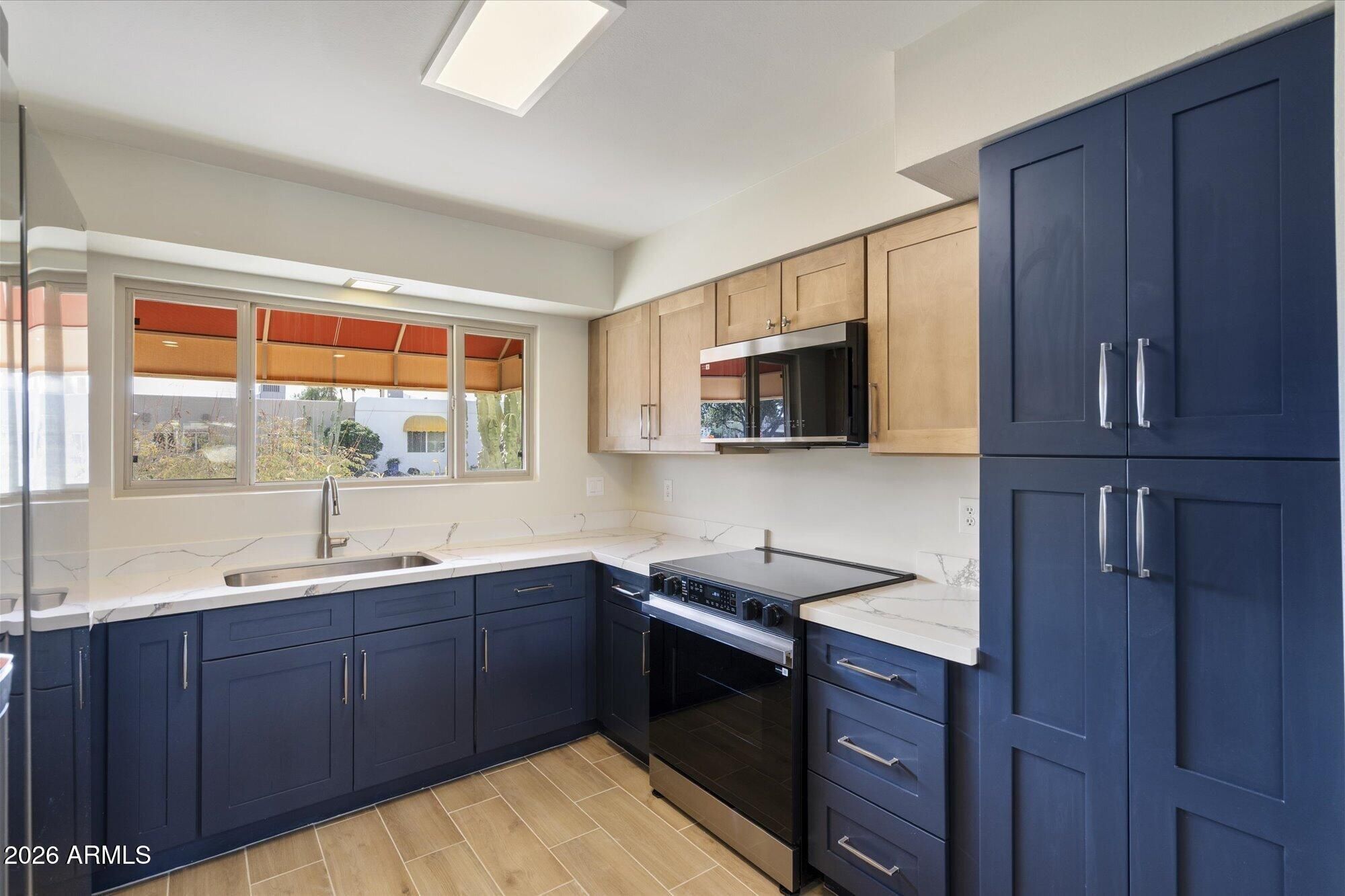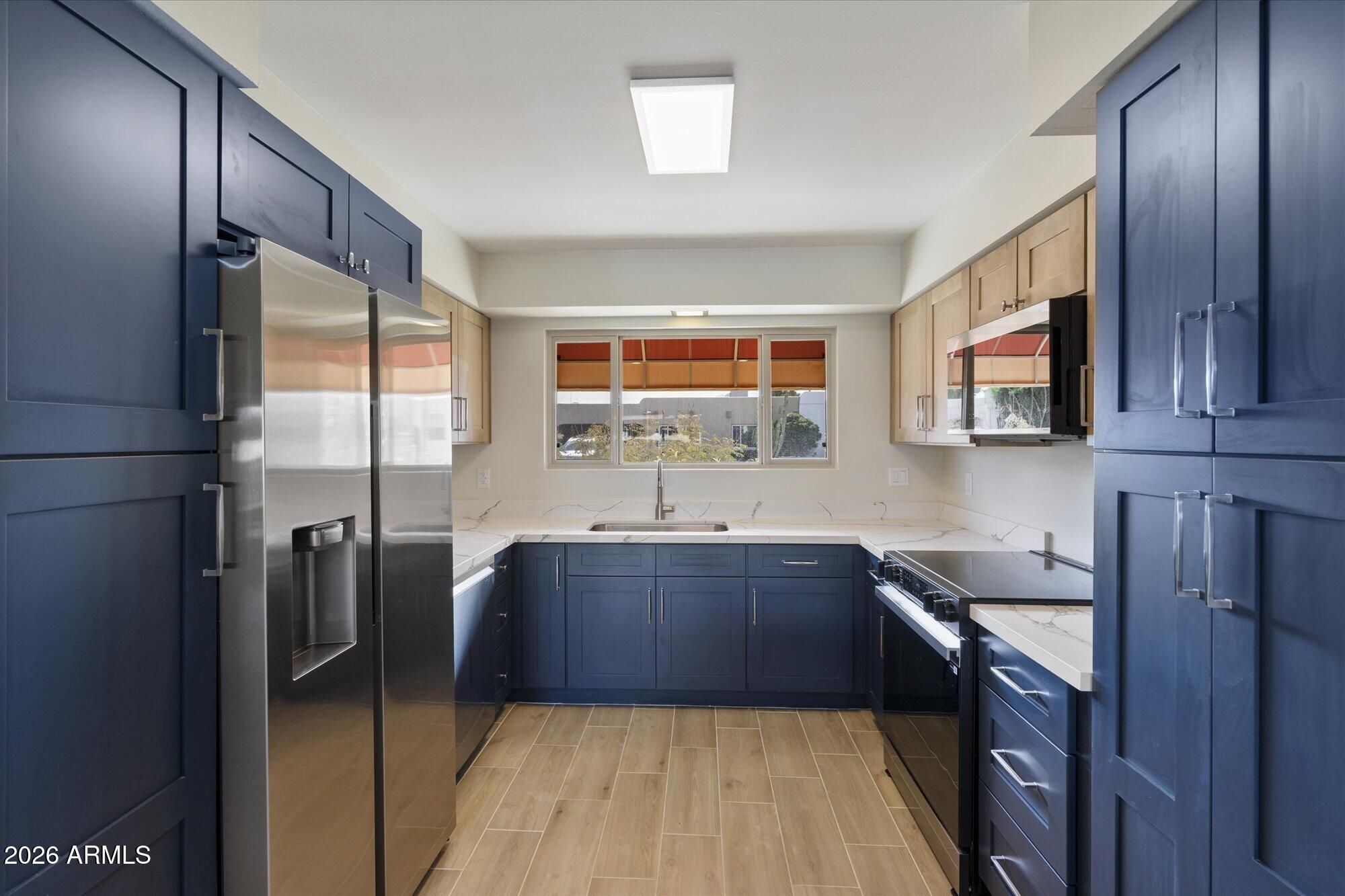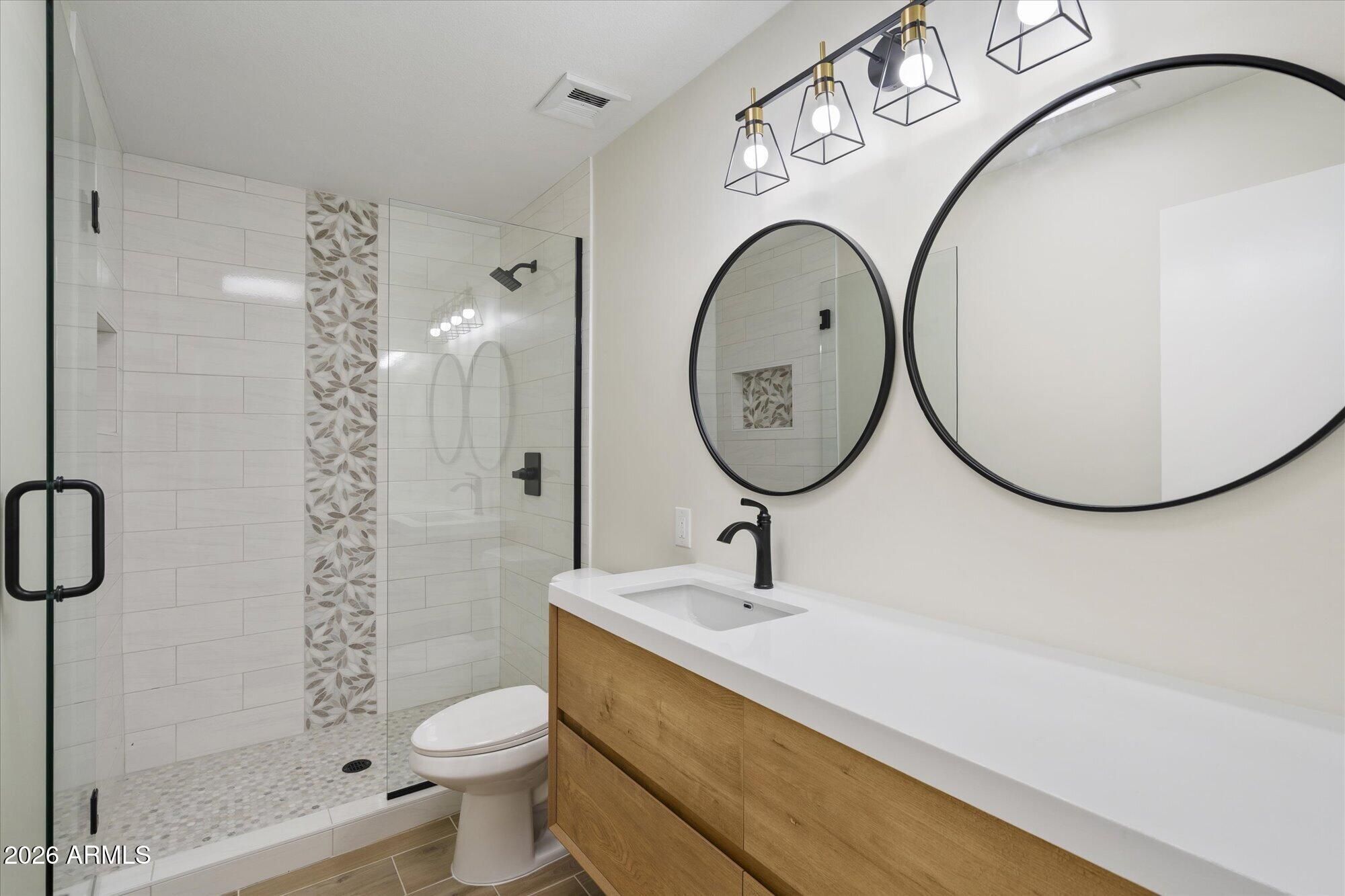 Beautifully updated home in a desirable 55+ Scottsdale community, ideal for a lock-and-leave lifestyle. This thoughtfully remodeled property offers a bright, open floor plan designed for easy living and low maintenance. Brand new kitchen features custom cabinetry, quartz countertops, and new appliances, opening seamlessly to the main living space. Spacious bedrooms and bathrooms have been fully renovated, creating a clean, light, and comfortable feel throughout. Sliding doors lead to a covered patio with mature landscaping. Enjoy the convenience of walking to the community clubhouse, pool, and spa, all just minutes from the heart of Old Town Scottsdale.