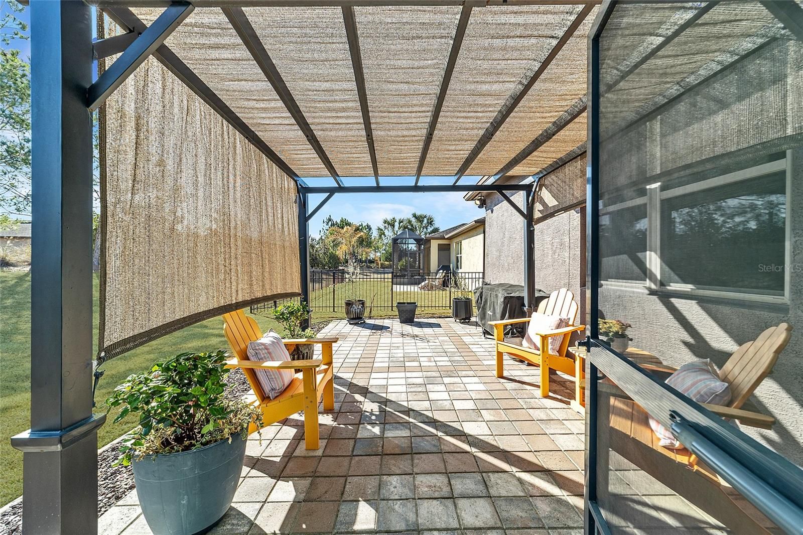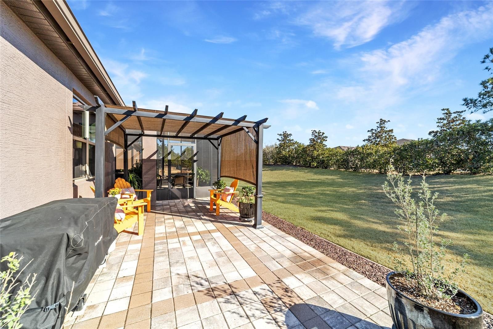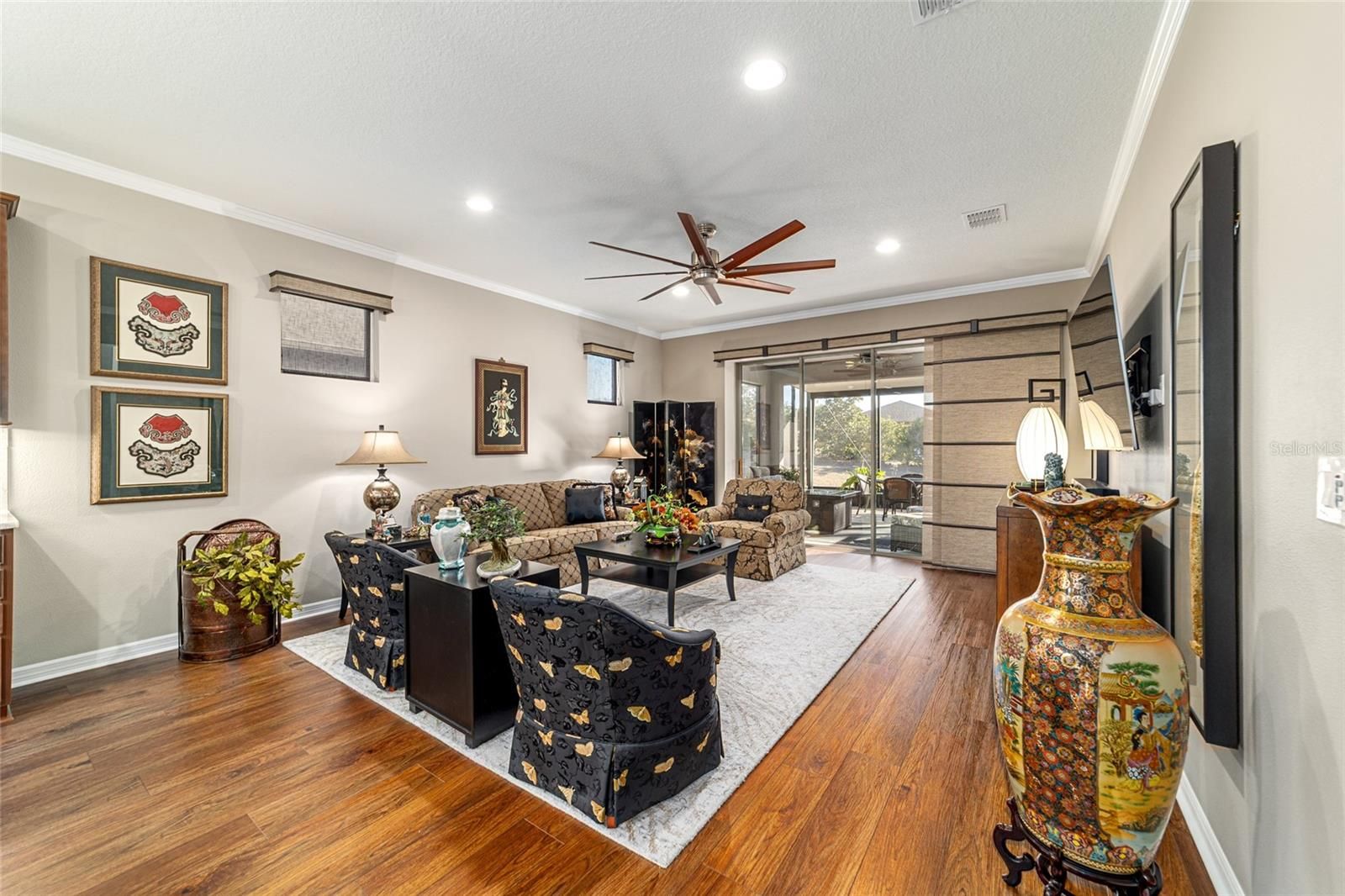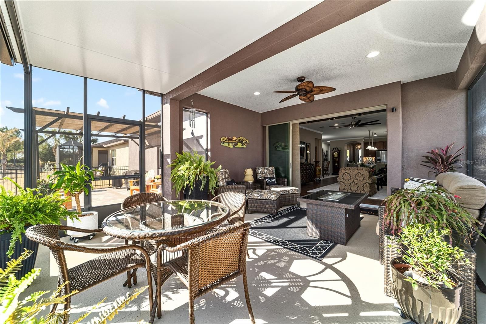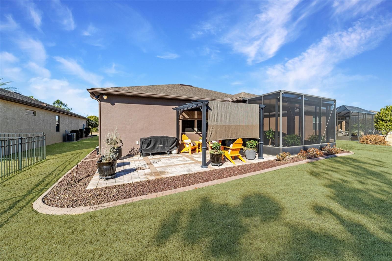 Enjoy effortless living in this beautiful two-bedroom, two-bath Martin Ray model with a versatile flex room and extended garage, located in the gated 55+ Stone Creek Golf Course Community known for its exceptional resort-style amenities. This home offers wonderful curb appeal, complete with mature landscaping, custom coach lighting, and a custom-designed Perry’s glass-inlay front door with a lifetime warranty, setting the tone for the thoughtful details found within. The versatile floor plan blends comfort and designer elements, including updated luxury vinyl plank flooring, recessed LED downlighting, 8-foot interior doors, and crown molding that adds a touch of refinement. The flex room, framed by French doors, offers desirable extra space ideal for a home office, library, or hobby space. The spacious gathering room features a triple pocket slider that opens seamlessly to the covered lanai and extended screened-in Florida room, creating an inviting indoor-outdoor living experience. Just beyond, a paver-lined sitting area with a sun-shaded pergola offers a peaceful spot for outdoor gatherings. The well-appointed kitchen offers sleek quartz countertops, stainless steel appliances, an oversized island with specialty pendant lighting and bar rail, a striking tile backsplash, and upgraded cabinetry with crown molding, under-cabinet lighting, and pull-outs in the lower cabinets. A large pantry with upgraded shelving and a butler’s pantry with a built-in desk adds even more convenience and storage space. The Owner’s suite features a custom outfitted walk-in closet and an en suite bath offering a quartz-topped double vanity, a large Roman-style walk-in shower with a seating bench and decorative glass tile inlay, and a transom window that fills the space with natural light. Additional thoughtful upgrades throughout include designer window treatments that add a tailored finish to each room, solar tube lighting, a mud-room with built-ins providing convenient organization as you come and go, and upgraded tile in the secondary bath. Practical enhancements continue with a whole-home water softener, a four-foot garage extension for a golf cart or workspace, and overhead garage storage racks for added storage. The sliding garage privacy screen door allows fresh air to circulate while maintaining comfort, and all windows in the home, except the sliders, have been professionally tinted to help protect furnishings and maintain a pleasant indoor temperature. Experience resort-style living at its finest and discover a community designed for comfort, connection, and carefree days, complete with a 24/7 staffed gated entrance that provides both security and peace of mind. Residents enjoy luxury-inspired amenities, including heated pools, a state-of-the-art fitness center, a spa, and soothing hot tubs and saunas that make relaxation part of everyday living. For those who love to stay active, the community features pickleball, bocce, tennis, and even a softball field, while a dedicated lifestyle team plans entertainment, activities, and special events that make it easy to connect with neighbors. Just beyond the gates, you’ll find a beautifully maintained golf course, pro shop, and on-site restaurant, perfect for socializing, unwinding, and enjoying the Florida lifestyle.