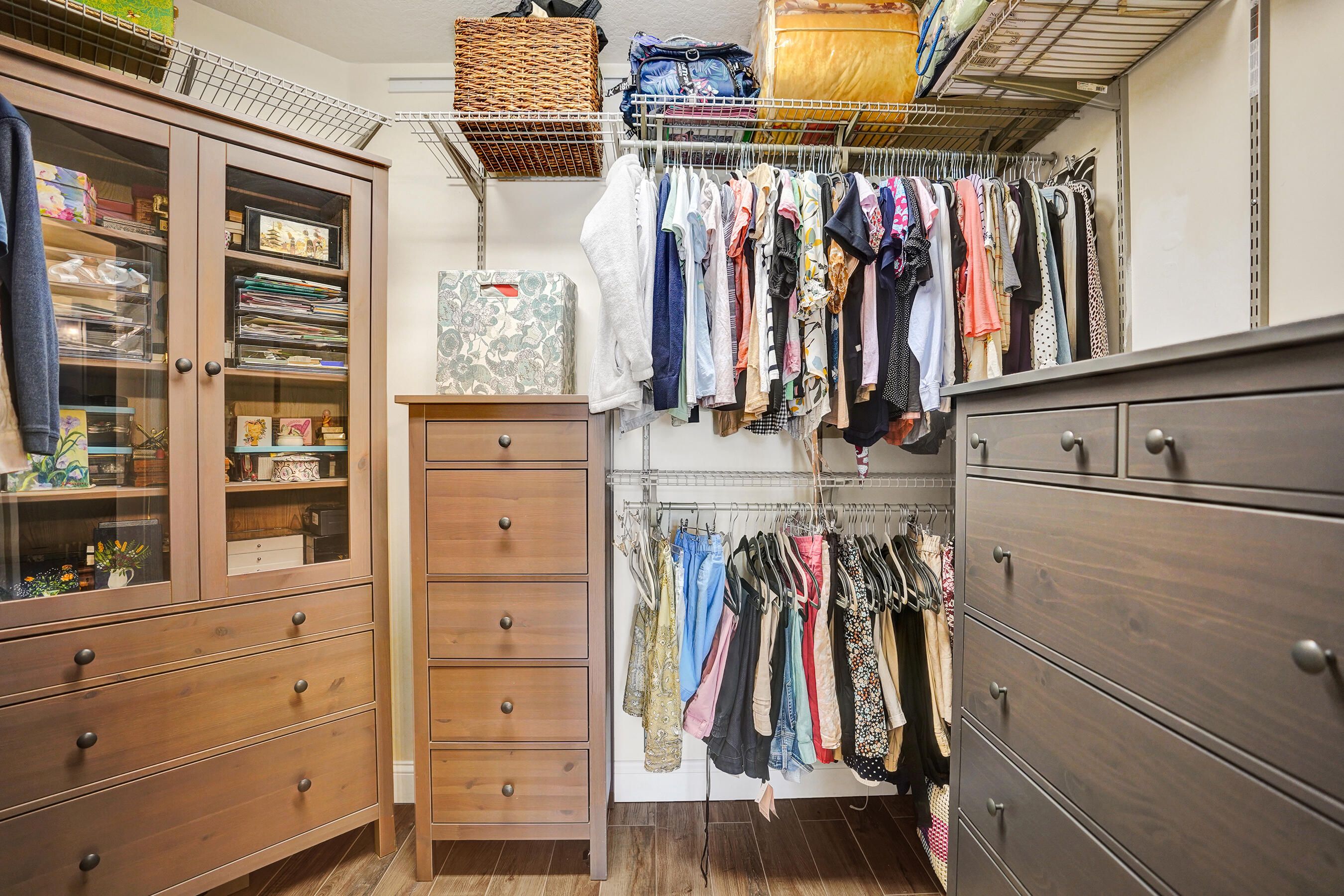 - Built-in Shelving, Entrance Foyer, Split Bedrooms, High Ceilings, Walk-In Closet(s), Kitchen/Dining Combo, Blinds, Drapes, Dual Sinks, Separate Shower, Storm Shutters
