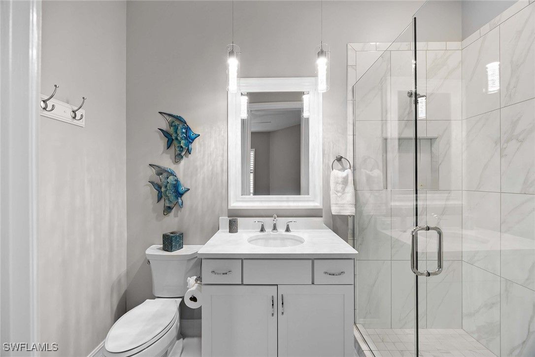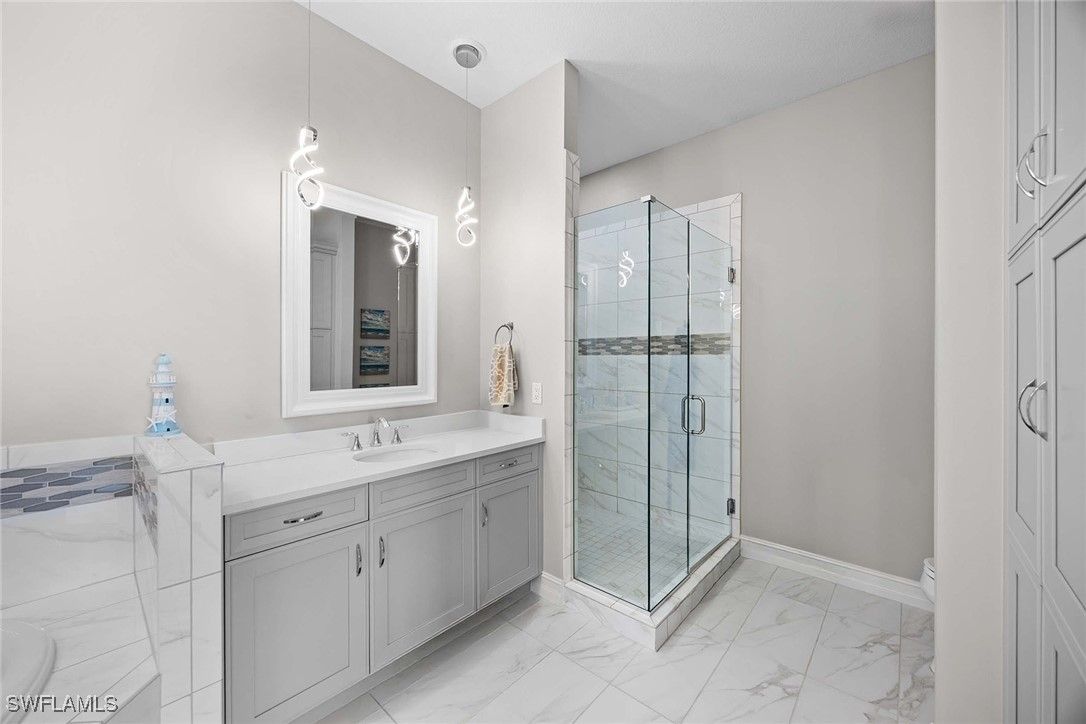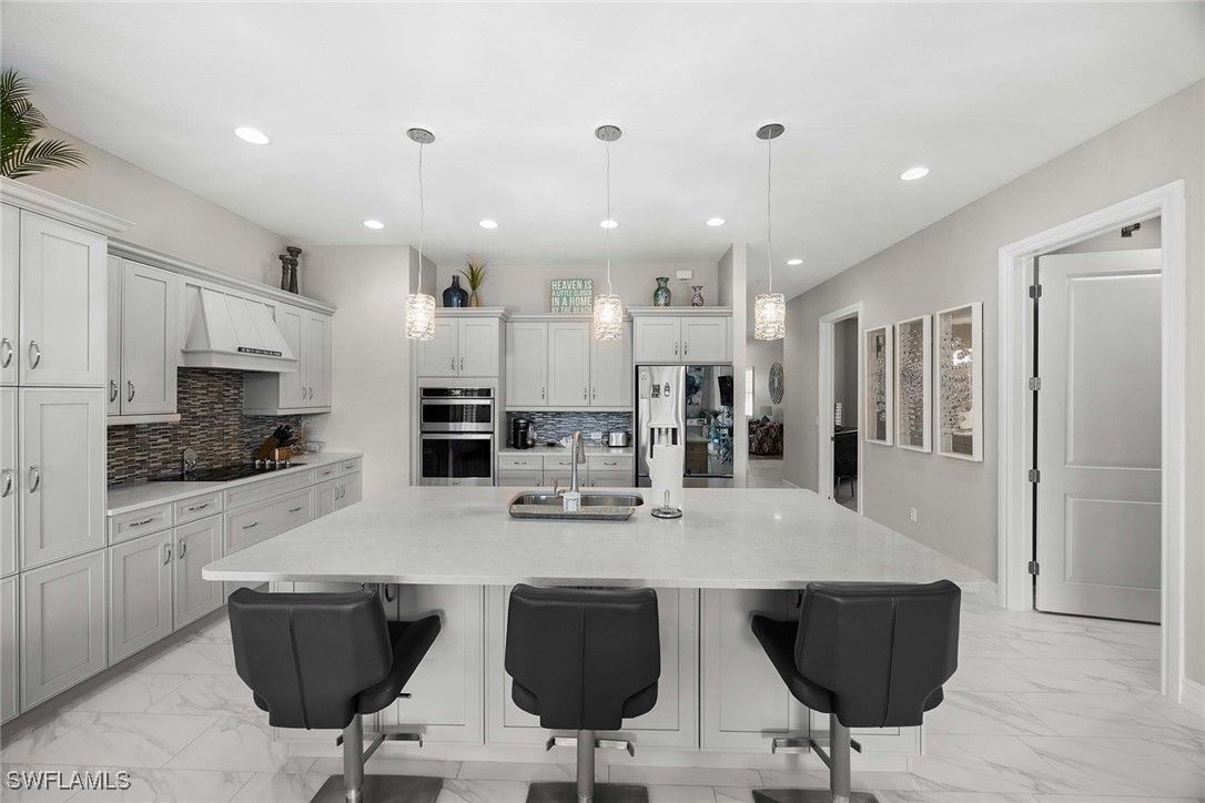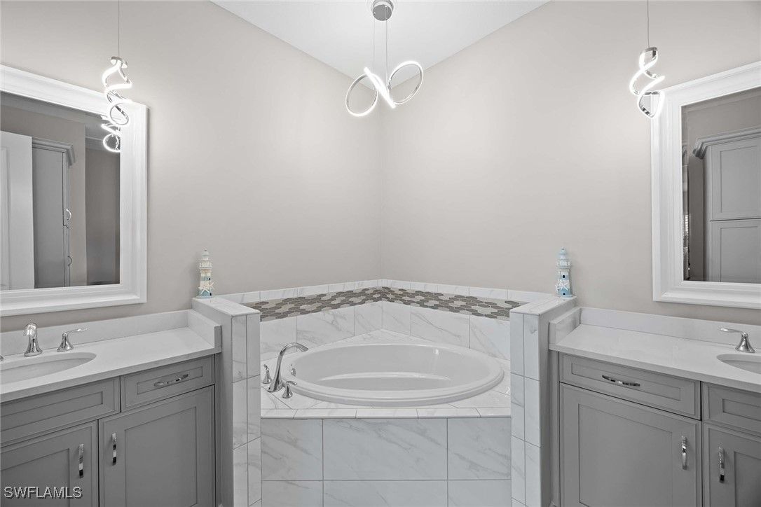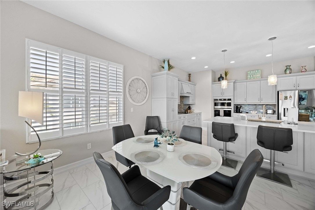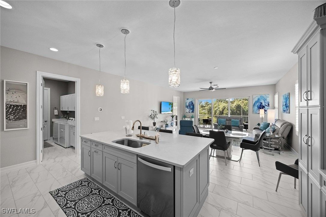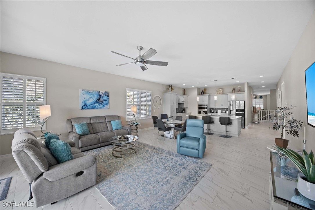 Nestled on a cul-de-sac, this beautifully designed home offers the perfect blend of modern elegance and comfort. Featuring three spacious bedrooms and three full baths, this residence also includes a versatile large club/flex room ideal for entertaining, working from home, or creating a private retreat. The home’s modern design and open-concept floor plan has seamless indoor-outdoor flow and is enhanced by a southwest exposure, filling the interiors with natural light and showcasing serene lake and preserve views with great sunsets. Thoughtful upgrades abound, including custom closets, plantation shutters, and designer lighting throughout, too many upgrades to list. Built for peace of mind, the property is equipped with impact-resistant windows and doors and screen shutters on the back. This home is being offered fully furnished and is move-in ready and styled for both sophistication and comfort. Lely Resort has three championship golf courses and the award-winning Players Club & Spa.