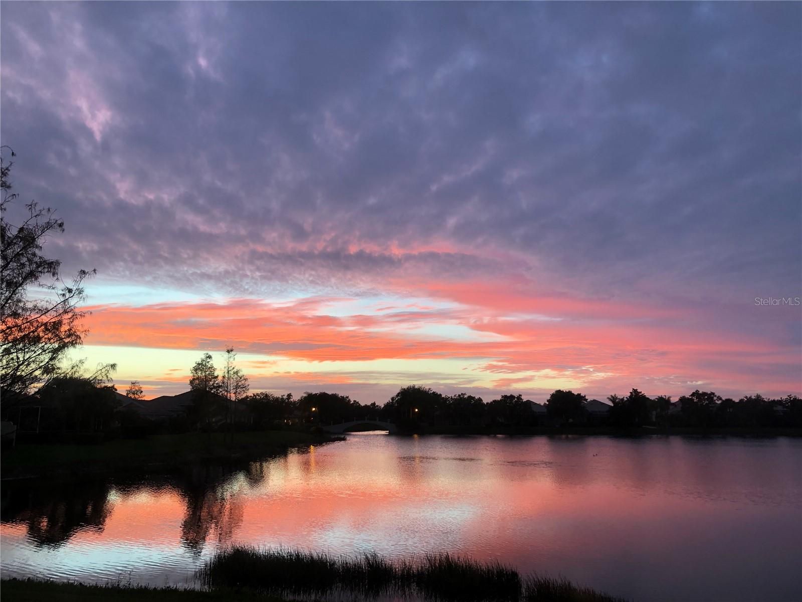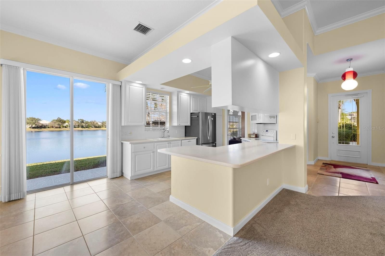 One or more photo(s) has been virtually staged. Spectacular Waterview! Wake up to sweeping, unobstructed lake and bridge views in this exceptional Oakmont model located in the guard-gated, resort-style community of VillageWalk at Palmer Ranch. Perfectly positioned with water on two sides of the home, this residence delivers the kind of expansive waterfront setting today’s luxury buyers seek. Built by DiVosta with poured concrete construction reinforced with steel, this 3-bedroom plus den, 2-bath home offers lasting quality, peace of mind, and refined upgrades throughout. The open-concept floor plan is enhanced by crown molding, upgraded tile flooring, and custom upgraded carpeting, creating a comfortable and relaxed living environment. The kitchen features Corian countertops, pull-out drawers, upgraded tile, and newer appliances, including a recently updated microwave and refrigerator. Entertain effortlessly as Bose speakers fill the great room and covered lanai, where tranquil water views become the backdrop for everyday living. The primary suite is a private retreat with an upgraded walk-in shower, while thoughtful enhancements such as a whole-home water treatment system, new chrome door hinges, and a 2023 water heater elevate the home’s turnkey appeal. Major mechanical upgrades include a new HVAC system in 2025 and updated ductwork in 2024. The garage is outfitted with a New Age 7-piece cabinet system, and the property includes extra deeded driveway space, a rare and valuable convenience. Rare waterfront exposure. Exceptional construction. True resort living. VillageWalk offers a vibrant, gated community lifestyle with world-class amenities, including: 6 Har-Tru lighted tennis courts, pickleball, bocce ball, and basketball courts, Clubhouse with event space, card rooms, a library, heated resort-style pool with a Tiki bar, On-site restaurant with full bar, gas station, hair salon, boutique, and a 24-hour manned security gate. Scenic walking and biking trails winding through lakes, bridges, and lush tropical landscaping. Located just minutes from Siesta Key Beach, Costco, medical offices, shopping and dining. This is a home for buyers ready to secure the view—and the lifestyle—that sets VillageWalk apart.